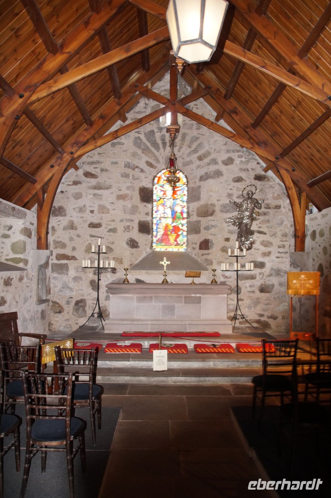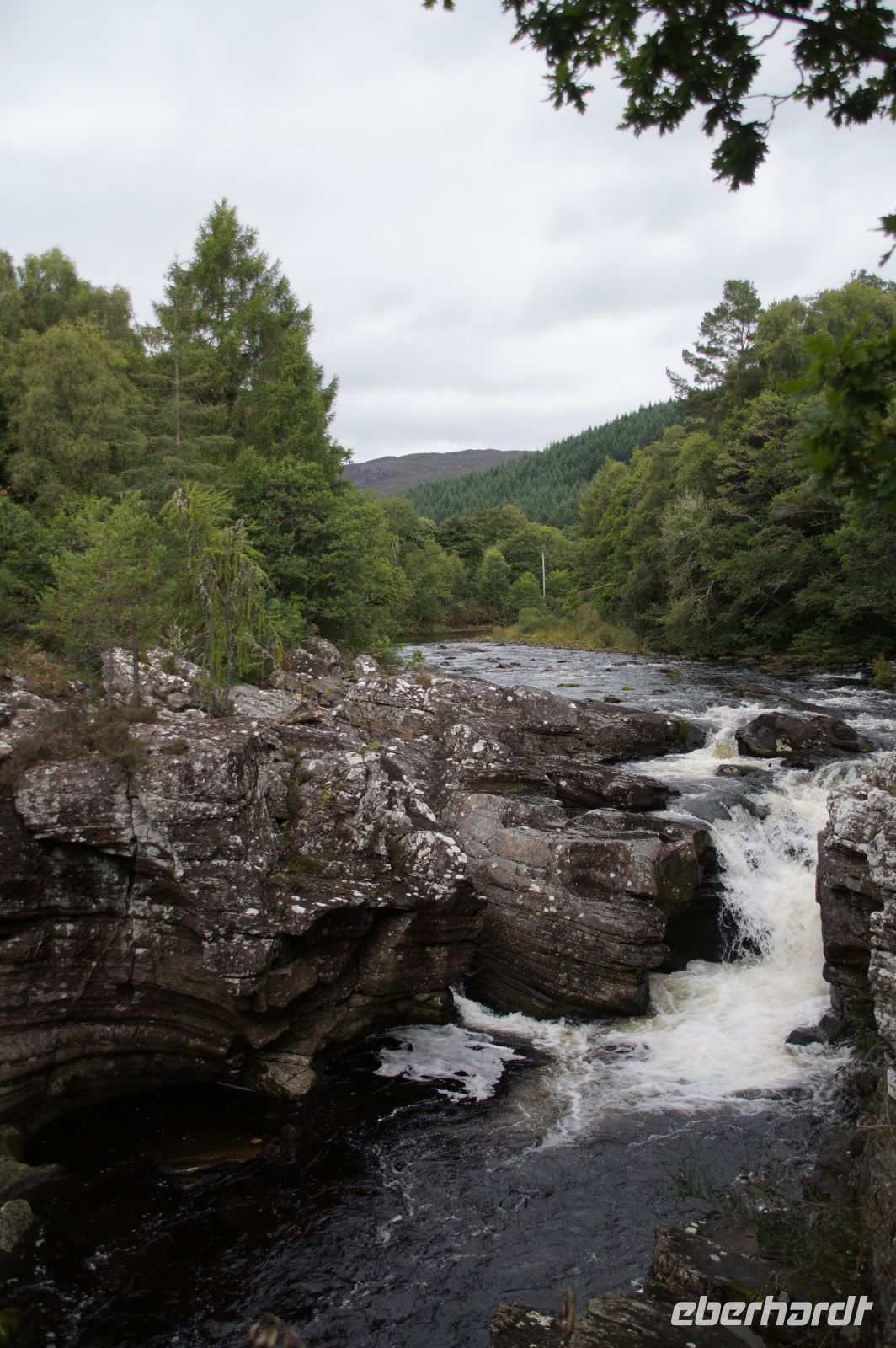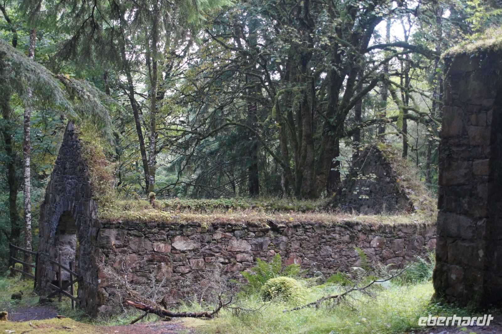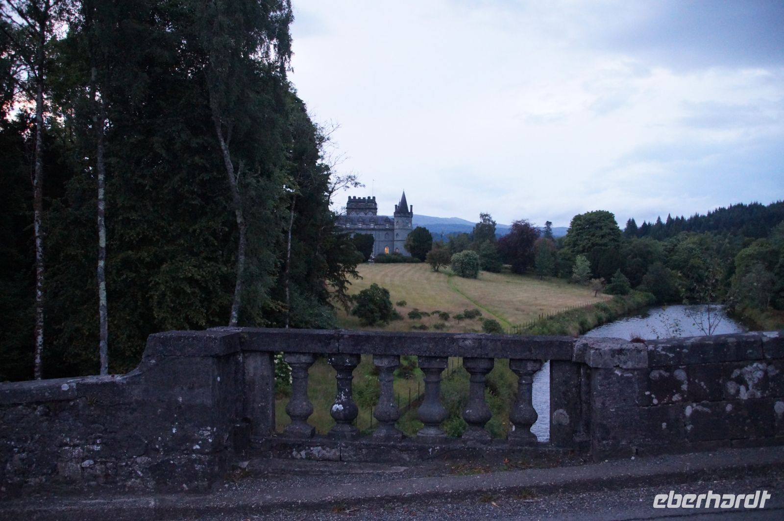 Weiter an Loch Long vorbei, einem Sea Loch (Meeresarm), führte uns unser Weg entlang einer von General Wade's Military Roads, die allerdings erst nach Wade's Abberufung von dessen Adjuntanten und Nachfolger Caulfeild [sic!] errichtet wurde. Auf einem Pass ein Stein mit der Inschrift Rest and be thankfull (Ruhe dich aus und sei dankbar): Und das kann man dort durchaus, denn der Blick ins Glencroe (nicht zu verwechseln mit dem berühmteren Glen Coe) ist wunderschön. Am Loch Fyne entlang - der örtliche Geschäftsleute immer wieder zu einem Wortspiel animiert (Fyne Ales, Fyne Whiskies... Whiskies/Biere vom Loch Fyne//feine Biere/Whiskies) - erreichten wir schließlich Inveraray, wo wir im Inn unser Nachtlager aufschlugen. Inveraray hat eine Kirche, die in der Mitte in zwei geteilt ist, einen Teil für das ursprünglich gälischsprachigen Glenaray (Gleann = Tal von Aray) und einen Teil für das englischsprachige Inveraray (Inbhir = Mündung des Aray). Das hat natürlich heute keine Bedeutung mehr, die eine Hälfte benutzt die Gemeinde als eine Art Bazar.