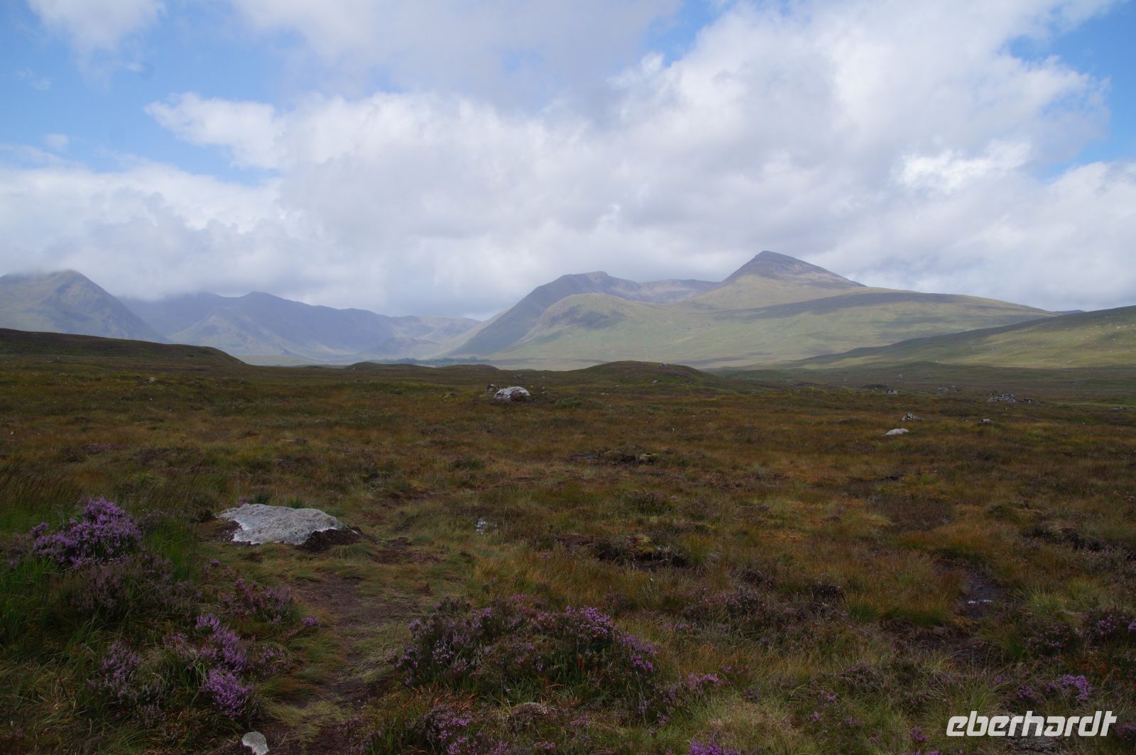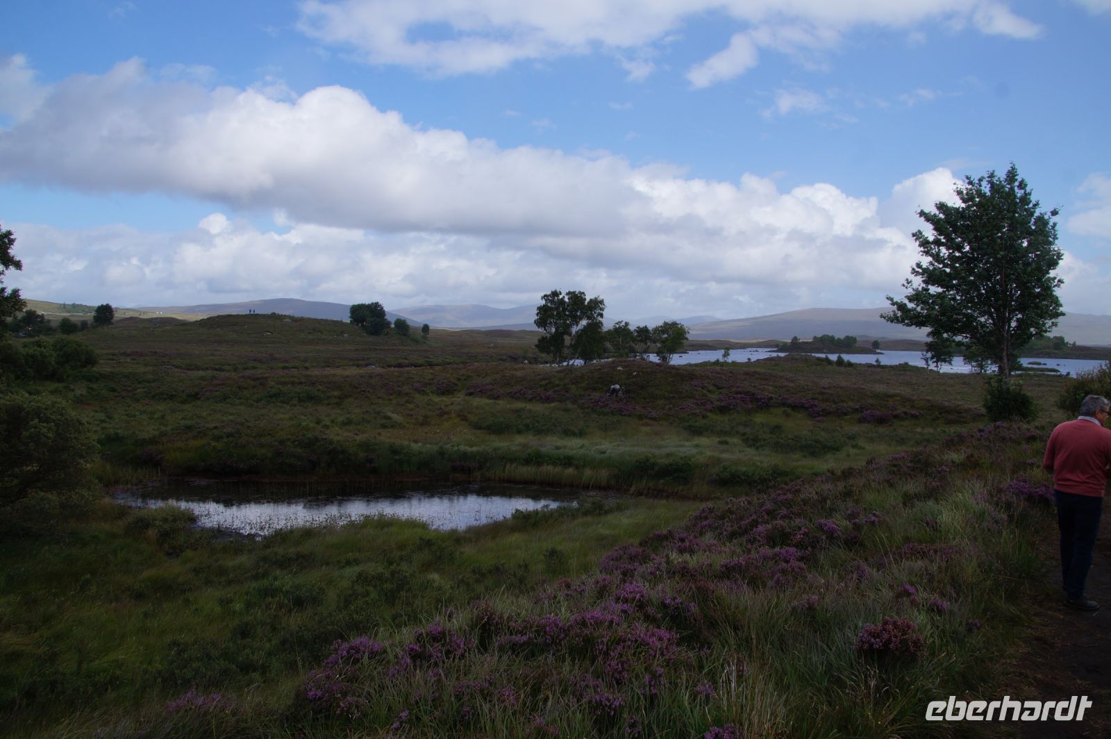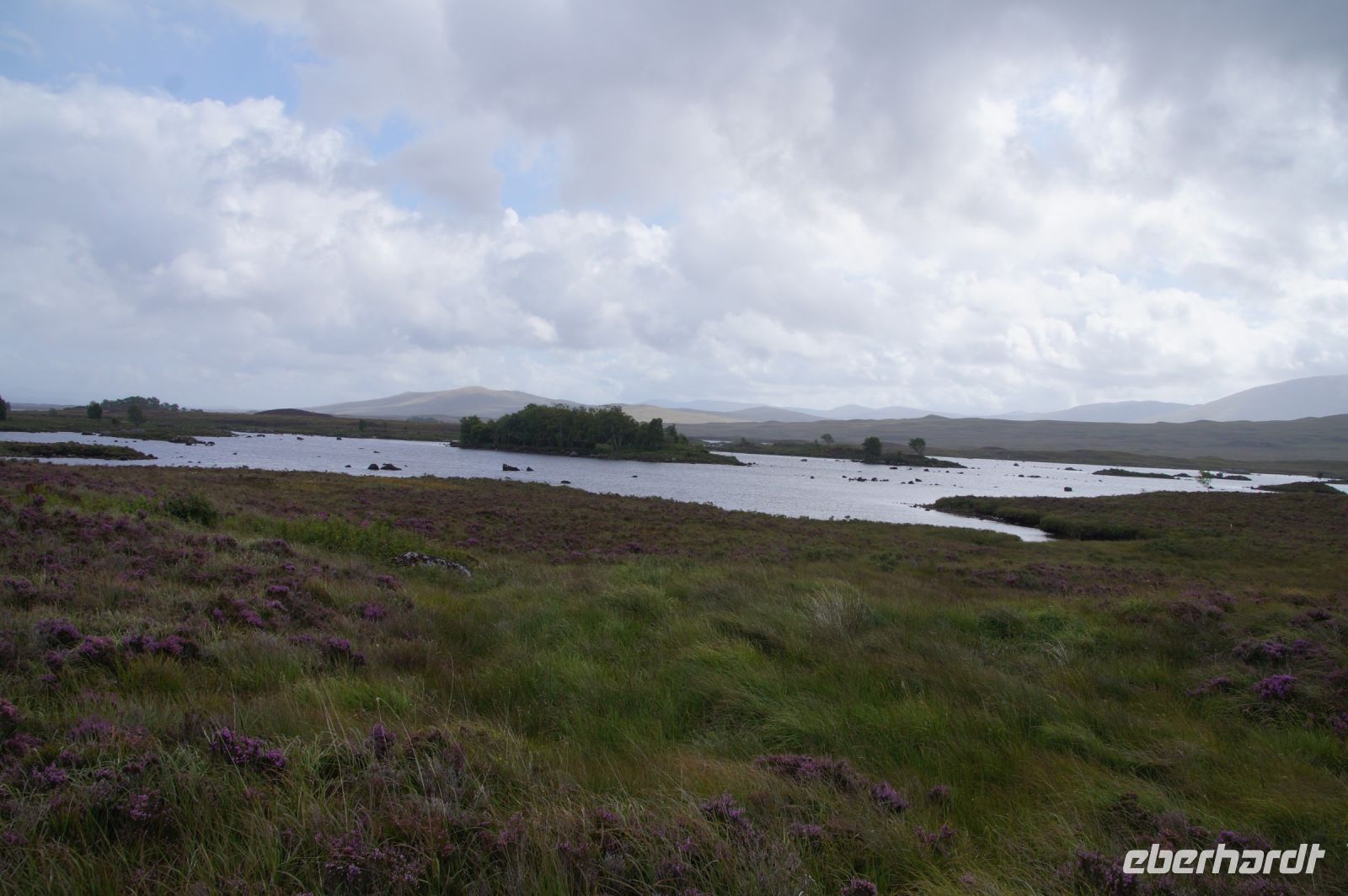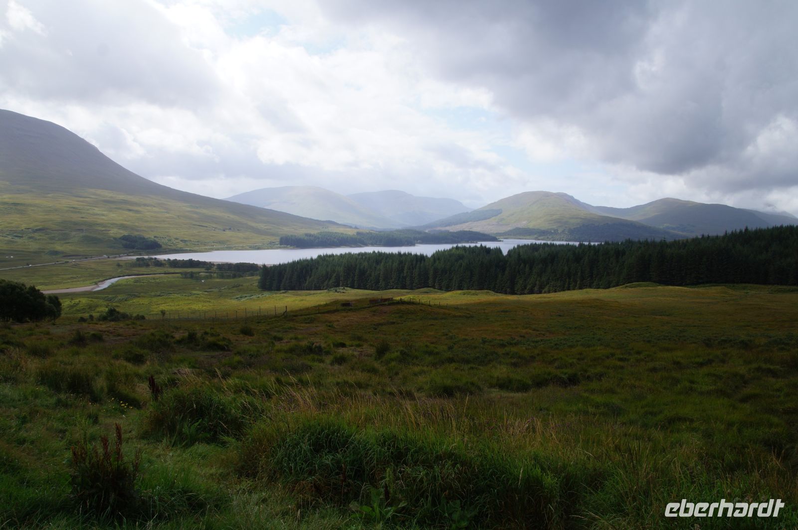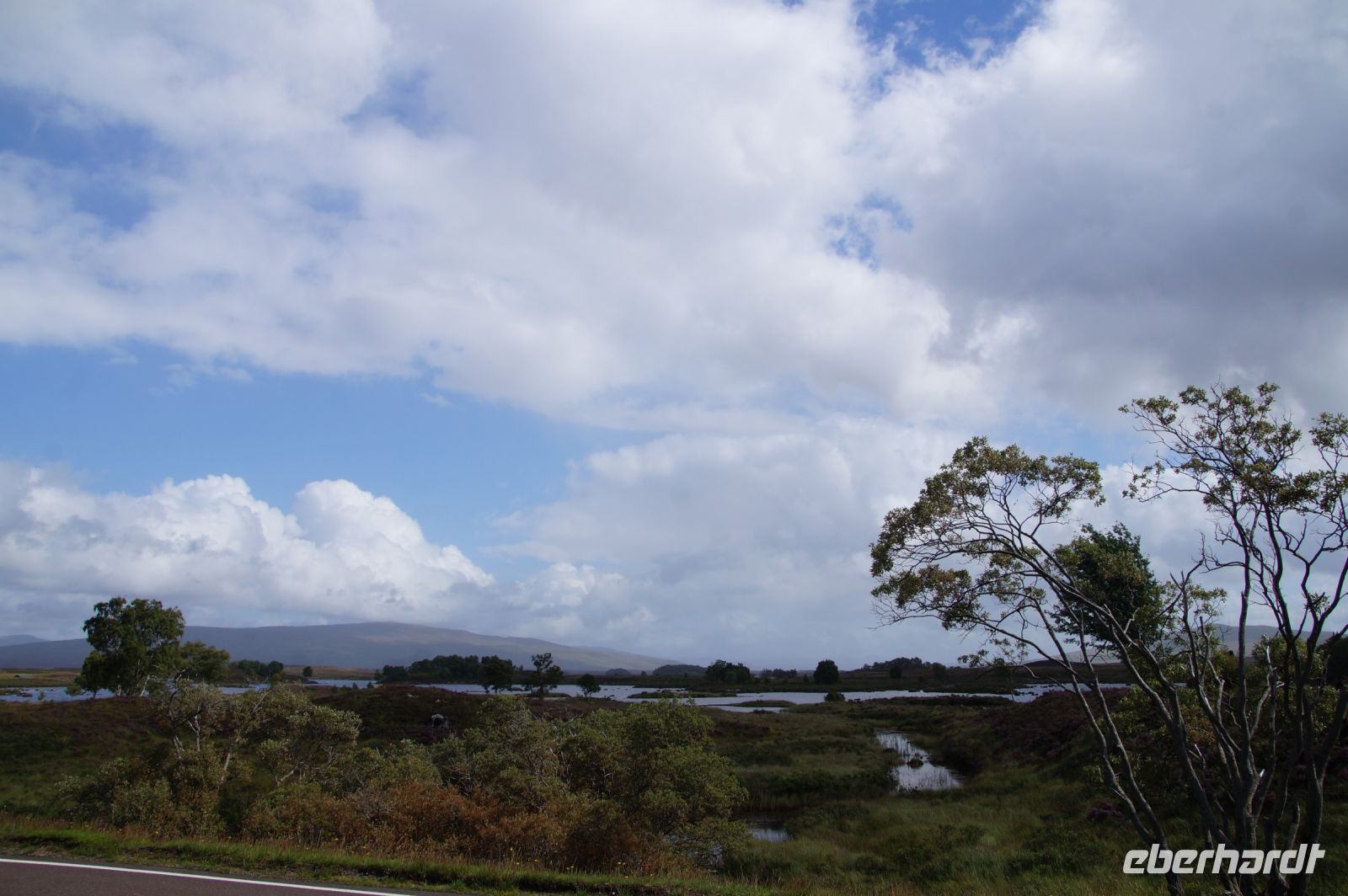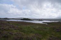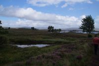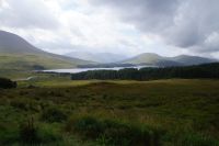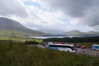 Unser nächster Stopp war - Mike musste tanken - eine schottische Metropole: Tyndrum ("Taindram"), die Stadt, die sich mit etwa 300 Einwohnern zwei Bahnhöfe leistet. Der Ehrlichkeit halber sei hinzugefügt, dass man, wenn man von dem einen Bahnhof zum anderen mit dem Zug fahren will etwa eine halbe Stunde reiner Fahrzeit benötigt (Umstiegszeit ist nicht berücksichtigt), wohingegen man vom einen der beiden Bahnhöfe zum anderen locker in wenigen, maximal zehn Minuten gelangt. Es sind halt zwei Bahnlinien, die sich hinter dem nächsten Bahnhof teilen, die eine, die nach Westen, die andere, die durchs Rannoch Moor nach Norden führt. Parallel zu dieser führte uns unser Weg nun auch in besagtes Hochmoor. Zunächst hielten wir noch am Loch Tulla View, dann fuhren wir ins Moor, wo wir auch einen Fotostopp machten, sehr zu Mikes Unwohlsein: Hier kämen regelmäßig Touristen beim Überqueren der Straße ums Leben, verriet er mir.