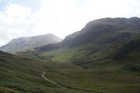 Dann erreichten wir das berühmteste der schottischen Täler: Glencoe, Schauplatz des Massakers des Clan Cameron am Clan McDonald of Glencoe 1692. Dieses Massaker war kaum schlimmer als viele andere Clankonflikte, aber hier kamen mehrere Dinge zusammen: Clankonflikt und große Politik verbanden sich hier. Der Laird der MacDonalds of Glencoe, ein Anhänger der Stuarts, also ein Jakobit, hatte sich geziert, William/Willem von Oranien seine Aufwartung zu machen, er wollte so lange wie möglich damit warten, seiner Lehenspflicht nachzukommen, um seinem Missfallen Ausdruck zu verleihen. Er hatte zu lange gewartet, denn als er endlich losziehen wollte, um zum verabredeten Punkt zu kommen, war er eingeschneit und konnte sein Tal nicht verlassen. Daraufhin kam von London der Befehl, ein Exempel zu statuieren, den Befehl konnte man so verstehen, dass alle Männer getötet werden sollten. Soldaten des Clan Cameron quartierten sich bei den MacDonalds ein und lebten zwei Wochen dort. Die Gastfreundschaft war in den Highlands heilig, sie wurde auch verfehdeten Clanangehörigen gewährt - manche Historiker vermuten, dass der ein oder andere vom Clan Cameron in den Ställen der MacDonalds seine eigene Kuh wiedererkannte. Nachdem sie zwei Wochen die Gastfreundschaft der MacDonalds genossen hatten, gab Leutnant Cameron seinen Leuten das Signal, am Morgen früh aufzustehen und ihre Gastgeber in ihren Betten zu töten, was auch geschah. Viele der Männer wurden getötet, manche der Frauen und Kinder, die in ihren Nachthemden in das winterliche Gebirge flohen, überlebten nicht. Bis heute sieht man an manchen Häusern rund im Glencoe Schilder, die Hausierer und Camerons abweisen.