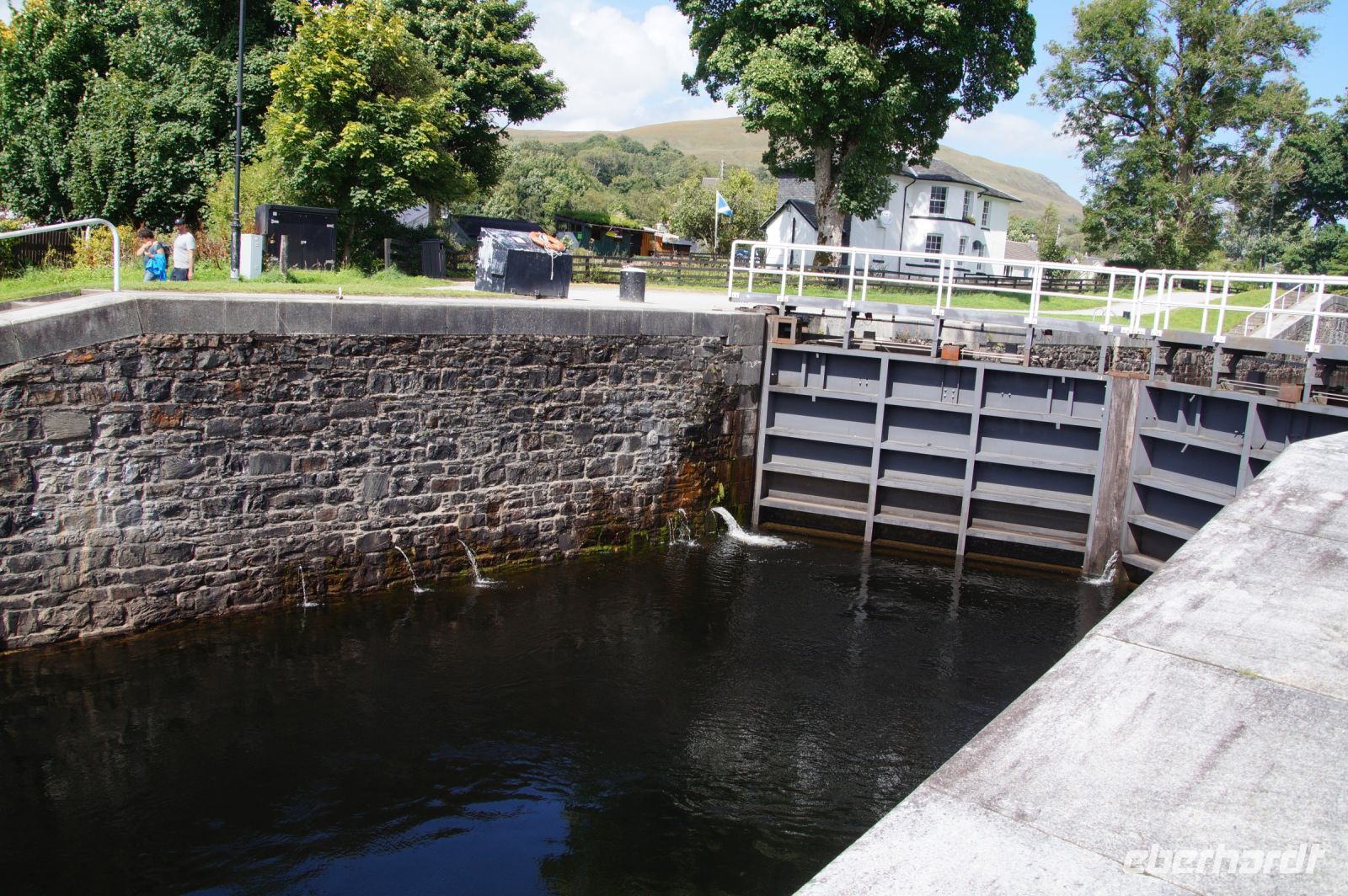In Fort Augustus - das General Wade (der mit den Military Roads) gerne Wadesborough genannt hätte, hatten wir noch ein wenig Zeit, also erlaubten wir uns auch hier noch einen kurzen Aufenthalt und schließlich einen weiteren an der Brücke von Invermoriston, der Mündung des Moriston in Loch Ness. Somit hatten wir auch - seit Fort Augustus - den vierten der britischen Rekordseen erreicht: Loch Ness, geformt wie eine Badewanne ist zwar weder der absolut tiefste See in Schottland (aber der zweittiefste), noch der mit der größten Wasseroberfläche (aber der zweitgrößte), noch der längste (aber der Zweitlängste), aber er ist der mit der mit der größten Durchschnittstiefe und so ist er das Süßwasserreservoir mit dem größten Volumen. Der vierte und letzte unserer Rekordhalter.