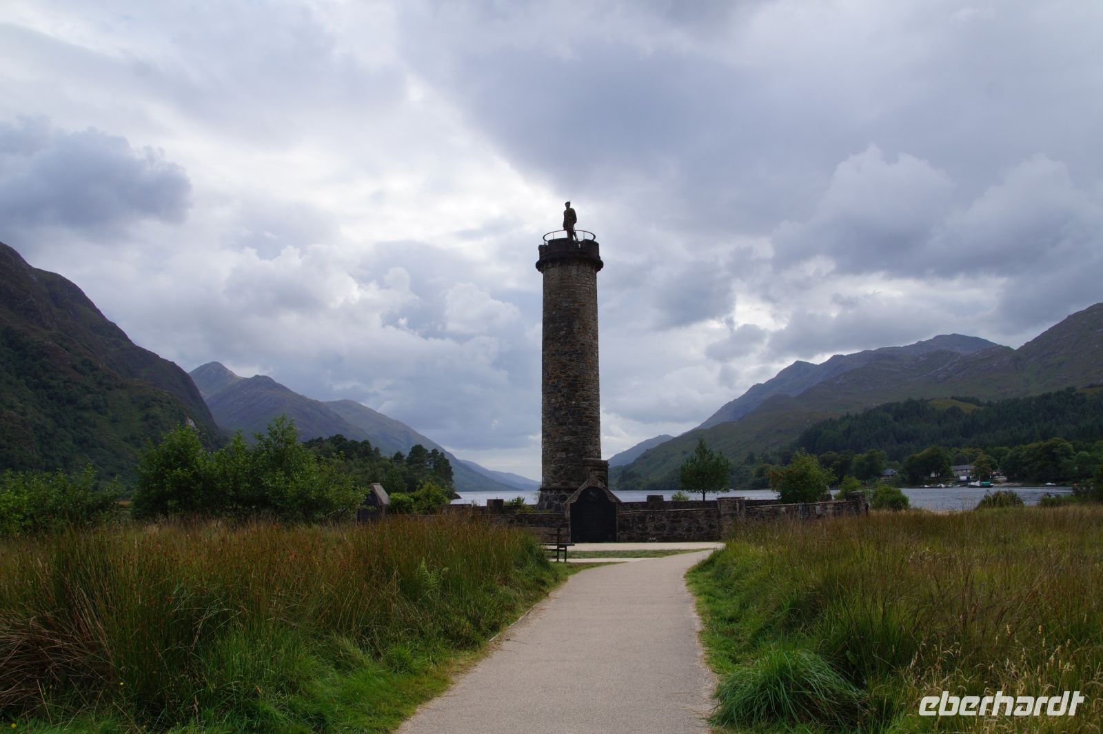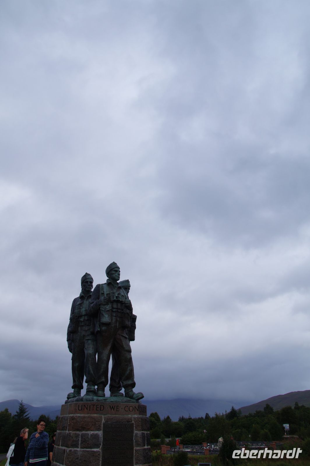 Bereits gestern hatten wir ja diese tektonische Verwerfung mit Namen Great Glenn (großes Tal) an ihrem Westrand gequert und den Caledonian Canal in Ansätzen kennengelernt. Jetzt ging es mitten hinein in die tektonische Verwerfung. Zunächst hielten wir am Commandos Denkmal. Die schottische Nordweestküste, die von deutschen Aufklärungsfliegern kaum zu erreichen war und deren viele fjordartige Einbuchtungen sie sehr unübersichtlich für U-Boote machten, diente den Alliierten im Zweiten Weltkrieg dazu, ihre Soldaten für den Einsatz gegen Nazi-Deutschland vorzubereiten. Zumal in dieser dünn besiedelten Gegend jeder Fremde auffiel, der neugierig schaute und Fragen stellte. An Loch Long waren Torpedos getestet worden, hier am Eingang zum Great Glen wurden die Commandos trainiert, Spezialeinheiten aller Waffengattungen, die im Hinterland des Feindes operieren sollten. Sie waren das Vorbild für weitere Spezialeinheiten überall auf der Welt.