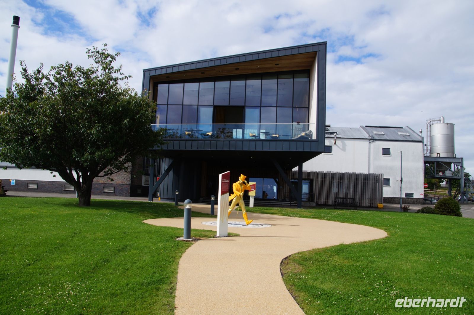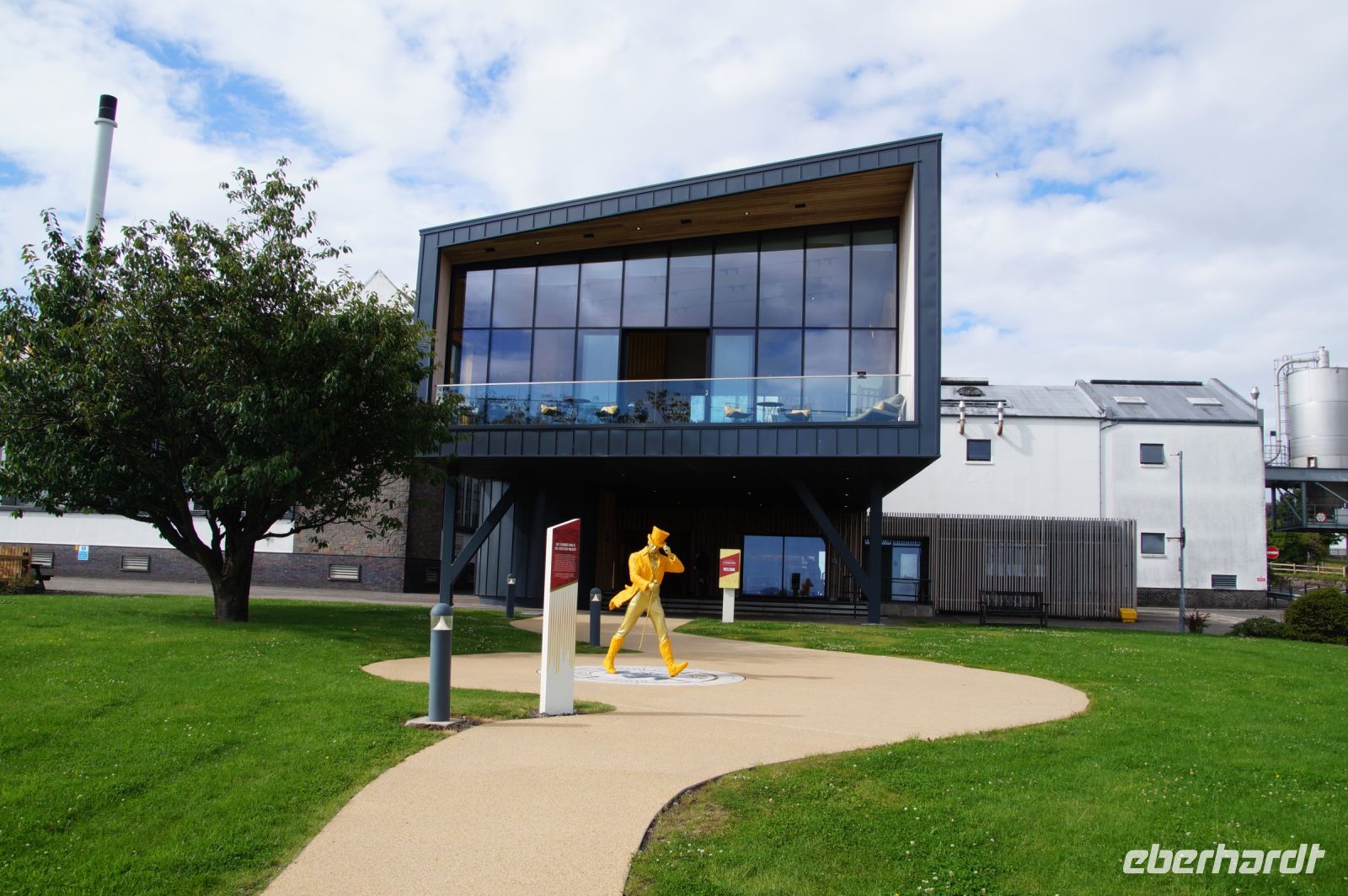 Unser Ziel war die Clynelish-Distillery bei Brora. Clynelish ist aus der stillgelegten Brora-Distillery hervorgegangen, die seit zwei Jahren ihren Betrieb wieder aufgenommen hat. Clynelish produziert in erster Linie für Johnny Walker-Blends, also verschnittenen Whisky. Und so begrüßte uns auch am eingang ein gülden gewandeter Johnny Walker. In den edel gestalteten Besucherräumen degustierten wir drei Whiskies (wovon nach meiner Erinnerung aber nur einer ein Blend war).