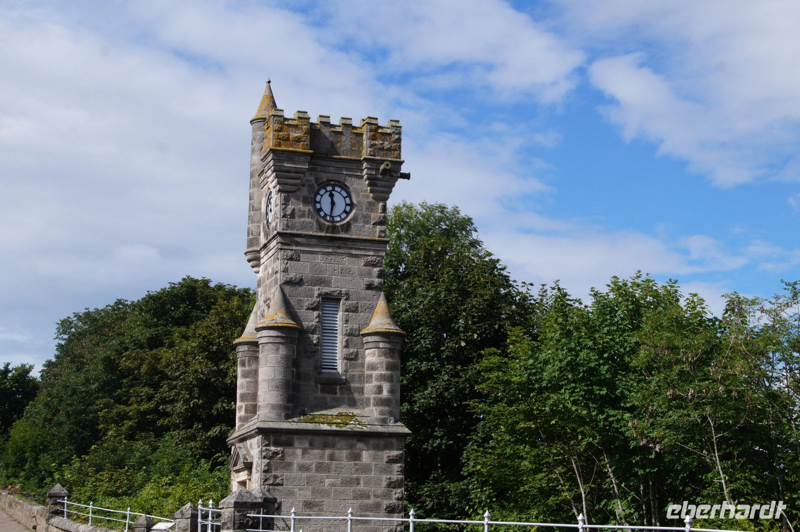 Nun ging es weiter in Richtung Aberdeen, wir fuhren an mancher Destille vorbei, machten einen Fotostopp bei Craigellachie, wo die John Dewar and Sons Distillery ihre Brennblasen zur Straße hin offen zeigt. Wenige hundert Meter weiter befindet sich die speyside Cooperage (Küferei), die Whiskyfässer repariert und wieder aufbereitet, diese allerdings war schon geschlossen. Nur wenige Kilometer weiter liegt die berühmteste der Single Malt Distilleries: Glenfiddich (Tal der Hirsche), hier fuhren wir aber nur vorbei. Unser Tagesziel für heute war Aberdeen.