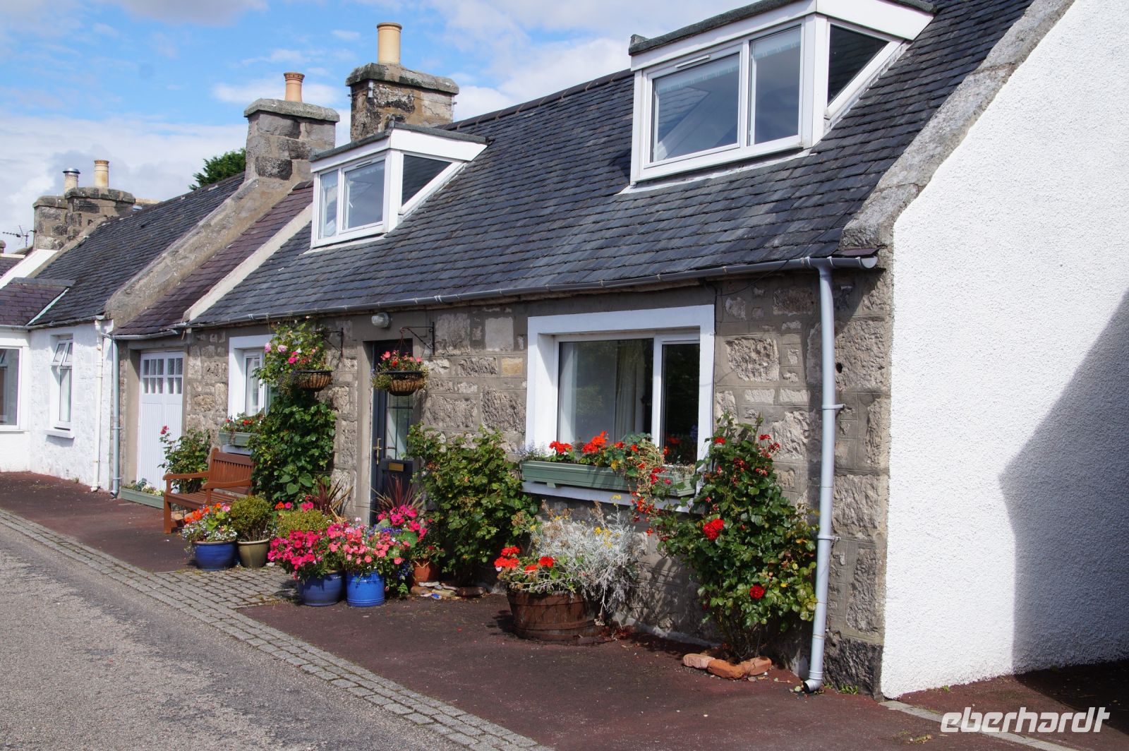 Bevor wir ins Hotel zurückkehrten, besuchten wir noch die Fischersiedlung FootDEE an der Mündung des DEE, im Hafen von AberDEEn. Diese war angelegt worden, als der Fischerhafen von Aberdeen für die Schiffe der Öl- und Gastindustrie ausgebaut wurde und die Fischer ihre alten Häuser deswegen verlassen mussten.