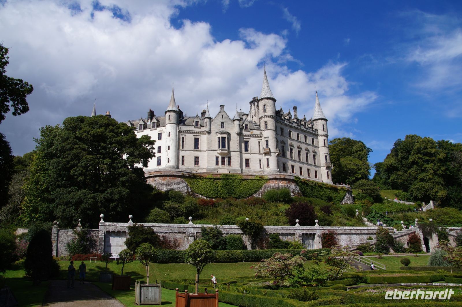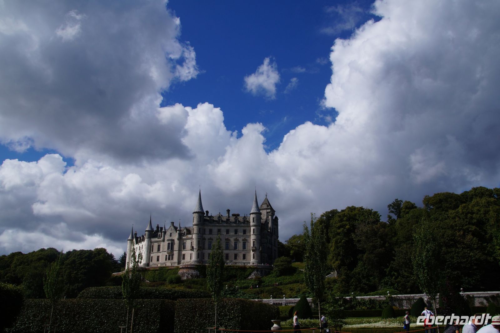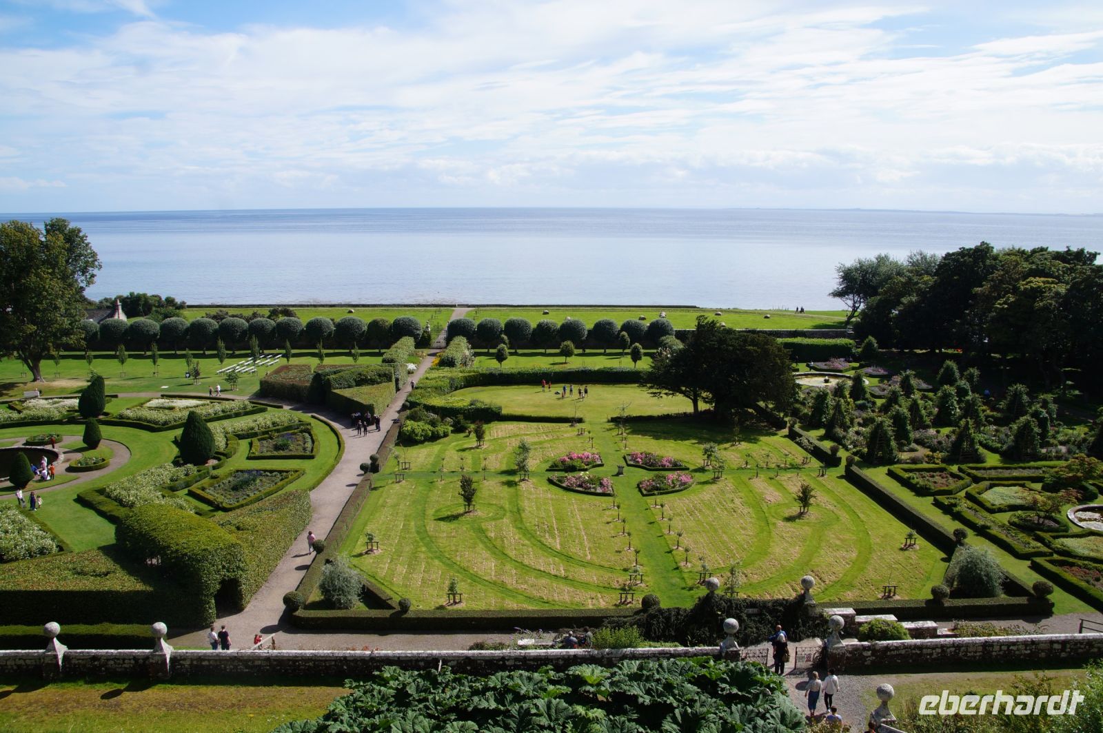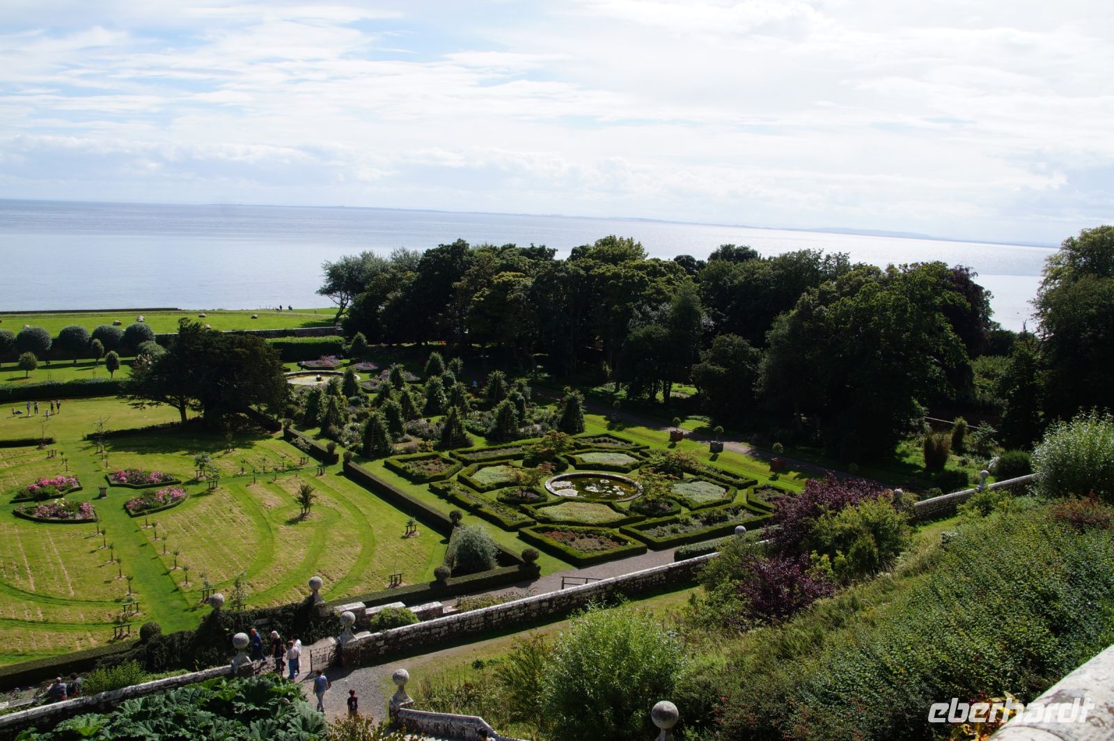 Später dann waren wir in Dunrobin Castle, dem größten Wohnhaus der Highlands mit 288 Zimmern (nur einen Bruchteil davon kann man als Besucher besichtigten). Das Schloss mit seinen Gartenanlagen ist rund um einen Wohnturm aus dem Mittelalter erichtet, von dem man noch Mauerreste im Innenhof des Schlosses sehen kann, die Parkanlage endet am Meer.