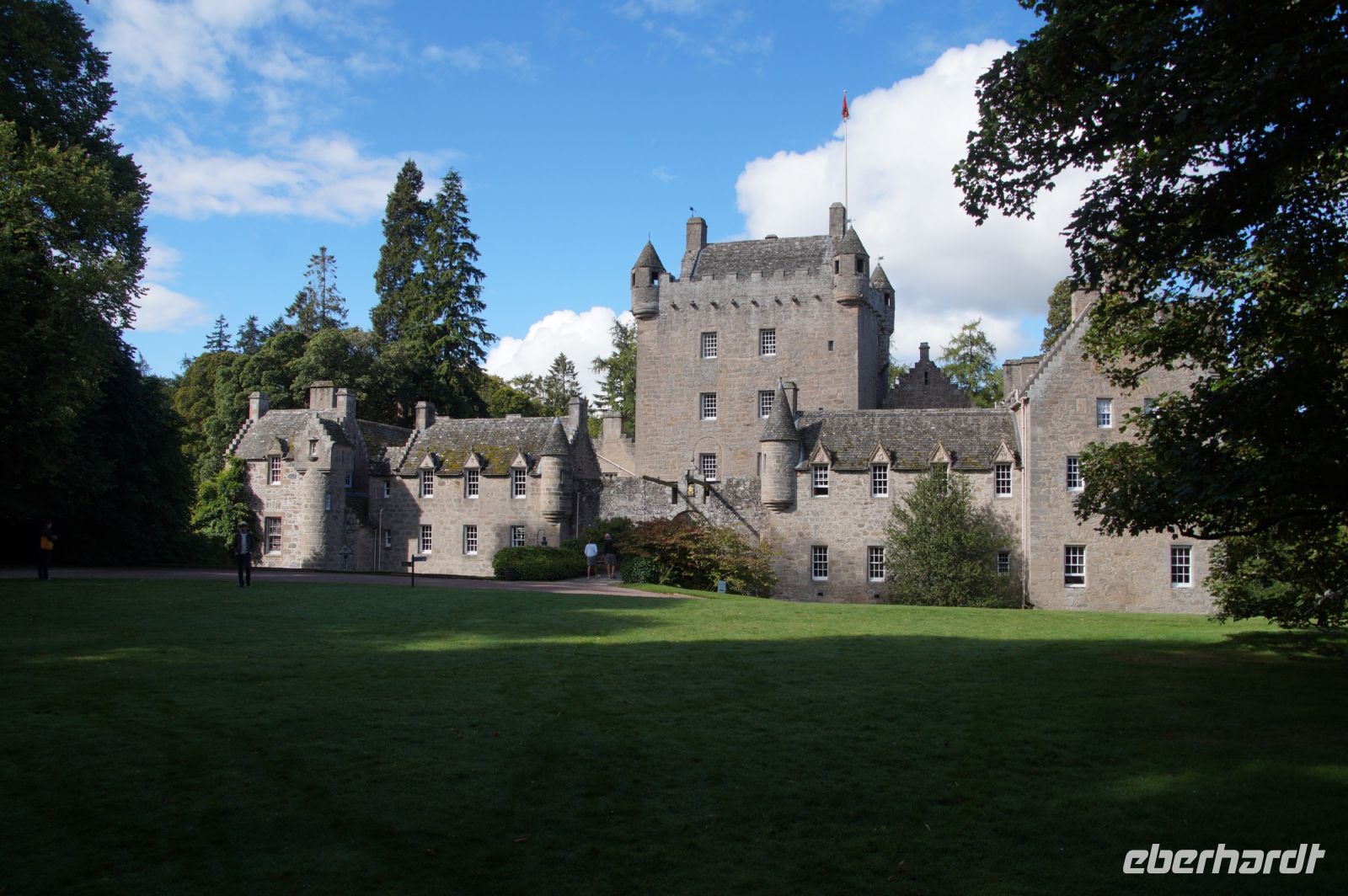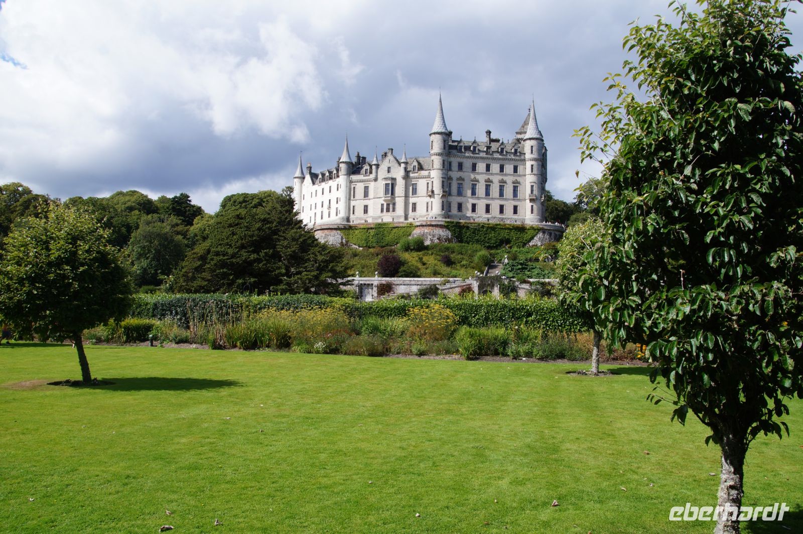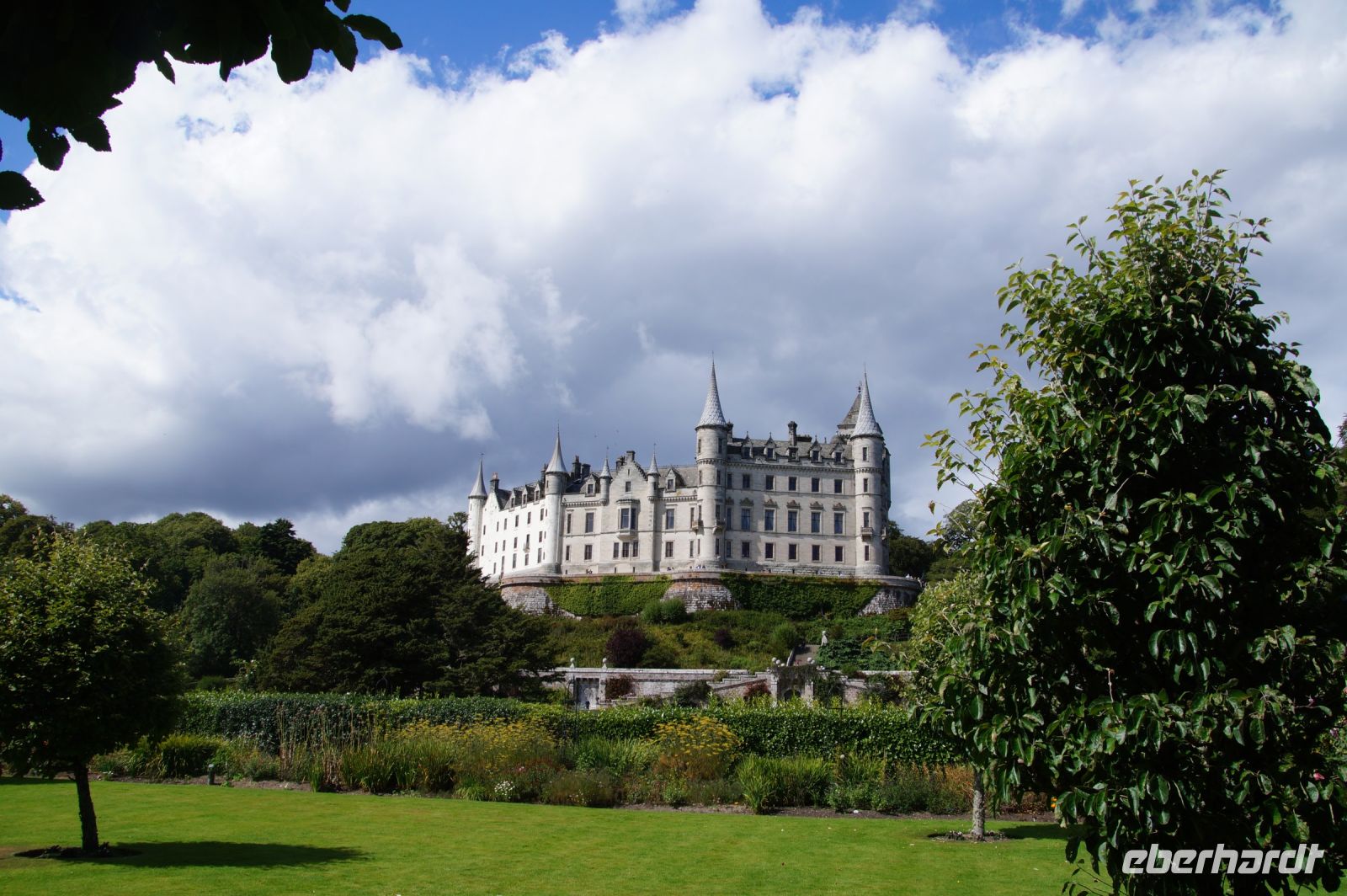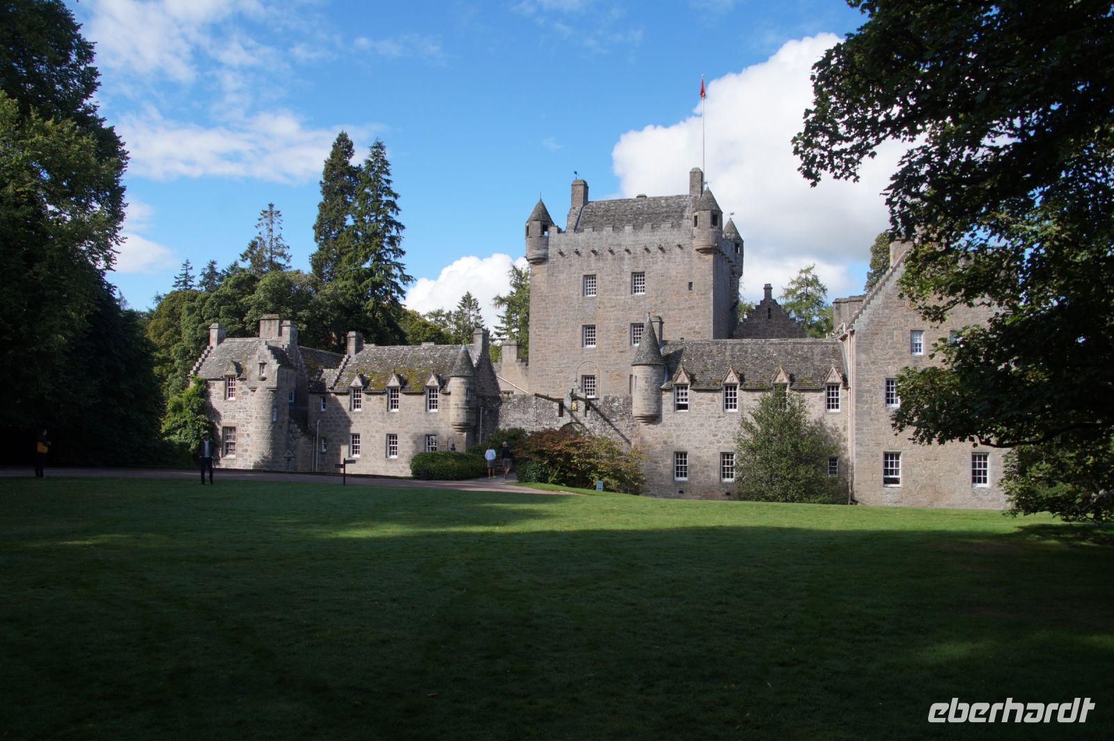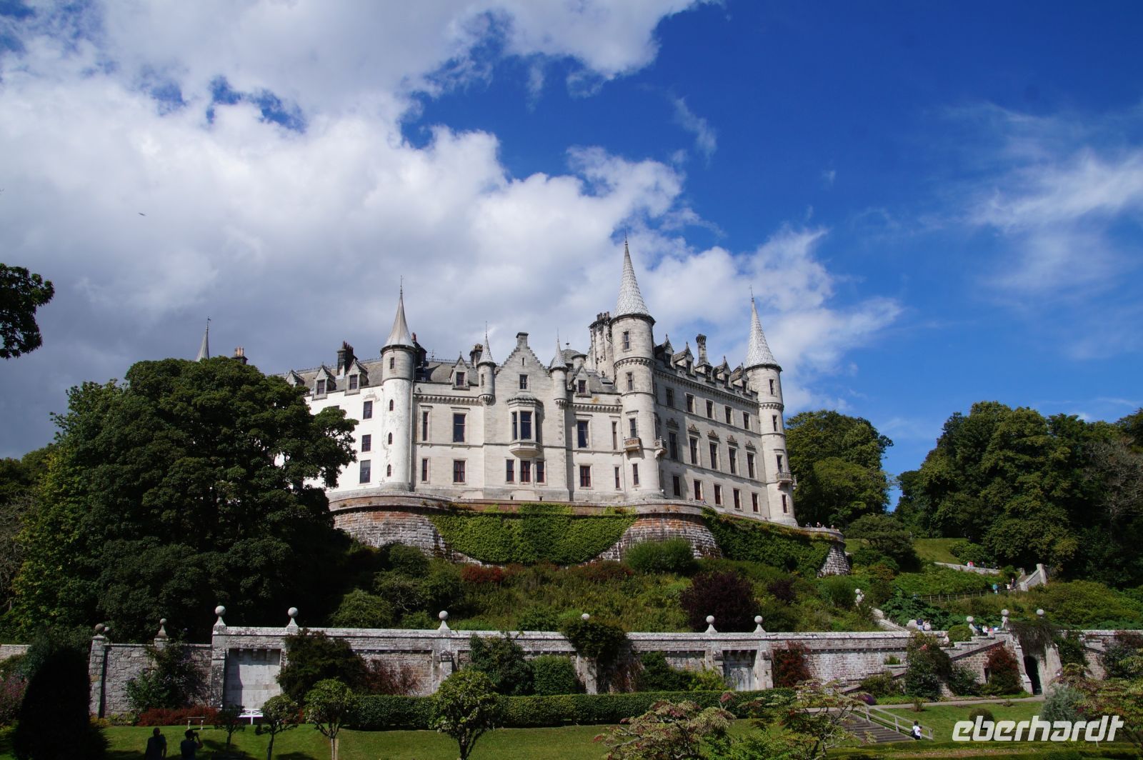 Später dann waren wir in Dunrobin Castle, dem größten Wohnhaus der Highlands mit 288 Zimmern (nur einen Bruchteil davon kann man als Besucher besichtigten). Das Schloss mit seinen Gartenanlagen ist rund um einen Wohnturm aus dem Mittelalter erichtet, von dem man noch Mauerreste im Innenhof des Schlosses sehen kann, die Parkanlage endet am Meer.