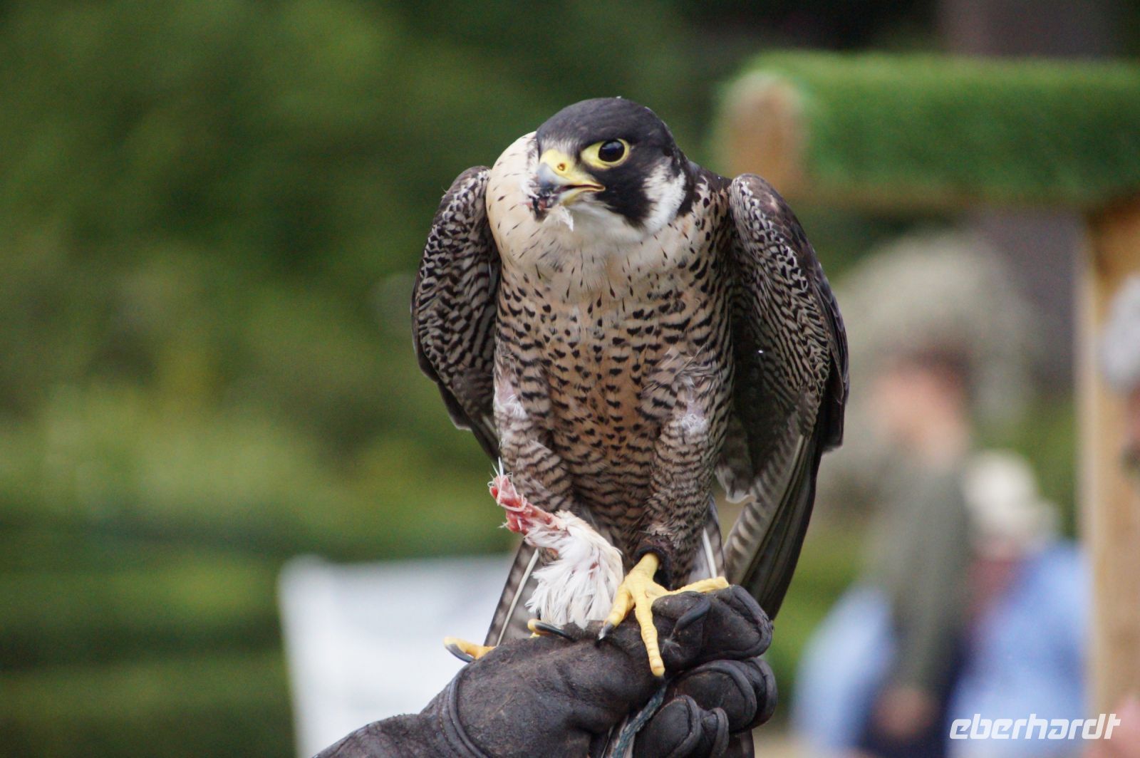 Hier findet auch zwei Mal täglich (April bis Oktober) eine Falkenshow statt und die Falkner erklären die Aufzucht und Jagd und lassen einige ihrer Vögel (nicht nur Falken!) fliegen. Dabei ist viel Geduld erforderlich, denn die menschlichen Zuschauer beachten nicht immer die Flugschneisen der Habichte.