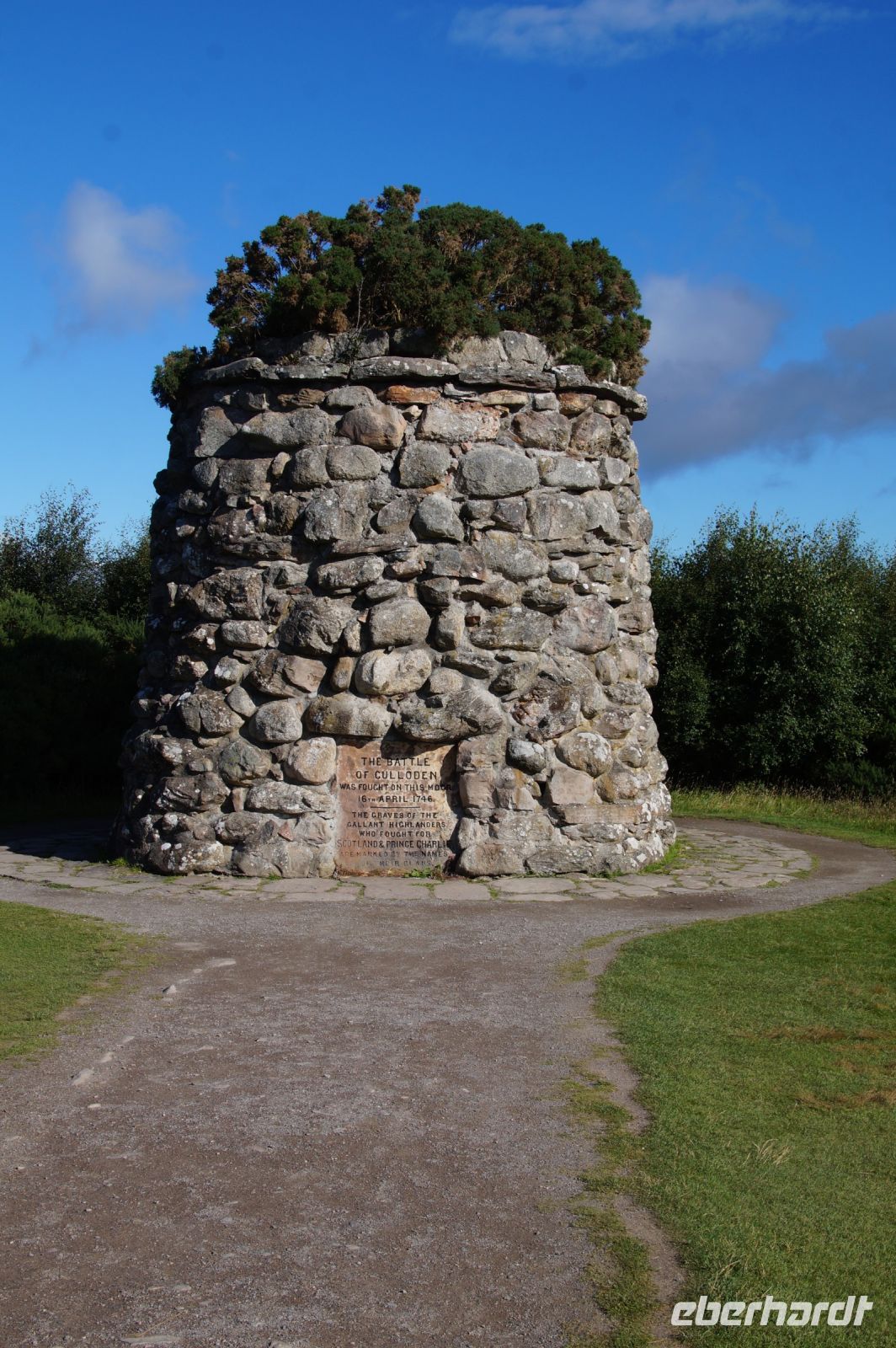 Zunächst aber hielten wir draußen kurz hinter Inverness, südöstlich gelegen, bei Culodden Moor. Hier hatte die Armee des Herzogs of Cumberland, des Sohns des Königs Georg von Hannover und Bruder des Kronprinzen die jakobitische Armee geschlagen, welche die Herrschaft der protestantischen Hannoveraner herausgefordert hatte, um wieder einen katholischen Stuart auf den britischen Thron zu hieven, vernichtend geschlagen. Selbst Zuschauer am Schlachtfeldrand sollen niedergemetzelt worden sein. Flüchtige wurden noch monatelang bis in ihre Hütten in den hinterletzten Winkeln der Highlands verfolgt, "Sweet William" (der süße Wilhelm) wollte offensichtlich die Jakobten mit Stumpf und Stiel ausmerzen und handelte sich so den Beinamen Butcher of Cumberland (Metzger von Cumberland) ein. Nachdem man in London schon auf gepackten Koffern gesessesn hatte, um nach Hannover abzudampfen (naja, Dampfschiffe gab es 1745/46 noch nicht), wurde jetzt endgültig klar, dass die jakobitische Armee nie eine echte militärische Gefahr dargestellt hatte. Was allerdings auch daran lag, dass Jakobiten der schottischen Lowlands und aus England sich der Armee nicht angeschlossen hatten.