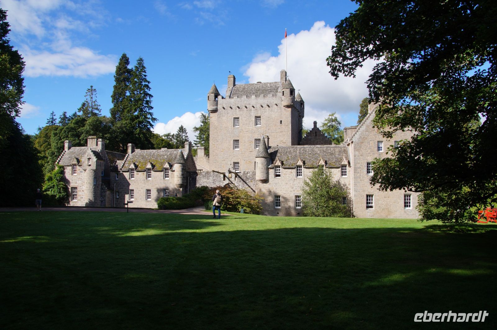 Ziehen wir Bilanz, so haben wir fünfeinhalb Whiskydestillen gesehen: Kilchoman, Bowmore (das ist die halbe, hier standen wir vorm Tor und sie hatte geschlossen), Bunnababhain auf Islay, Clynelish in den Highlands; Glen Moray und Glen Grant in Speyside. Nicht mitgezählt die vielen bekannten und unbekannten Destillerien, die wir im Vorbeifahren in Bus oder Fähre an ihren Pagodendächern erkannten oder die wir sonstwie passierten. An Burgen und Schlössern hatten wir Doune, Inveraray (im Vorbeifahren und Spaziergänger auch von außen) Kilchurn, Urquhardt, Glamis Castle, Castle Fraser, Cawdor, Drum, Dunnottar Castle, Scone, Holyrood Palace und Edinburgh Castle gesehen und in Melville Castel sogar übernachtet.