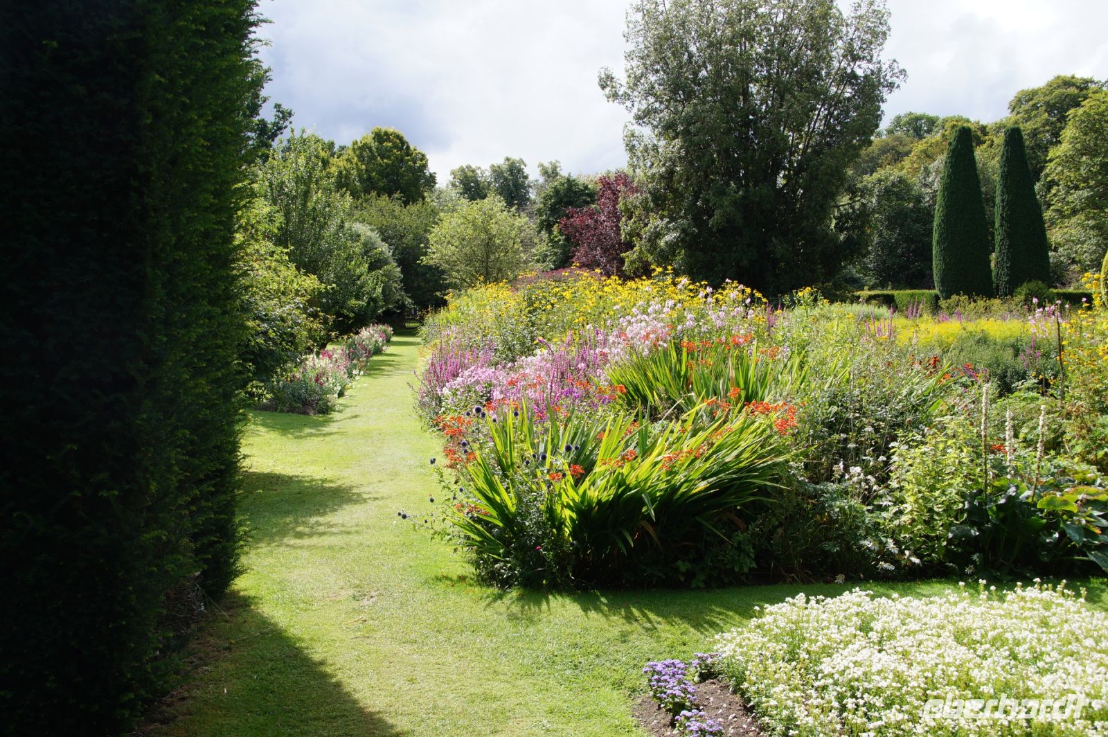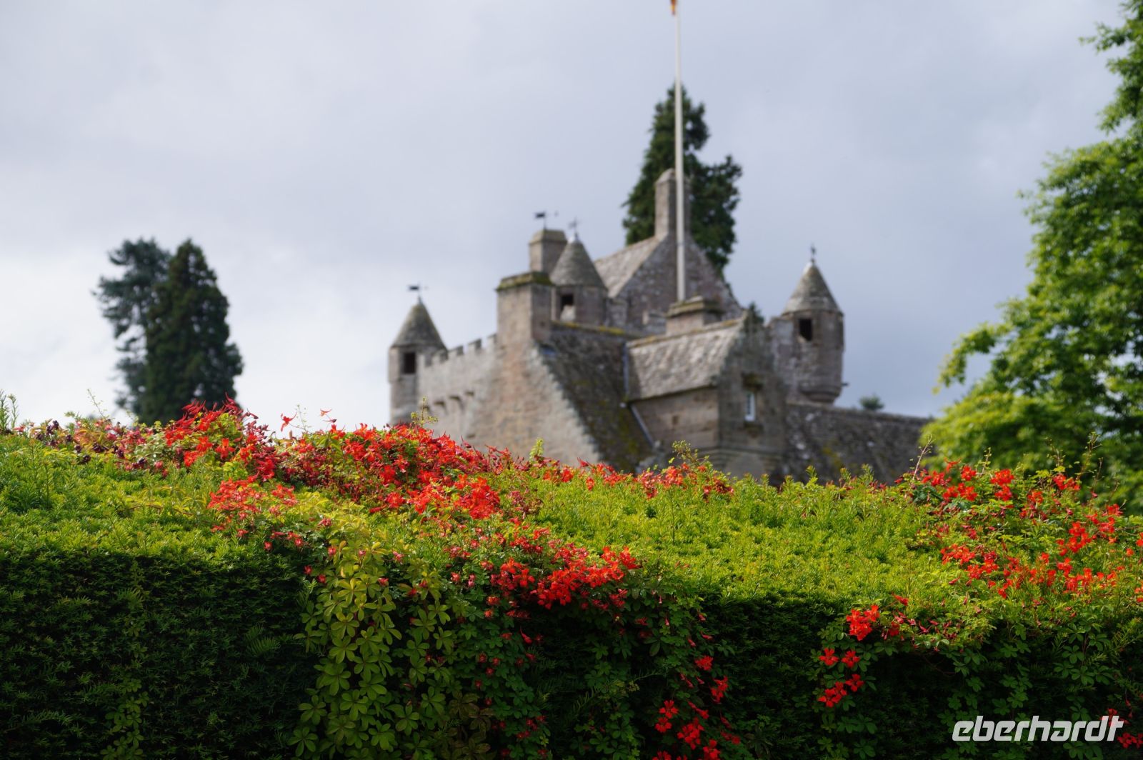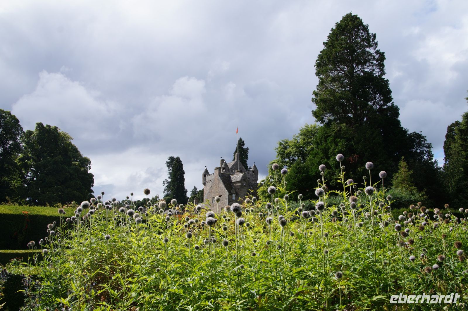 Das nächste Ziel war Drum Castle. Hier allerdings musste man sich einer Rundtour anschließen und die Rundtour war auf eine begrenzte Teilnehmerzahl beschränkt. Wir hatten das Glück, dass nicht alle Lust auf ein zweites Schloss hatten und lieber in der Schlossküche essen wollten und so passte die Aufteilung ganz gut. Die anderen hatten dann etwas mehr Zeit für die Gärten, insbesondere den Rosengarten von Drum Castle mit seiner interessanten Sonnenuhr.