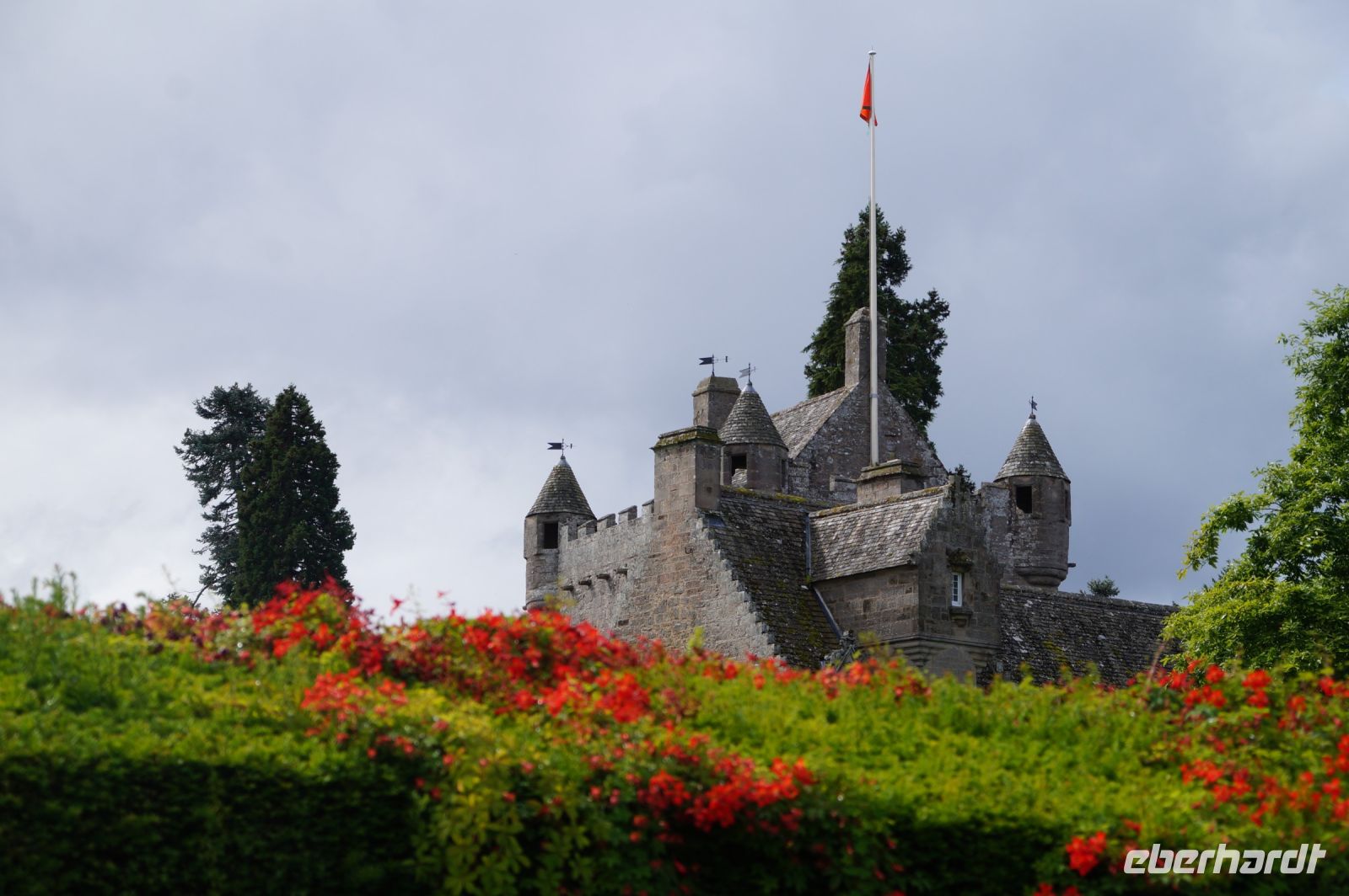 Unser erstes Ziel war das Childhood Home of Queen Elizabeth. Die Kinderstube der König Elisabeth. Der ohne Ordnungszahl, uns bekannter als Queen Mom. Diese war in Glamis Castle aufgewachsen, einer Burg, einem Jagdschloss' James V. Stuart, nachdem dieser die Burg den Douglas' abgenommen hatte, deren Vorfahr ein treuer Freund seines Vorfahren (mütterlicherseits), Robert the Bruce gewesen war. Hier erhielten wir wieder eine Führung durch die Burg. Ähnlich, wie in Cawdor, wo MacBeth Thane gewesen sein soll, ist Glamis in der Geschichte als Residenz von MacBeth behandelt worden, sicherer ist hingegen, dass MacBeths Vorvorgänger Malcolm II. hier ermordet wurde. Auf diesen wiederum folgte Duncan I., welcher laut Shakespeare von MacBeth ermordet wurde.