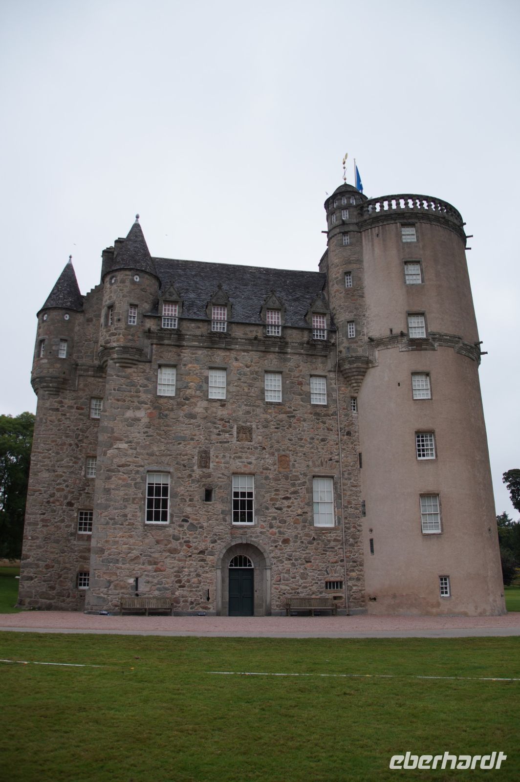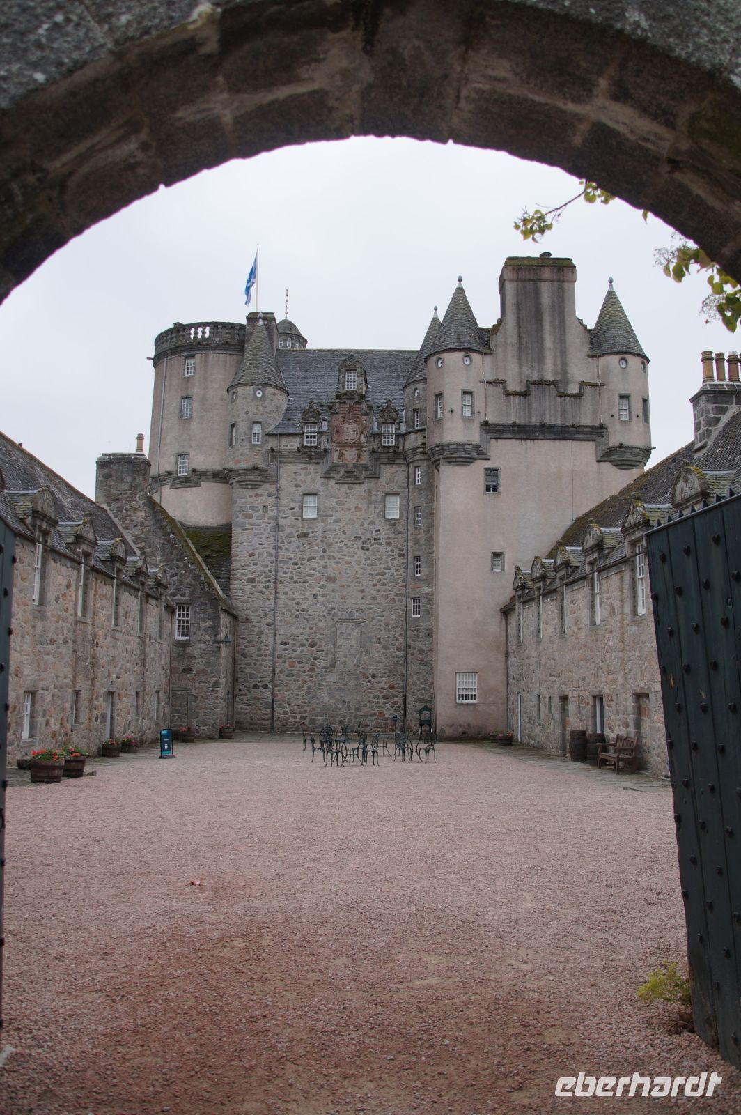 Nun, wir starteten mit Castle Fraser, das allerdings mit den Frasers of Lovat (aus Outlander) genau so wenig zu tun hat, wie der Gedenkstein an den Clan Fraser auf Culodden Battlefield. Wir waren recht früh hier, so dass wir erst einmal aufsührlich die Gärten inspizierten, bevor wir die Burg selbst betraten. In der Näher der Burg stehen auch einige Monolithen und Steinkreise, die auf das Endneolithikum bzw. die frühe Bronzezeit datiert werden. Mehrere Modernisierungen und Erweiterungen seit seinem Bau im 16. Jhdt. (auf den Grundmauern eines Vorgängerbaus) war die Burg bis ins 20. Jhdt. bewohnt und wäre wohl auch heute noch bewohnbar. Einer ihrer Bewohner verlor in den napoleonischen Kriegen in Spanien unter Wellington sein Bein -in der Schlacht trafen ihn zwei Kugeln - lebte dann aber noch lang genug, um zu heiraten und mehrere Kinder in die Welt zu setzen. Seine Beinprothese war auch eines der Ausstellungsstücke.