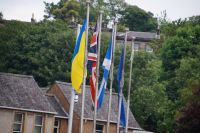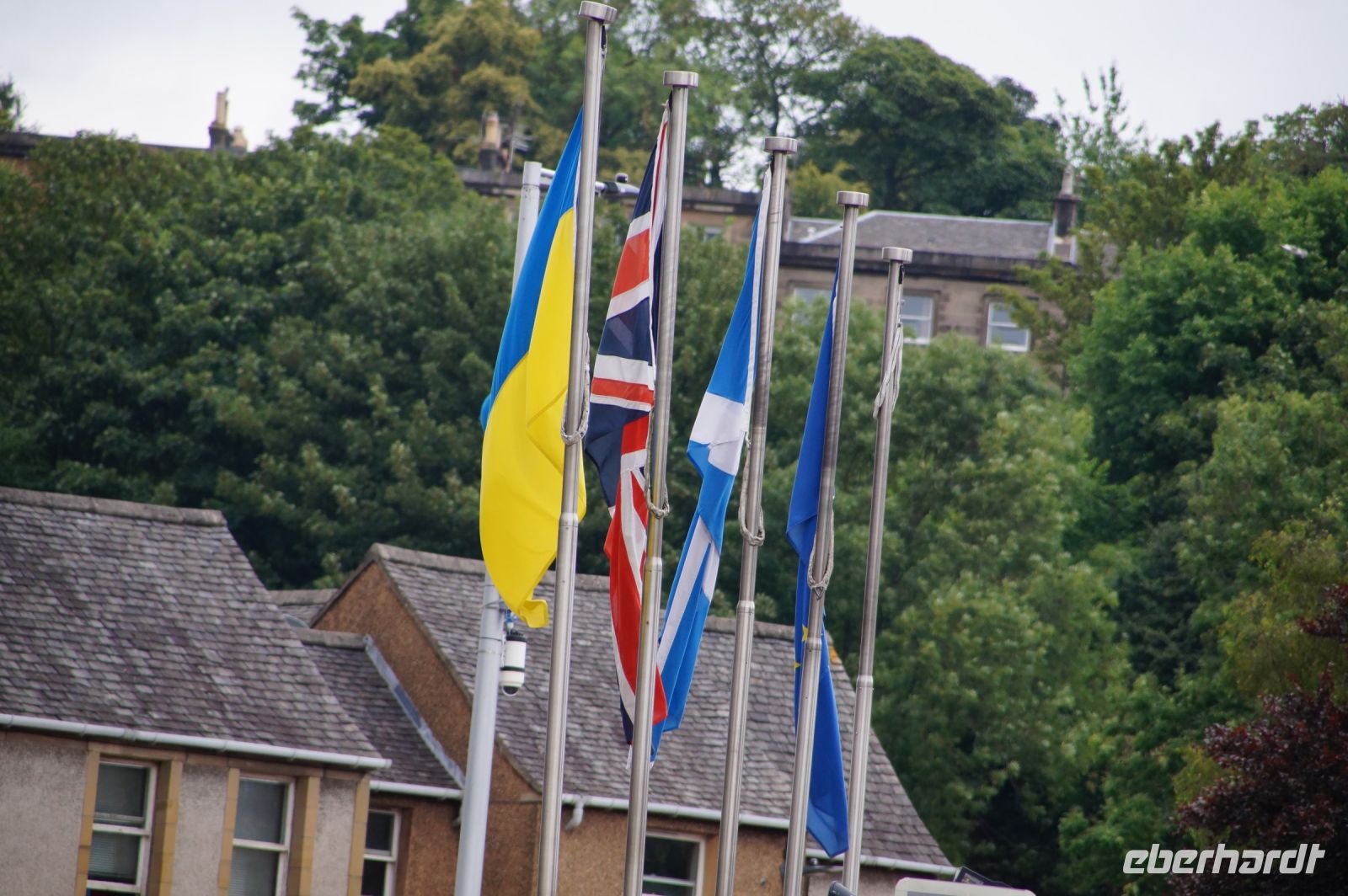 Vom Anreisetag ist eigentlich nicht viel zu berichten. Der Großteil der Gruppe traf sich in aller Herrgottsfrühe am Flughafen in Berlin, um nach Edinburgh zu fliegen. Sylvia war bereits da und wartete auf unser Kommen. Also mussten wir nur noch den Bus finden. Irgendwann war der Kontakt zu Mike hergestellt, was sich anlässlich seines starken schottischen Akzents als … interessant erwies. Wir fuhren los. Hans-Peter und Marion hatten inzwischen ihren Transferfahrer gefunden, der auch sofort mit den beiden nach Hamilton gefahren wäre, wenn die nicht gewusst hätten, dass sie zu dritt sein sollten. Ruth war auch bereits gelandet und suchte am Ausgang. Aber am falschen. Doch jemand vom Flughafen sagte ihr, es gebe nur diesen einen. Mit mehreren Telefonaten konnten schließlich alle zueinanderfinden und gegen 15:00 waren auch alle im Hotel.
