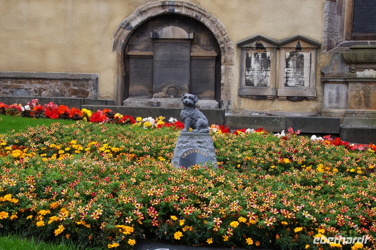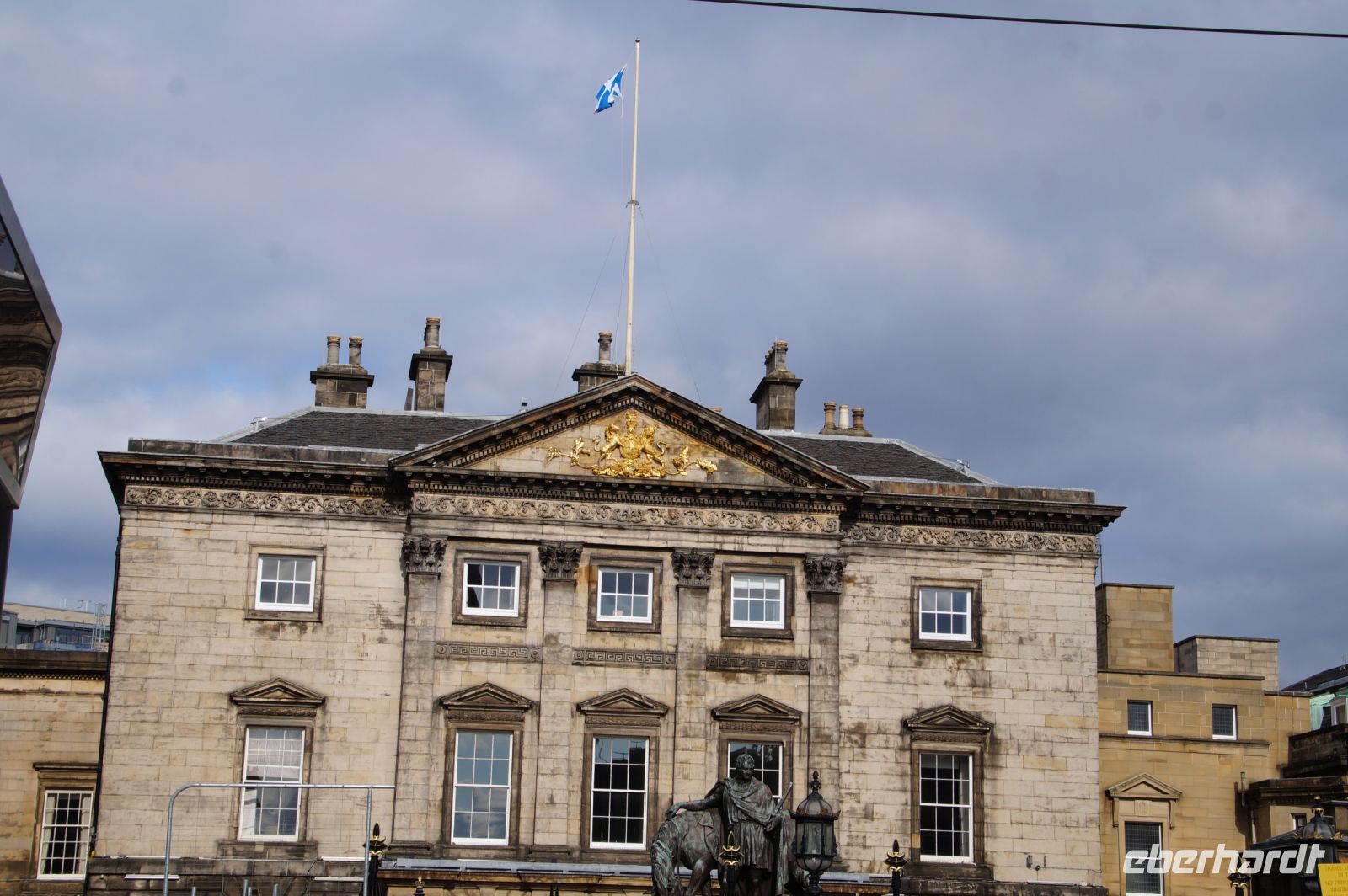 Standesgemäß - schließlich residierten wir im Schloss - holte uns Alisdair (die schottische Form von Alexander) in unserem Schloss ab. Im Kilt. Alisdair, der Germanistik studiert und lange als Deutschlehrer gearbeitet hatte, führte uns durch die Stadt, mit Holyrood Palace, New Town - dort zeigte er uns auf der Säule auf dem St. Andrews Square den Bauherrn und ersten Besitzer unseres Schlosses, Sir Henry Dundas 1st Viscount of Melville, 1742 bis 1811, scherzhaft auch King Harry the 9th, - und Grassmarket.