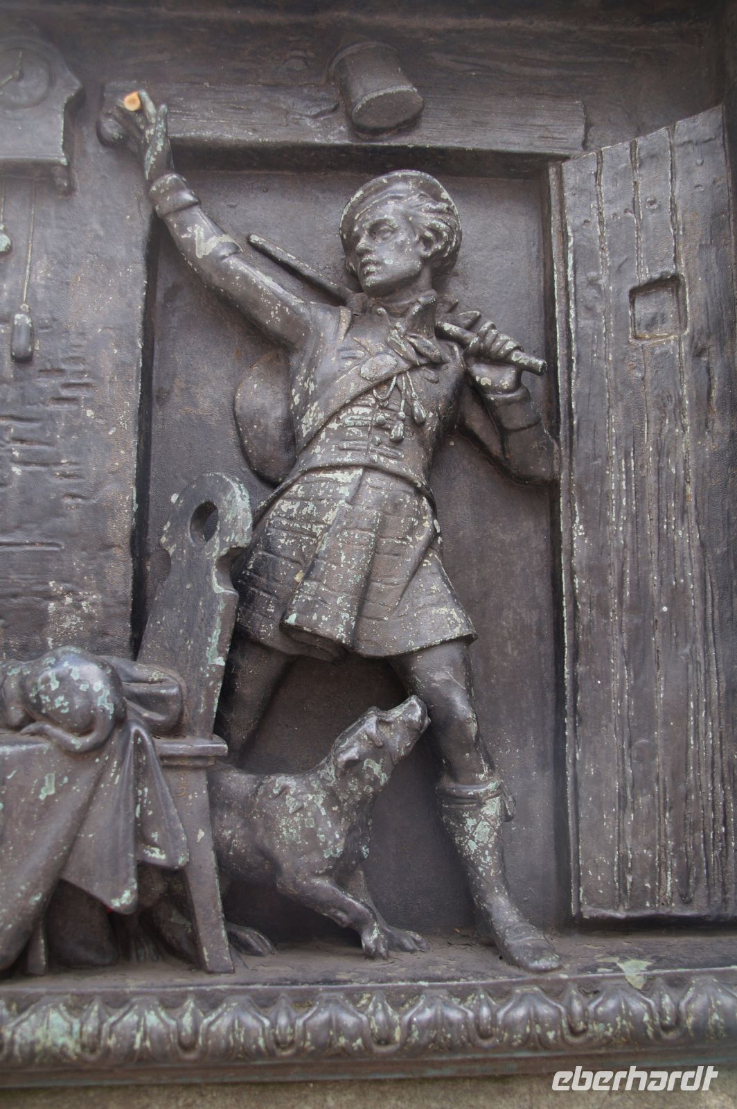 Tilmann, ein deutschen Theaterwissenschaftler, der vor zwanzig Jahren in Edinburgh ein oder zwei Semester verbracht hatte und der inzischen dauerhaft in seine Lieblingsstadt übergesiedelt ist, brachte uns die schottische Kapitale näher. Zunächst fuhren wir durch Newtown, am Amtssitz der schottischen Premierministerin Sturgeon vorbei. Newtown war nach der Union von England und Schottland gegründet worden, nachdem die reichen Adeligen und Bürger aus der Enge der überbevölkerten und engen, aber geschützen Altstadt aussiedeln konnten. Anstatt mit Angehörigen jeglicher Gesellschaftsschicht in engen Hochhäusern (die mittelalterlichen Häuser Edinburghs hatten bis zu zehn Stockwerken) zu leben, konnten sie sich jetzt in großzügig angelegten Bürgerhäusern ausbreiten, was auch Gestalten wie William Brodie anlockte, der tagsüber als Kunsttischler in den Bürgerhäusern arbeitete und nachts dort einstieg, um seine Spielschulden zu bezahlen. Brodie bot Stevensons Vorlage für seinen Roman über Dr. Jekyll und Mr. Hyde. Am Calton Hill stiegen wir aus: Tilman erklärte uns die Gebäude von Calton Hill und die Stadt von dort.
