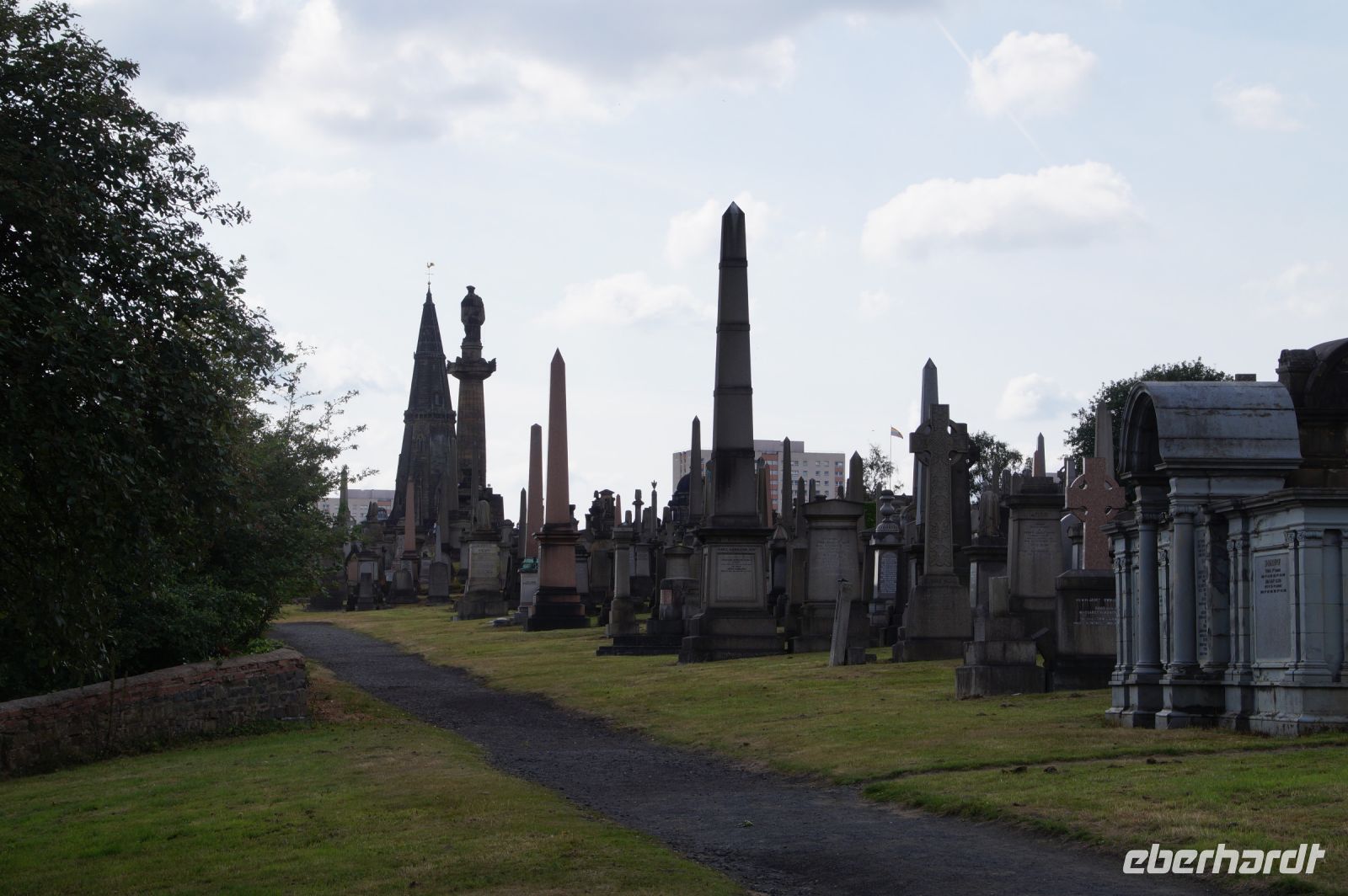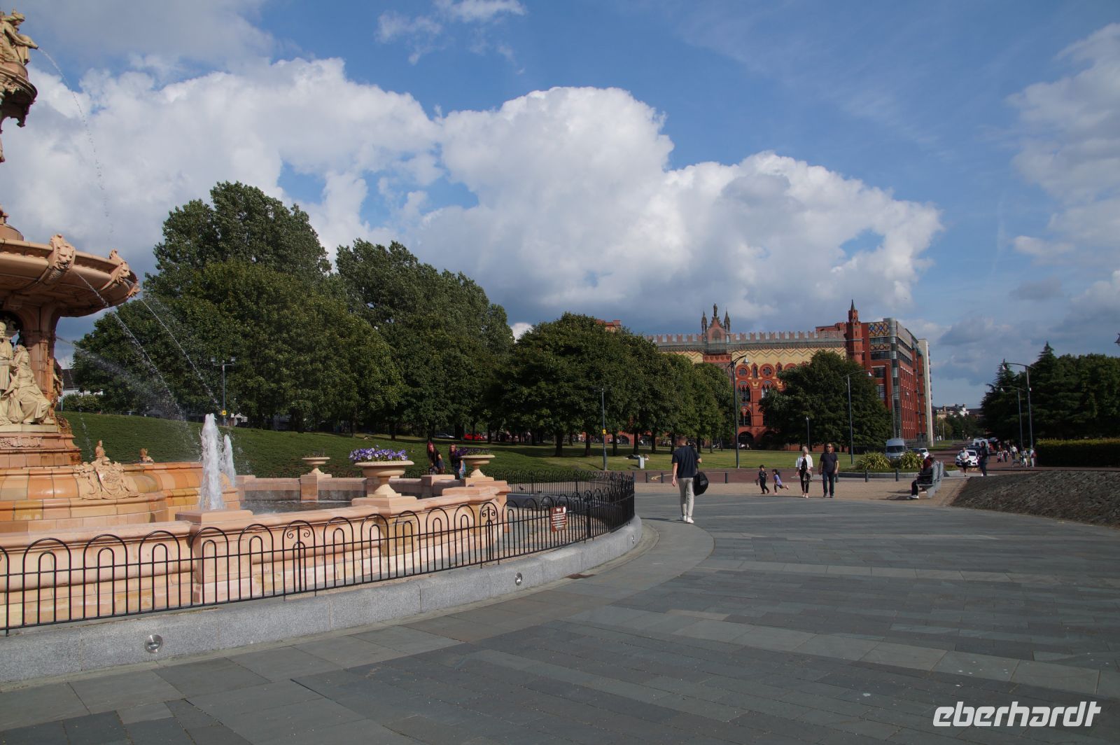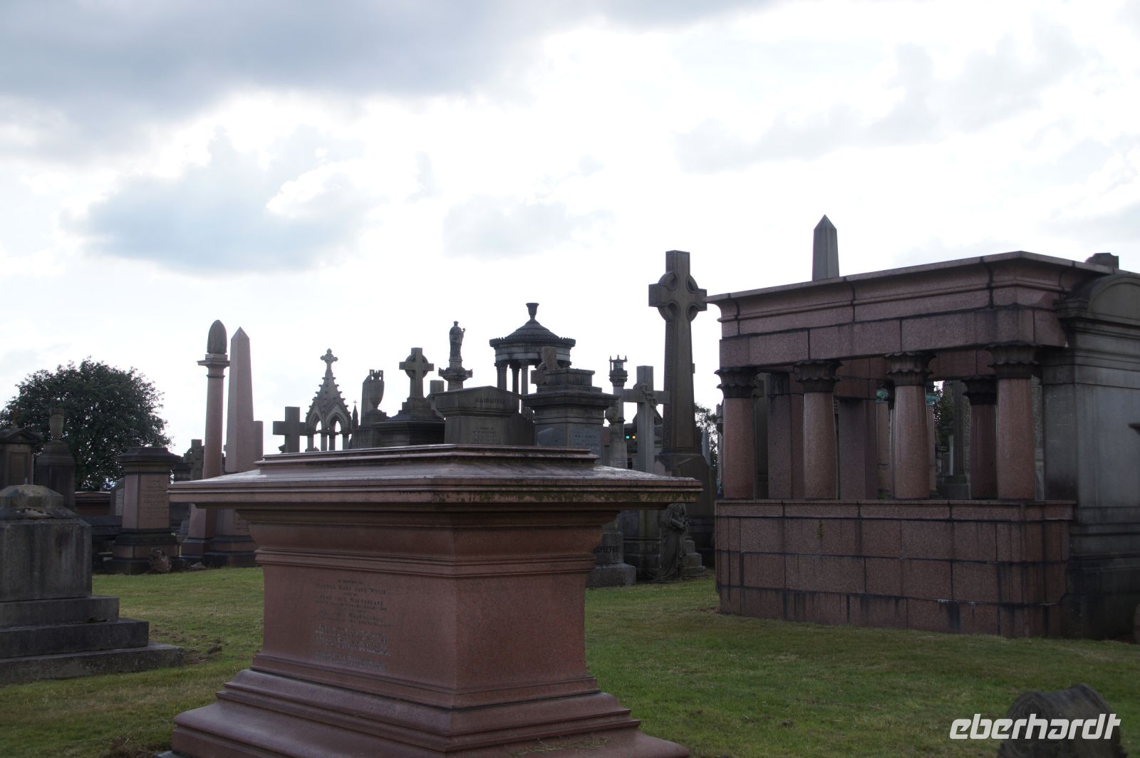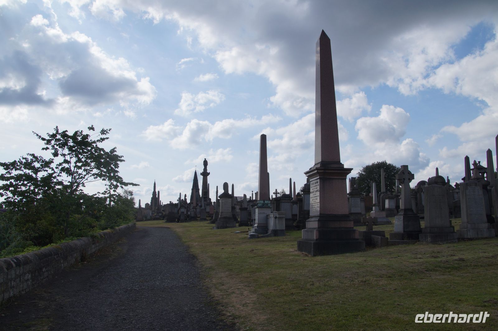 Dafür tobten wir uns dann ein wenig auf der Nekropolis aus, der Totenstadt hinter der Kathedrale, wo man mit der Nase einen leisen Hauch von Maische vernehmen konnte, der von der nahen Tennents-Brauerei ausging. Noch einen Abstecher zum Glasgow Green mit dem People's Palace und dem größten Keramikbrunnen des United Kingdom und Victoria entließ uns ins Hotel am Kelvingrove Park.