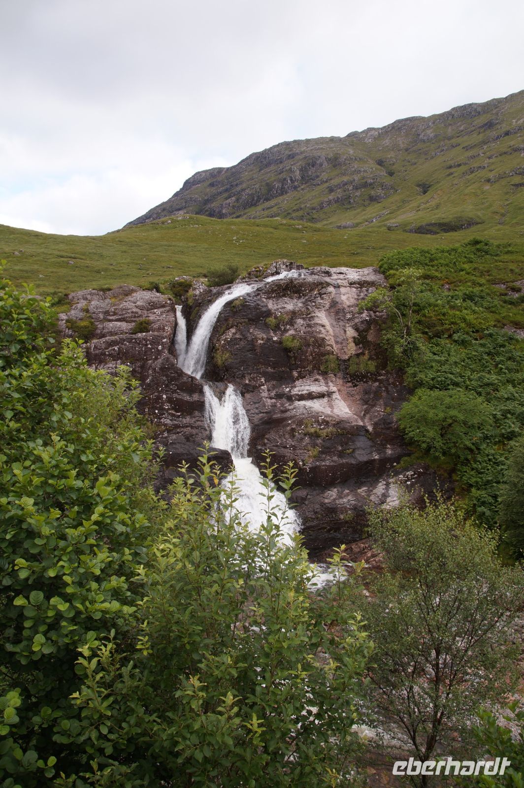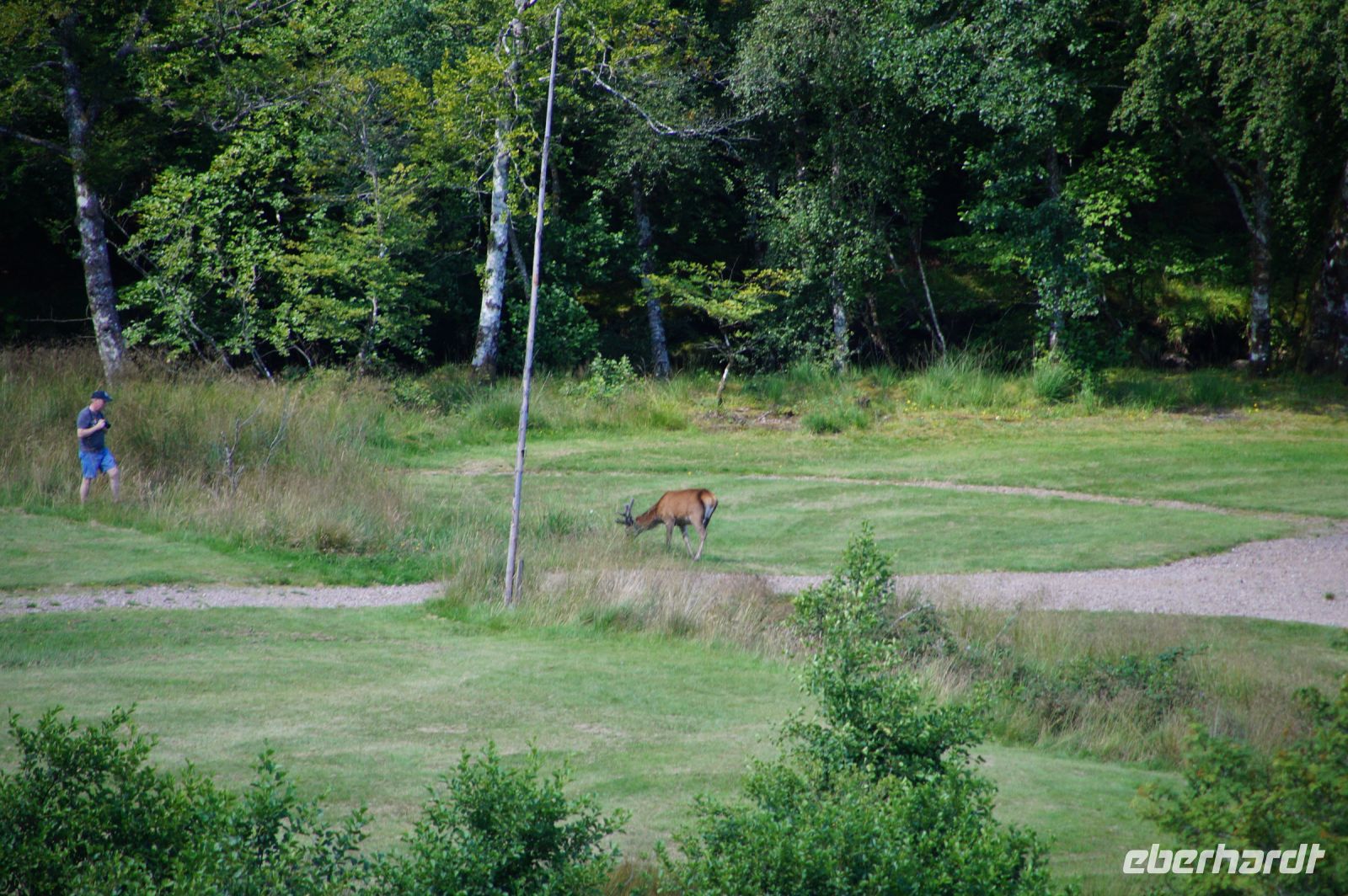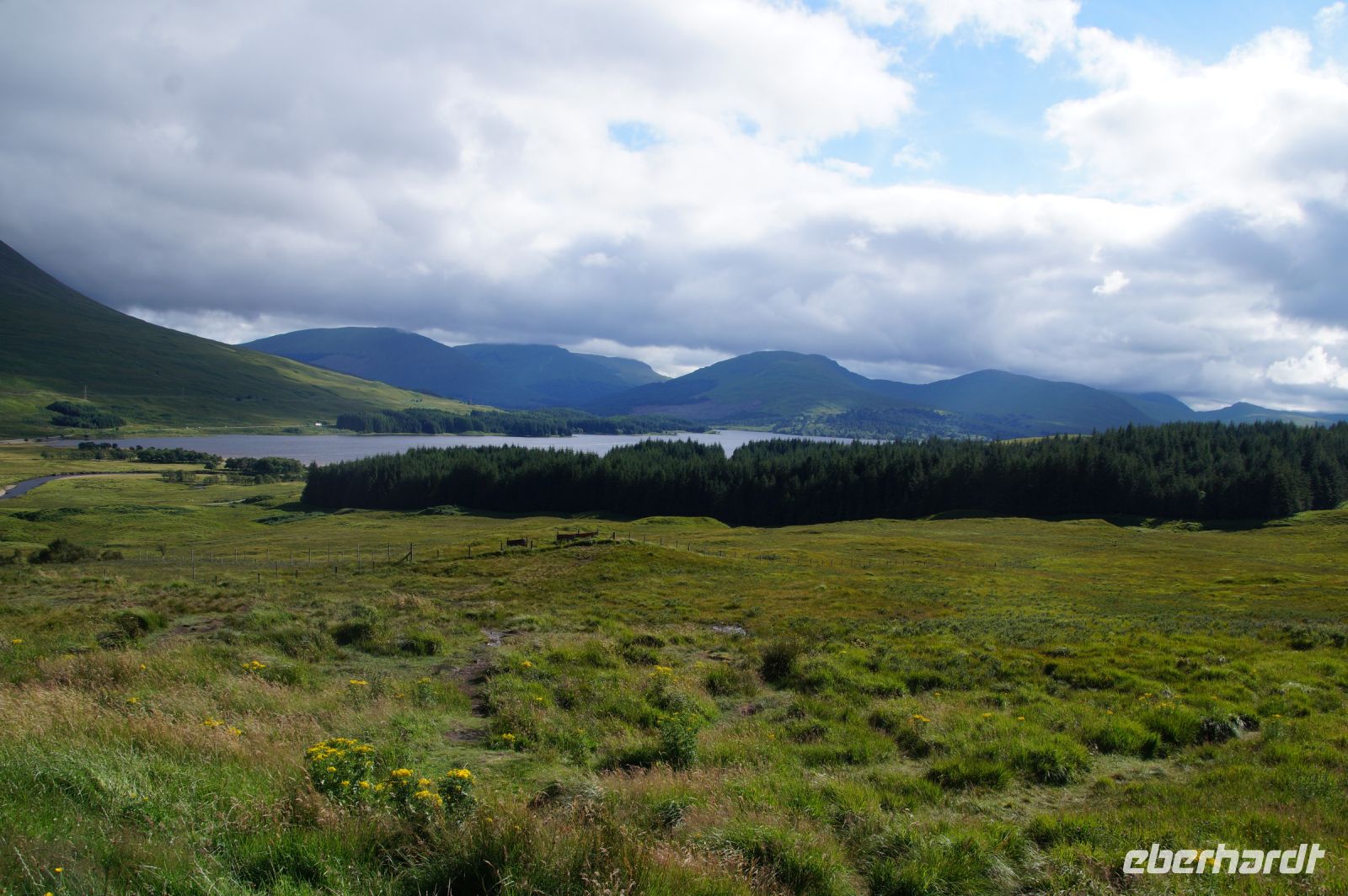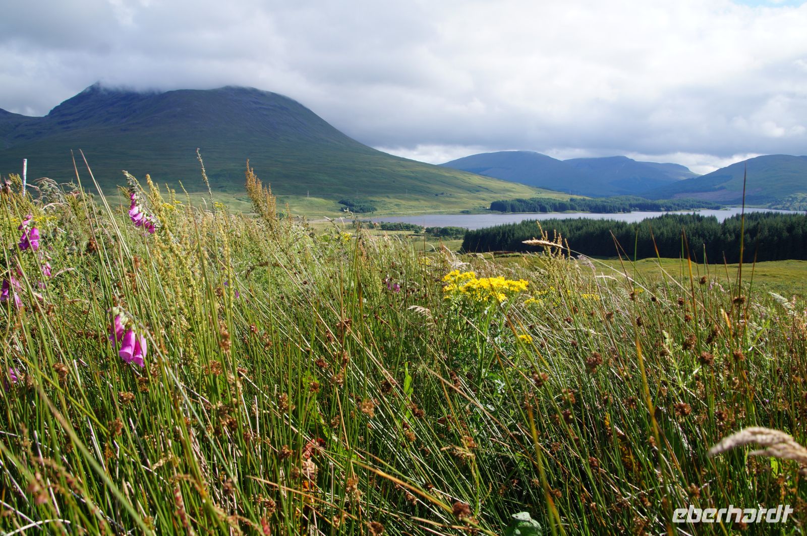 Über Loch Tull machten wir einen Halt und blickten von der Anhöhe (Loch Tulla View) noch einmal gen Süden, bevor wir ins Rannoch Moor fuhren. Bei einem Fotostopp hier fiel Gästen gleich auf, wie der Torfboden federte. Noch drei Fotostopps am bzw. im Glen Coe (an seinem Eingang, am Allt Lairig Eilde-Wasserfall und am Drei-Schwestern-Aussichtspunkt) und wir erreichten bald unser am Loch Linnhe, einem Meeresarm, gelegenes Hotel. Als Reiseleiter kann ich da nicht mitreden, da meine Aussicht nicht gerade berauschend war, aber die meisten Gäste hatten wohl eine atemberaubende Aussicht auf den spiegelglatten "Fjord".