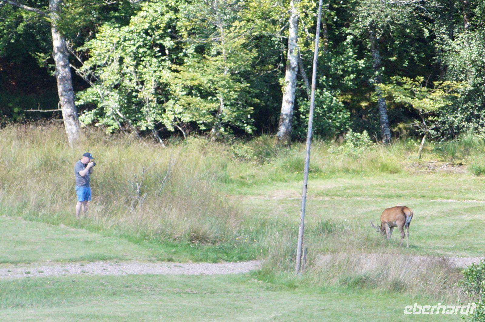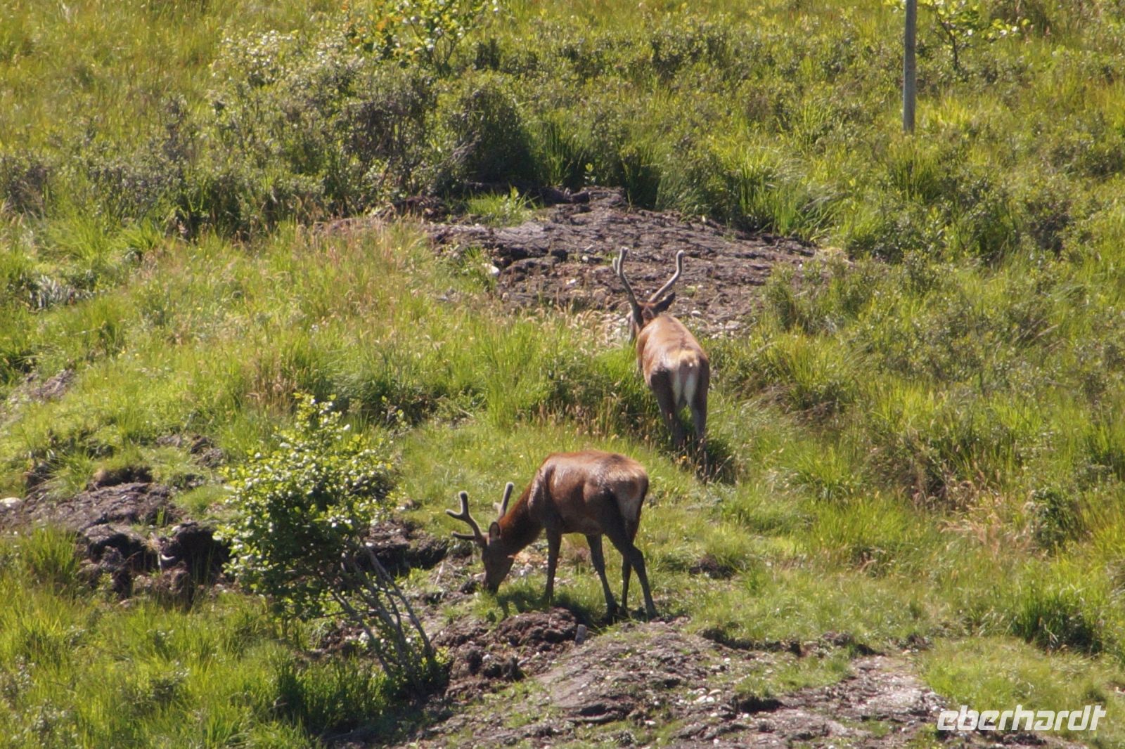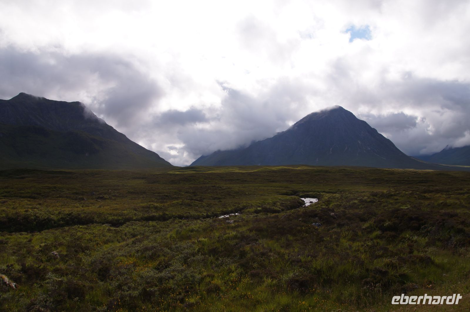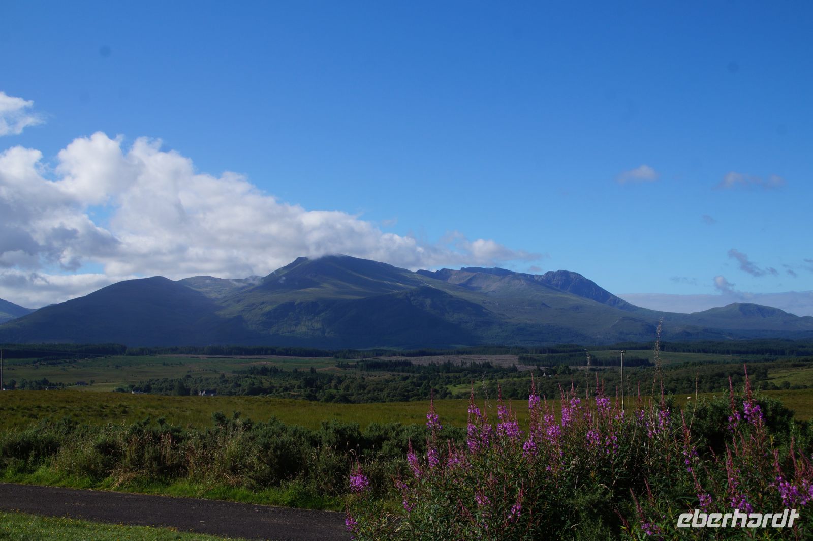 Über Loch Tull machten wir einen Halt und blickten von der Anhöhe (Loch Tulla View) noch einmal gen Süden, bevor wir ins Rannoch Moor fuhren. Bei einem Fotostopp hier fiel Gästen gleich auf, wie der Torfboden federte. Noch drei Fotostopps am bzw. im Glen Coe (an seinem Eingang, am Allt Lairig Eilde-Wasserfall und am Drei-Schwestern-Aussichtspunkt) und wir erreichten bald unser am Loch Linnhe, einem Meeresarm, gelegenes Hotel. Als Reiseleiter kann ich da nicht mitreden, da meine Aussicht nicht gerade berauschend war, aber die meisten Gäste hatten wohl eine atemberaubende Aussicht auf den spiegelglatten "Fjord".