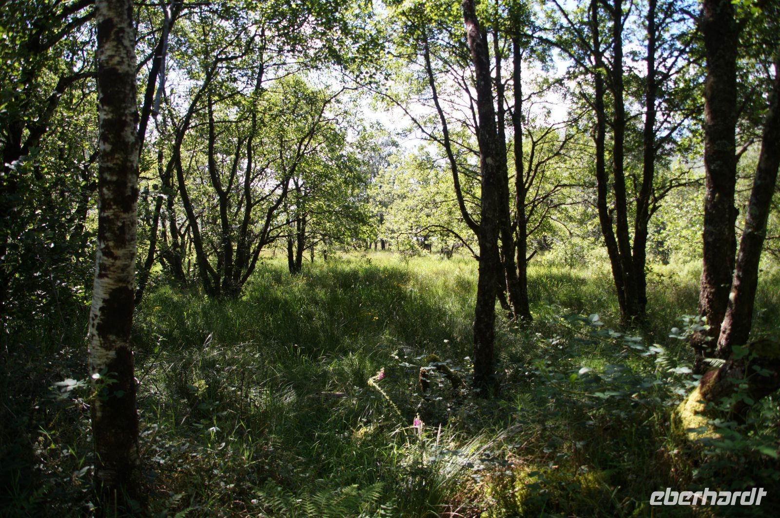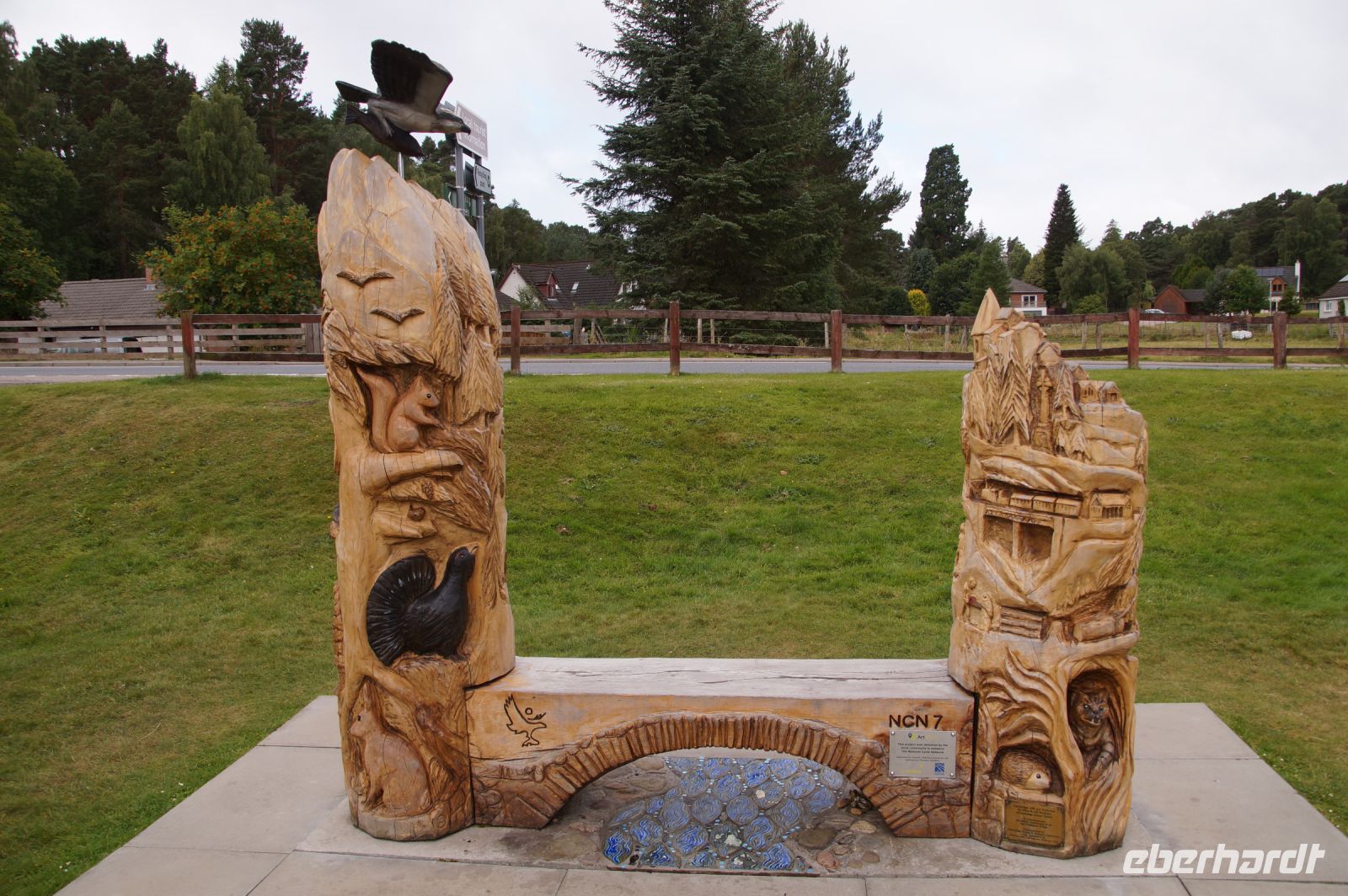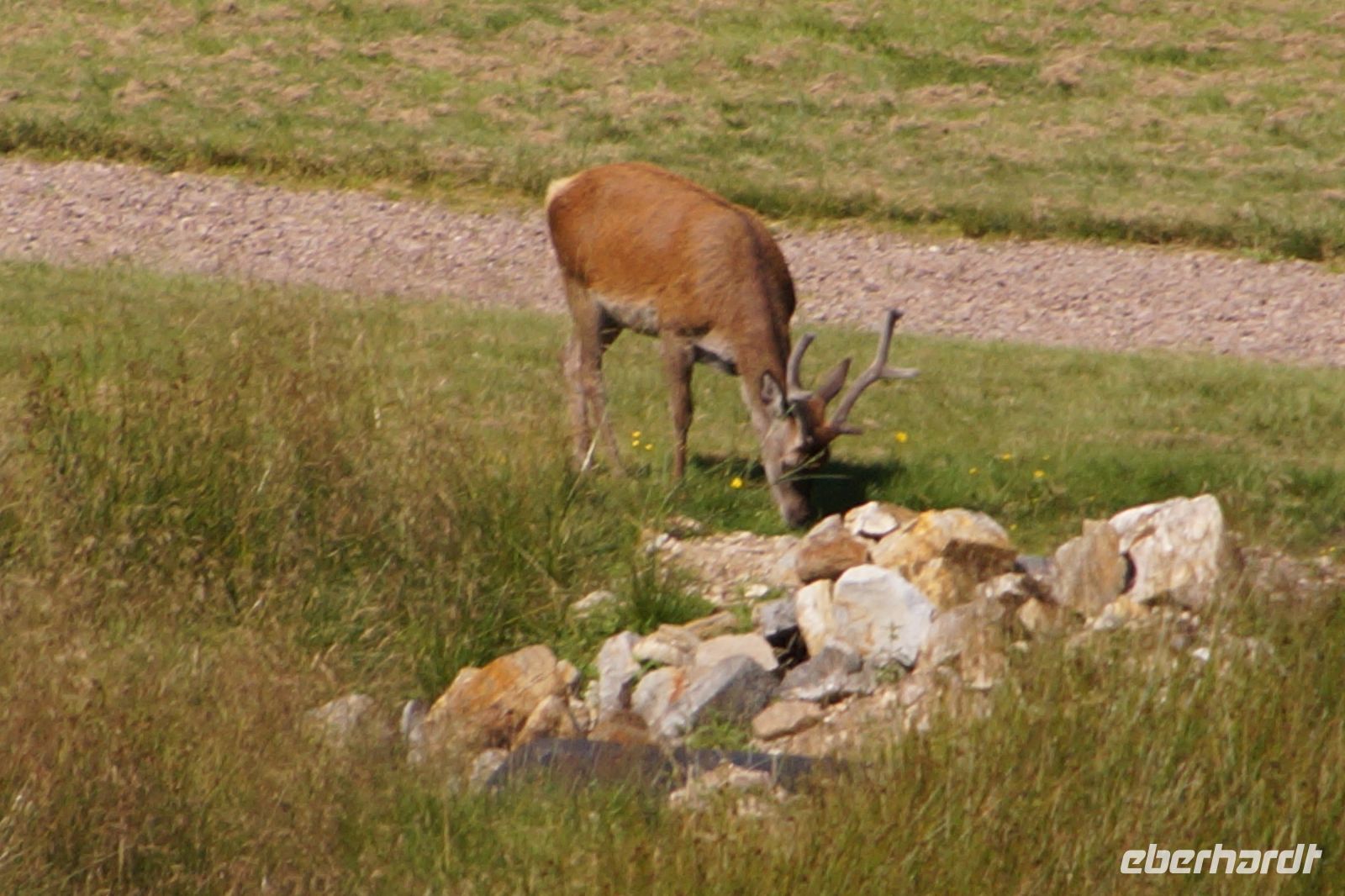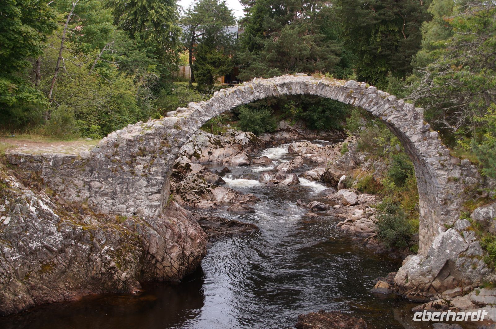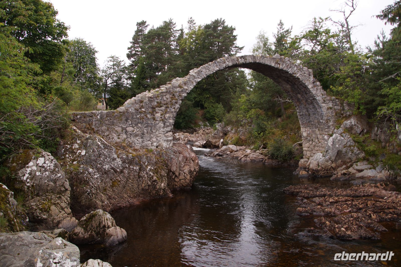 Zunächst aber hielten wir an der Horse Pack Bridge in Carrbridge. Dort probierten wir als Einstieg in den Tag einen Auchentoshin, einen Whisky, der wegen seiner Milde als "Frühstücks-Whisky" belächelt wird. Slaínte! ("ßlontscha")