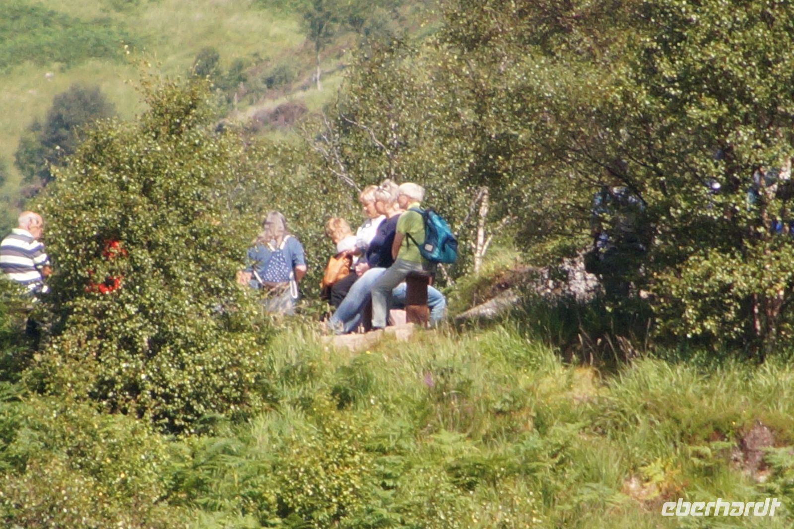 Während wir am Parkplatz auf das Eintrudeln der letzten Gruppenmitglieder warteten, vertrieb sich Gabi die Zeit mit Schaukeln auf dem Kinderspielplatz. Dann ging es endlich weiter zum Glenfinnan Monument und Viaduct.