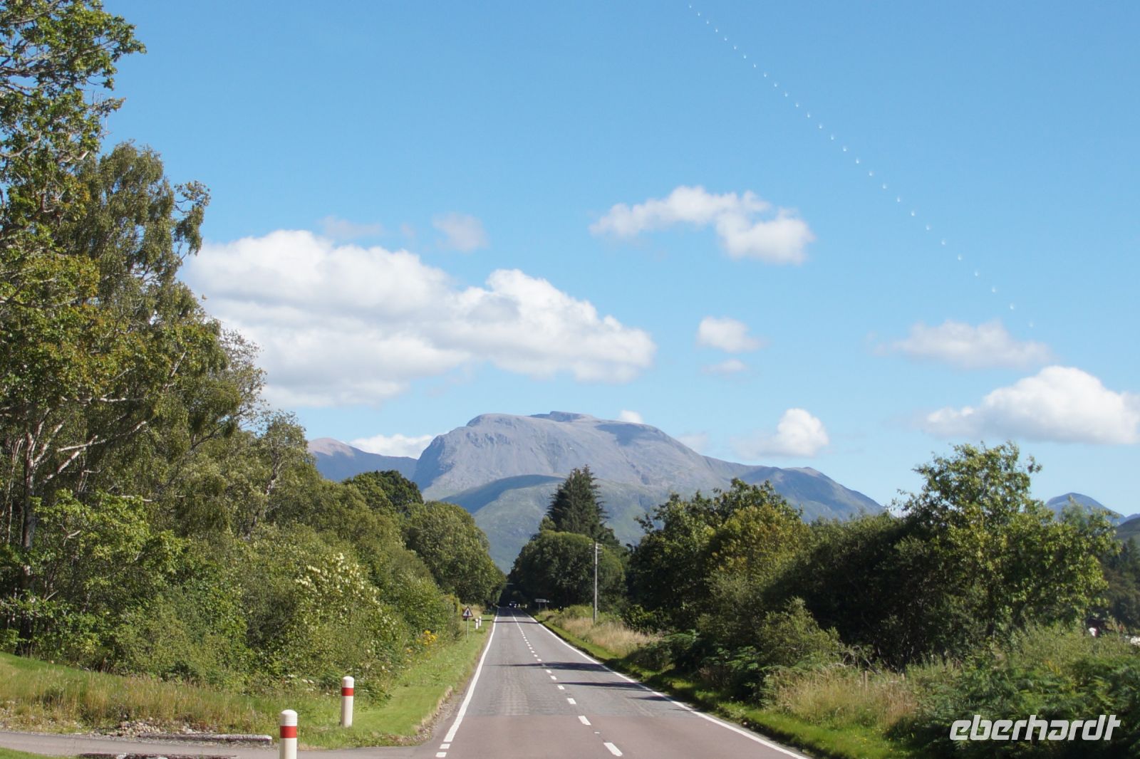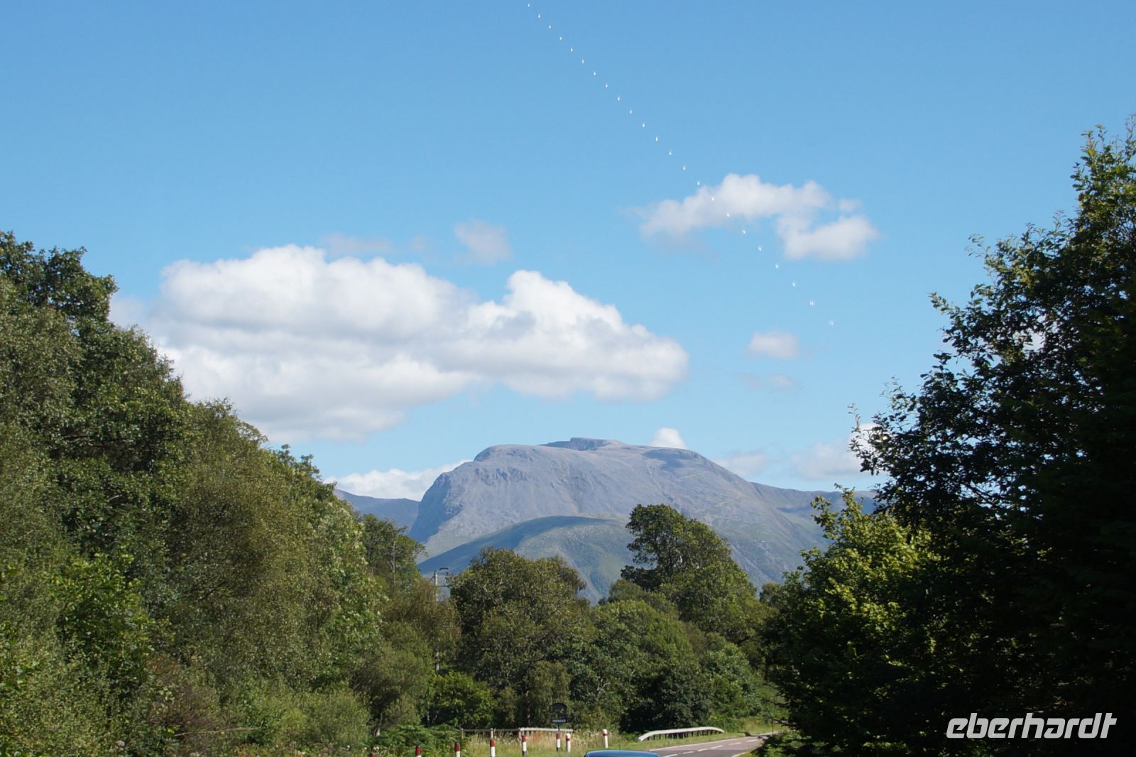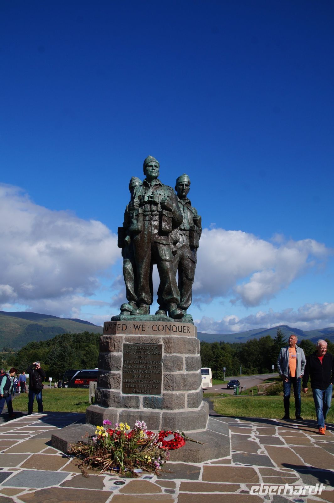 Unseren ersten Haltepunkt wählten wir am Commandos Monument, welches 1952 in Erinnerung an die Spezialeinheiten errichtet wurde, die im Hinterland von Fort William für Sondereinsätze im Zweiten Weltkrieg ausgebildet wurden. Von hier aus hat man auch einen guten Blick auf den Ben Nevis, sofern dieser nicht wolkenverhangen ist.