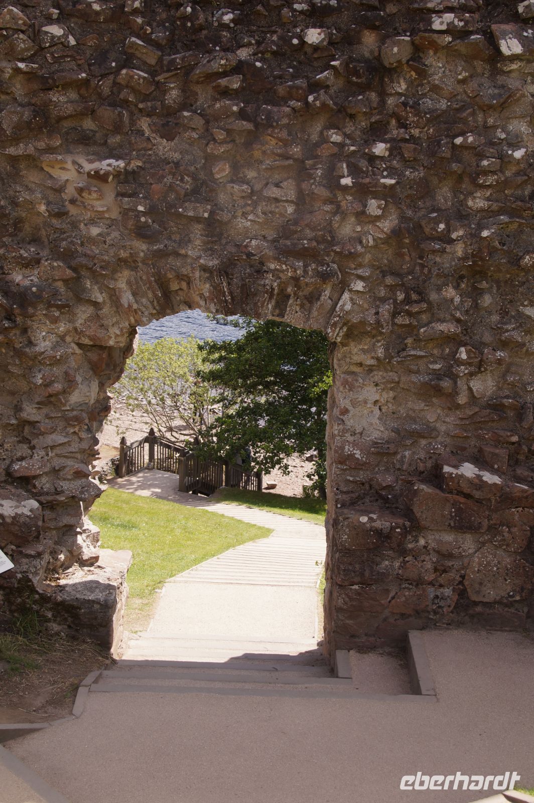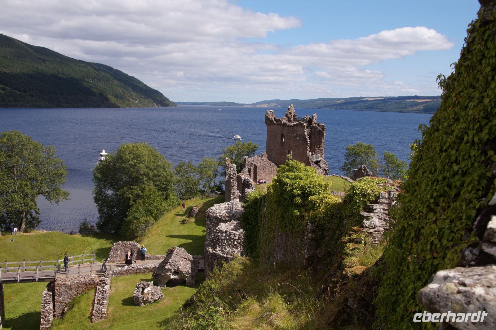 Urquhart Castle ist eine mittelalterliche Burg mit einer wechselhaften Geschichte, die womöglich über das Mittelalter hinaus in die Vergangenheit reicht und deren zumindest militärische Geschichte im 17. Jhdt. mit der Sprengung des Torhauses endet. Die Burg hatte zwei Zugänge, einen von der See- und einen von der Landseite. Eines ihrer jüngsten Bauwerke war ein Towerhaus.