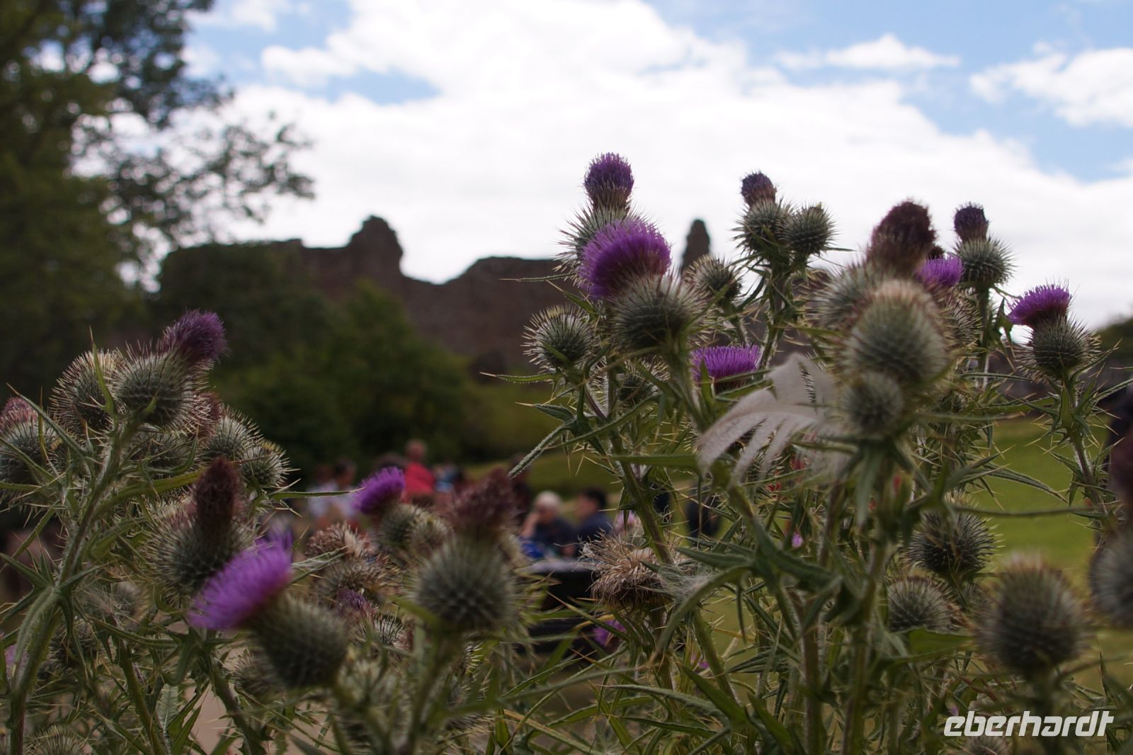 Wir besuchten Melrose Abbey, wo das Herz von Robert the Brus zu liegen kam. Robert the Brus hatte gegen interne Rivalen und gegen Edward II., den Sohn des Hammers of the Scots die schottische Unabhängigkeit und die schottische Krone erstritten, die Stuarts (< Stewart < Steward) waren eine Nebenlinie seiner Nachkommenschaft. Was Robert the Brus nie gelungen war, war nach Jerusalem zu pilgern (im Sinne der bewaffneten Pilgerfahrt, des Kreuzzugs). Daher bat er auf dem Sterbebett seinen Vertrauten, James Douglas (the Black Douglas), sein Herz nach Jerusalem zu bringen. Die schottische Kreuzfahrerschar um James Douglas schiffte sich in Flandern mit dem Herz des Königs im Gepäck in Richtung Heiliges Land ein, erfuhr aber in Spanien, dass der kastilische König gerade im andalusischen Córdoba einen Feldzug gegen das Königreich von Granada vorbereitete. Man belagerte die Burg von Teba, als ein muslimisches Entsatzheer von Málaga kam. Die Schotten, mit den maurischen Taktiken nicht vertraut, fielen auf eine Finte der Mauren (hit and run) herein und verfolgten die scheinbar flüchtenden Mauren, um sich plötzlich einer großen Heerschar gegenüber zu sehen. Die Kastilier hatten - vertraut mit der karr wa farr-Taktik - in ihren Positionen ausgeharrt. Von den schottischen Rittern soll angeblich keiner die Schlacht überlebt haben und das Herz des Königs kam zurück nach Schottland, wo es in Melrose bestattet worden war.
