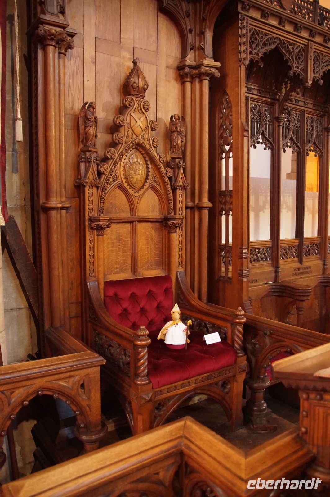Unser nächstes Ziel war der Scone Palace. Tahir, in Sachen „Einfahrt verboten“ manchmal etwas eigen, fuhr zunächst in den Park hinein, im dann festzustellen, dass das tatsächlich nicht der Weg zum Besucherparkplatz war. Also kehrtgemacht und die zwei Kilometer zum offiziellen Besuchereingang gefahren. Das Tor war schon ziemlich schmal, aber der Bus passte hindurch. In den ersten beiden Sälen bekamen wir Erklärungen zum Schloss und seinem Inventar eine dritte angekündigte Erklärung erhielten wir nicht und erschlossen uns die Räume selbst. Der Scone Palace imitiert zwar das Aussehen einer mittelalterlichen Burg, ist aber tatsächlich noch nicht so alt, wobei seine Erbauer sich bei der Raumgestaltung an den Ruinen der Abtei, die hier gelegen hatte, orientierten und so teilweise sogar ebenerdige Fußböden erhielten.