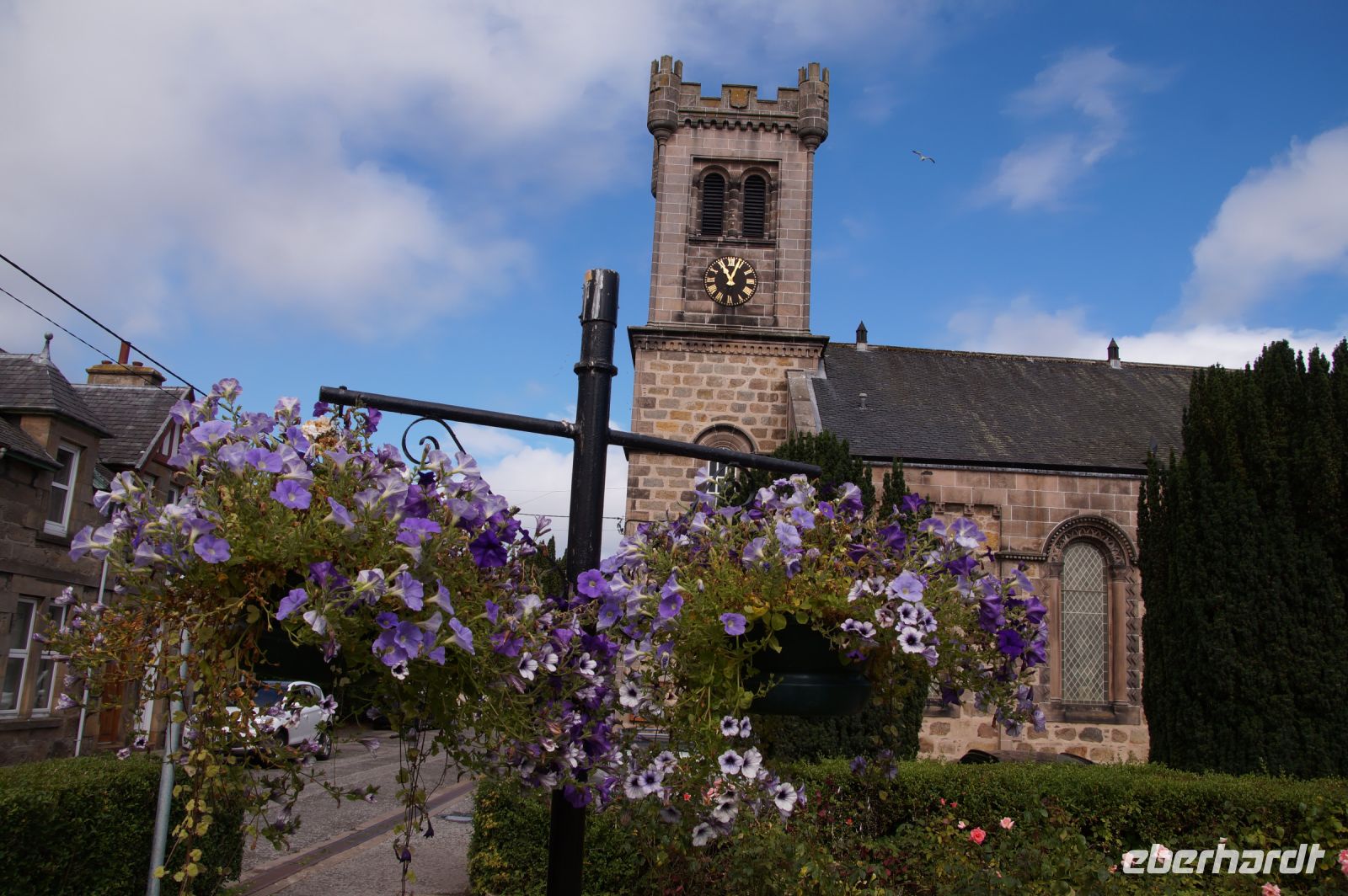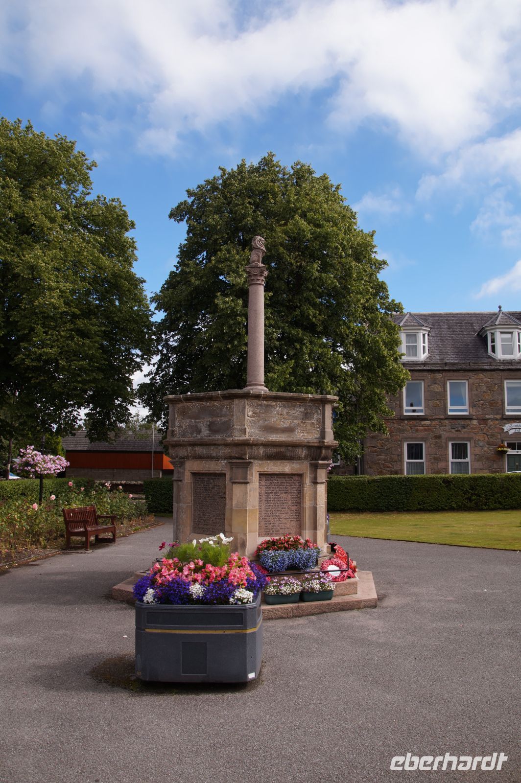 Am früheren Leprosorium (Spital) vorbei fuhren wir zum King’s College. Diese mittelalterliche Universität war vom Bischof Willam Elphinstone 1495 gegründet worden, dessen Kenotaph auf der Wiese vor der zugehörigen Kapelle stand. James IV. wurde zu ihrem wichtigsten Geldgeber und ca. 20 Jahre nach ihrer Gründung nahm die Universität, die drittälteste Schottlands und sechsälteste der britischen Hauptinsel ihren Betrieb auf.