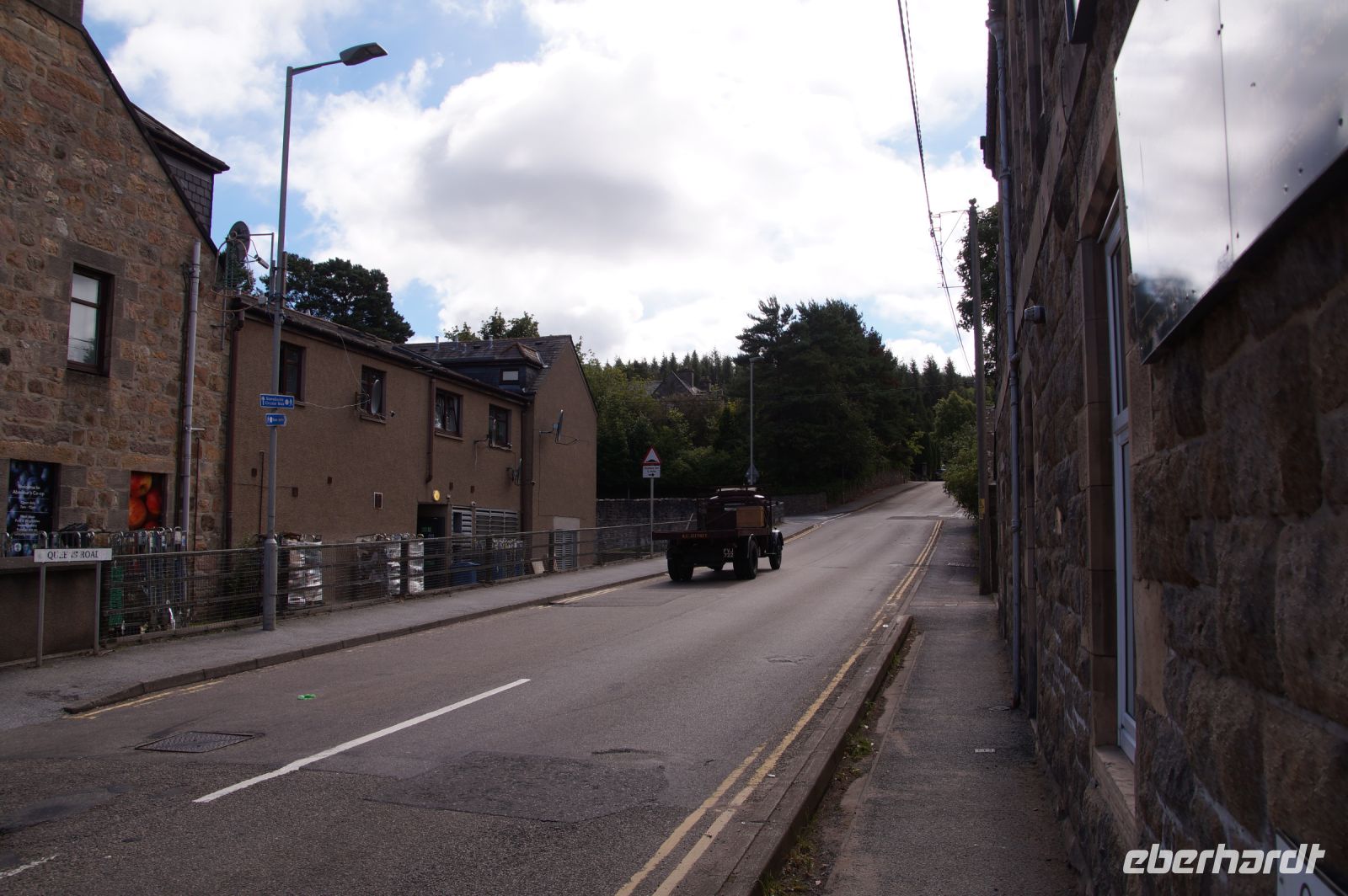 Dann fuhren wir weiter. Da wir gut in der Zeit lagen, machten wir noch einen Halt in Charlestown of Aberlour und taten uns ein wenig in diesem Örtchen um. Dann ging's weiter. Mit zwanzig Minuten Vorlauf, um 12:10 Uhr, erreichten wir die Glen Grant-Destillery. Ja Pustekuchen! "Wir haben euch um 10:00 Uhr erwartet!" Stress bei den Mitarbeitern im Visitor Center der Whisky-Destille. Nun mussten wir uns in drei statt zwei Gruppen splitten und den Whisky gab es statt zur Belohnung nach der Tour bereits zur Einstimmung vor der Tour. Zweierlei Whiskyse gab es, um genau zu sein.