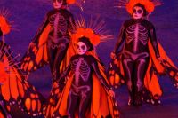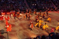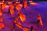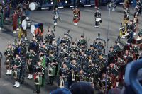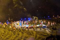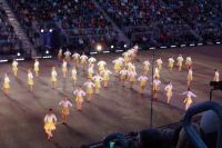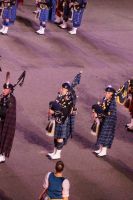 Nach einem amerikanischen Musikchor stürmten aztekische Krieger den Platz und die Wanderung der Monarchfalter wurde dargestellt, wobei jeder Monarchfalter auch gleichzeitig den Tod bzw. - im Spanischen ist der Tod feminin, "la muerte" - _die_ Tod darstellte. Auch Evergreens des RMT, wie das amerikanische Wachbataillon, welches mit seinen Gewehren mit aufgepflanzten Bajonetten jonglierte oder die Schweizer Trommler von Top Secret waren wieder da. Und natürlich jeden Menge schottischer Hochlandregimenter in verschiedenen Clanfarben, mit Kilt und Plaid und Bärenfellmütze, Trophäen aus Indien und Afrika Umhänge aus Tiger-, Löwen und Leopardenfell (wobei man ja hofft, dass diese huete künstlich hergestellt sind), trommelnd und dudelsackspielend. Eine mexikanische Bigband gab ihr Bestes und die schottischen Tänzerinnen (überwiegend) und Tänzer (vereinzelt) übten sich in Synchronspringen. Auch die Lichtshow auf den Mauern von Edinburgh Castle war mal wieder rechht stimmig gelungen.