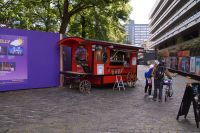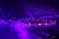 Der Einlass lief dieses Jahr erstaunlich schnell. Kaum standen wir in der Schlange, waren wir auch schon im Innenbereich, bereit unsere Sitzplätze einzunehmen. Nur was die Getränke anbelangte, so konnten nur diejenigen welche erwerben, welche die PIN ihrer Kreditkarte parat hatten, ohne PIN lief nichts. Aber gut, eine Dose Innish & Gun's (wir hatten ja schon gelernt, dass man in Großbritannien ein anderes Verhältnis zu Getränkedosen hat, als in Deutschland), kostete auch 6 Pfund, also ein recht stolzer Preis, der etwa 7 Euro entpricht. Auch Wein oder Prosecco wurde in denselben Behältnissen gereicht.
