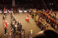 Das Ende der Veranstaltung läutete wieder der lonesome Piper, der einsame Dudelsackspieler von den Zinnen der Burg aus ein. Ein letztes Mal defilierte die ganze Mannschaft, von Feuerwerk begleitet, an den Zuschauerrängen vorbei. Mit britischer Geduld (Queuing) leerte sich das "Stadion".