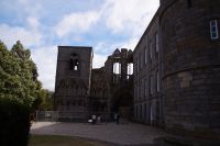 Zunächst aber waren wir zu früh dort. Nun ja... wir hatten nur die zwei Termine heute gehabt und viele Gäste wollten den Nachmittag in Edinburgh beim Fringe, Sightseeing oder Shopping verbringen. Aber, so sagte uns der Verantwortliche, er könne uns nicht vor 15:00 reinlassen. Uff! Wir spazierten einmal um das Gelände herum (was wir sonst wahrscheinlich nicht getan hätten). Einige der Gruppe waren schon drauf und dran, ohne die berühmte Kapelle gesehen zu haben, zurück nach Edinburgh zu fahren, aber Magdalena, Doreen und Karin wollten sie unbedingt sehen. Karin ging kurz entschlossen zum Verantwortlichen und erläuterte ihm ihr Leid. Sie erweichte damit sein Herz und wir durften bereits um 14:00 Uhr hinein. Bis dahin war es nicht mehr lang und so warteten wir noch. Ich hatte den Eindruck, dass die meisten ganz froh waren, dass wir doch noch drinnen waren, denn die Kapelle ist doch ziemlich sehenswert.