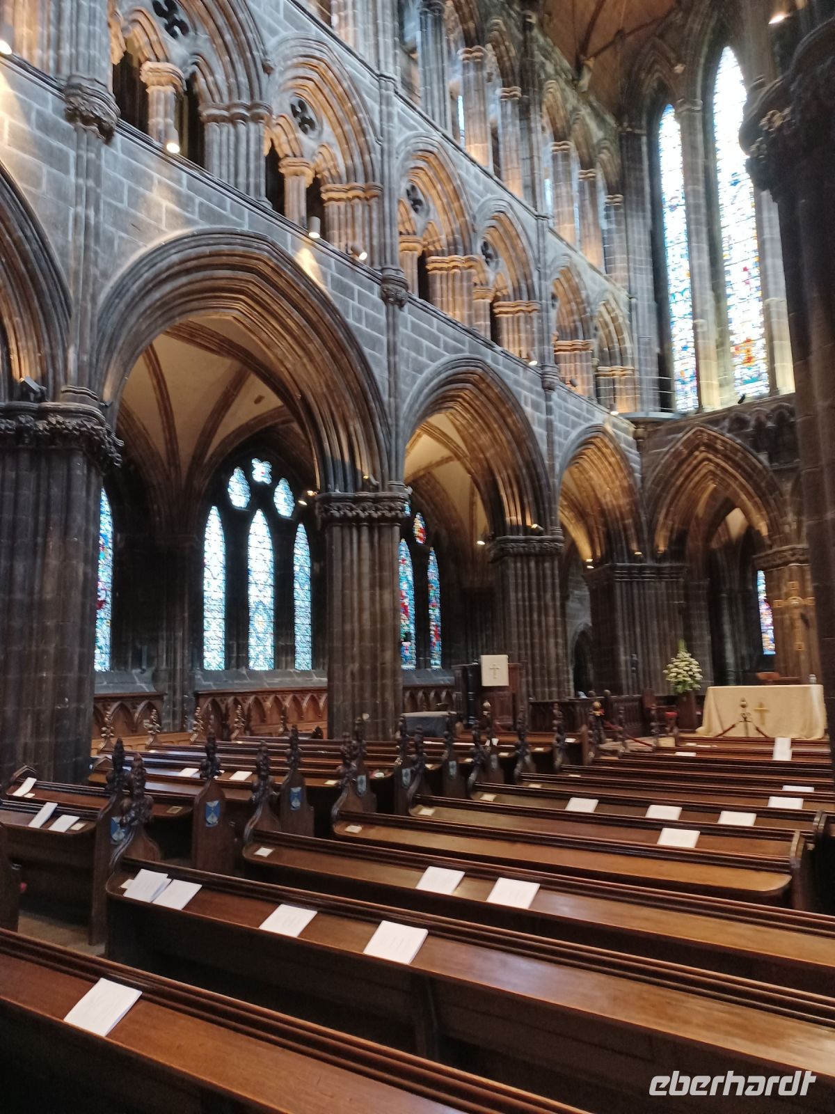Es geht los. Heute wollen wir nach Glasgow in die größte Stadt Schottlands fliegen. Am Flughafen in Frankfurt/Main trifft sich die Reisegruppe, die sich schnell miteinander bekannt macht und sich auf die bevorstehenden Tage freut. Pünktlich fliegen wir nach Glasgow ab und dort wartet schon ein örtlicher Bus auf unsere Reisegruppe. Unsere Rundreise in Schottland auf den Spuren von alten Mythen und Legenden beginnt mit einer Stadtrundfahrt. Die einstige Industrie- und Hafenstadt erinnert kaum noch mit irgendetwas an das alte, verschmutzte und von Nebel und Kohlenrauch durchzogene Glasgow mit dem schlechten Ruf. Heute gehört sie zu den modernsten und häufigsten besuchten aller schottischen Städte. Daran haben auch die vielen Verschönerungen und Neuerungen seit der Vorbereitung auf die Funktion als europäische Kulturhauptstadt 1990 ihren Anteil. Wir sehen nicht nur im Stadtzentrum den George Square mit dem historisierenden Rathaus und Schottlands größten Kirchen-bau die Kathedrale St Mungo sowie zahlreiche Museen. Das umgestaltete Hafenviertel mit dem weltgrößten Hafenkran und dem modernen Kon-gresszentrum, das die Einheimischen „Gürteltier“ nennen und Schottlands größtes „Science Center“. Am frühen Abend beziehen wir unser Hotel in Glasgow und essen gemeinsam zu Abend. Nach einem abendlichen Spaziergang durch das in Sonne getauchte Stadtzentrum besuchen wir den „Horse Shoe - Pub“, der für die längste Theke im Vereinigten Königreich bekannt ist. Natürlich stoßen wir noch mit einem Pint auf die kommenden spannenden Reisetage an. Zufrieden beschließen wir den ersten erlebnisreichen Tag.