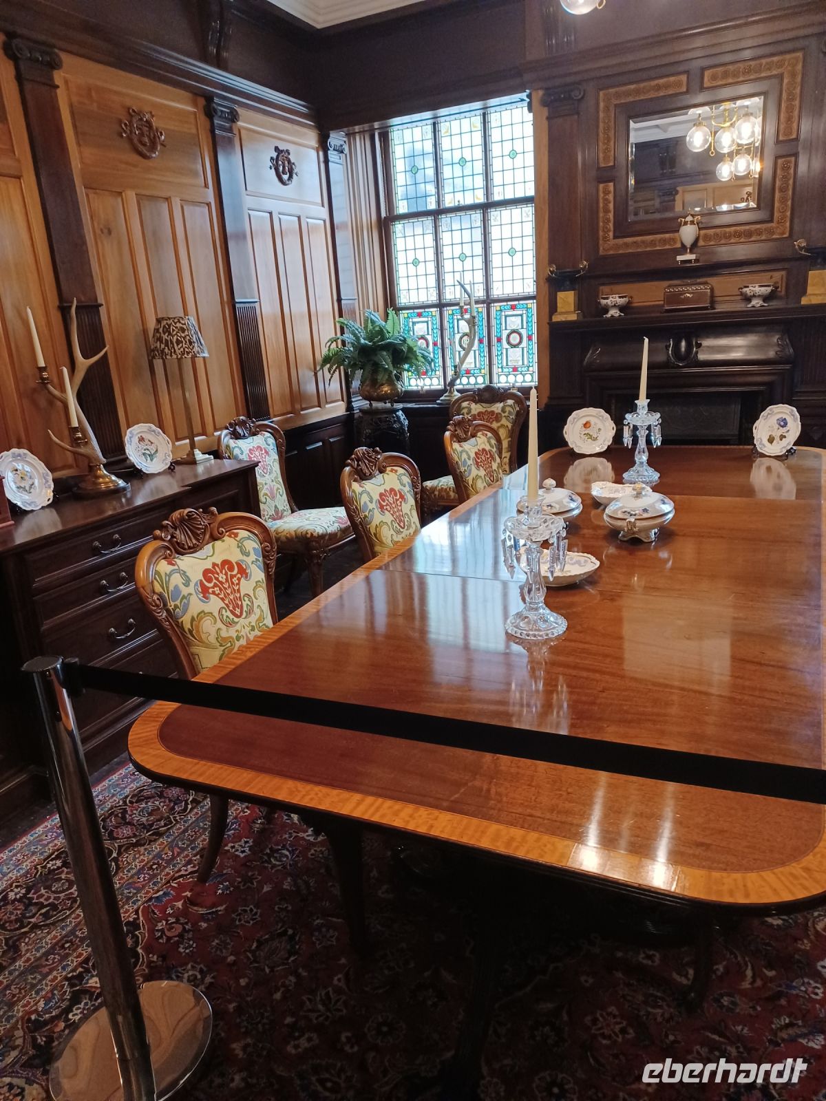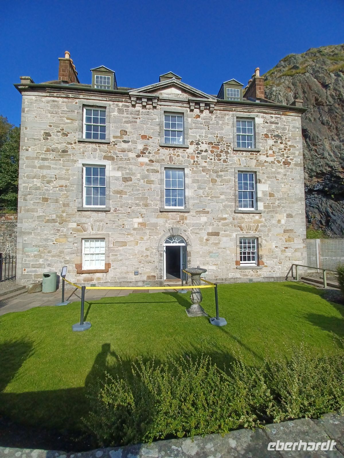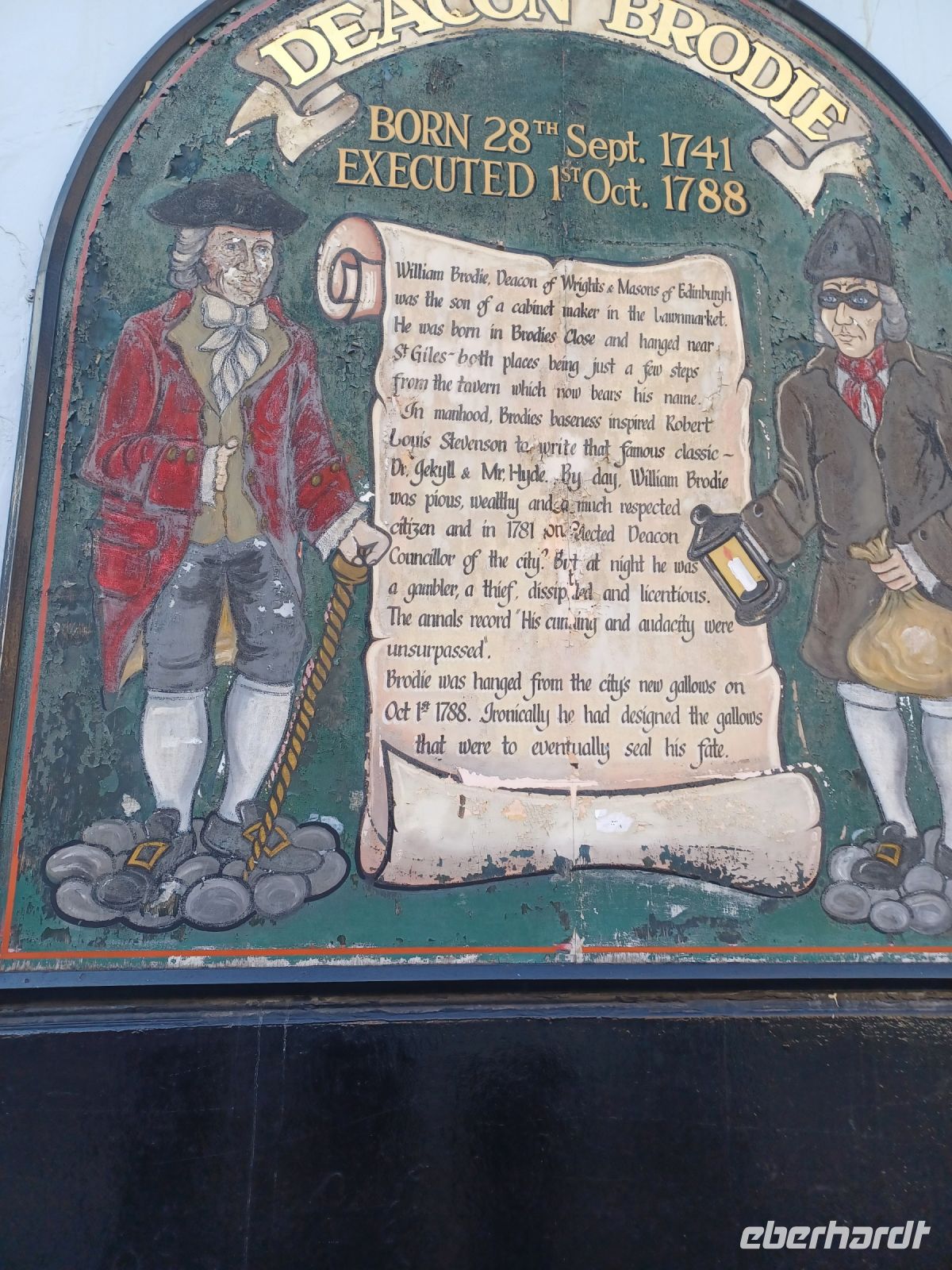 Krönungsthron eingearbeitet wurde. Zur Krönung von Charles III. im Mai 2023 wurde der Stein nach London ausgeliehen und befindet sich wieder im Edingburgh Castle. Am späten Nachmittag verabschieden wir uns vom Scone Palace und fahren nun zum letzten Zielort der Rund-reise durch das schöne Schottland – Edinburgh. Wir erreichen die Hauptstadt der Schotten am Firth of Forth, der durch seine ihn überquerenden 3 Brücken ein herrliches Fotomotiv bietet. Deshalb machen wir vor dem Einchecken im Hotel einen kleinen Besuch im Stadtteil Queensferry, wo sich tolle Fotomotive bieten und wir den kleinen Pub„Hawes Inn“ besuchen. Hier schrieb der in Edinburgh geborene schottische Nationaldichter, Robert Lous Stevenson, seine Reiseliteratur und die weltweit bekannten „Geschichten von Dr. Jekyll und Mr. Hyde“ bevor er nach Samoa aus-wanderte und dort starb. Am Abend erreichen wir unser Hotel im Stadtteil Haymarket und gehen nach dem Einchecken zu einem hübschen Pub, um die dortige Atmosphäre und das Dinner zu genießen. Wiederum hatten wir heute einen tollen Tag und freuen uns, dass wir nun 3 Nächte in dem schönen Hotel schlafen können.