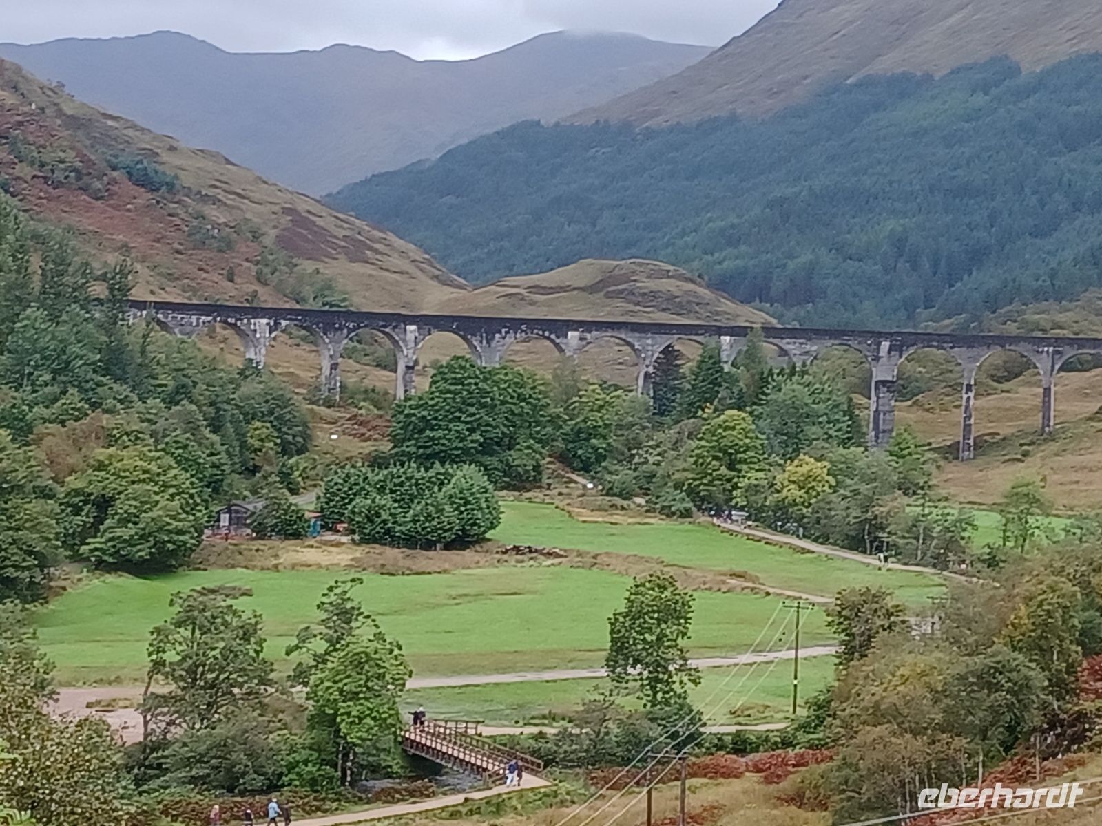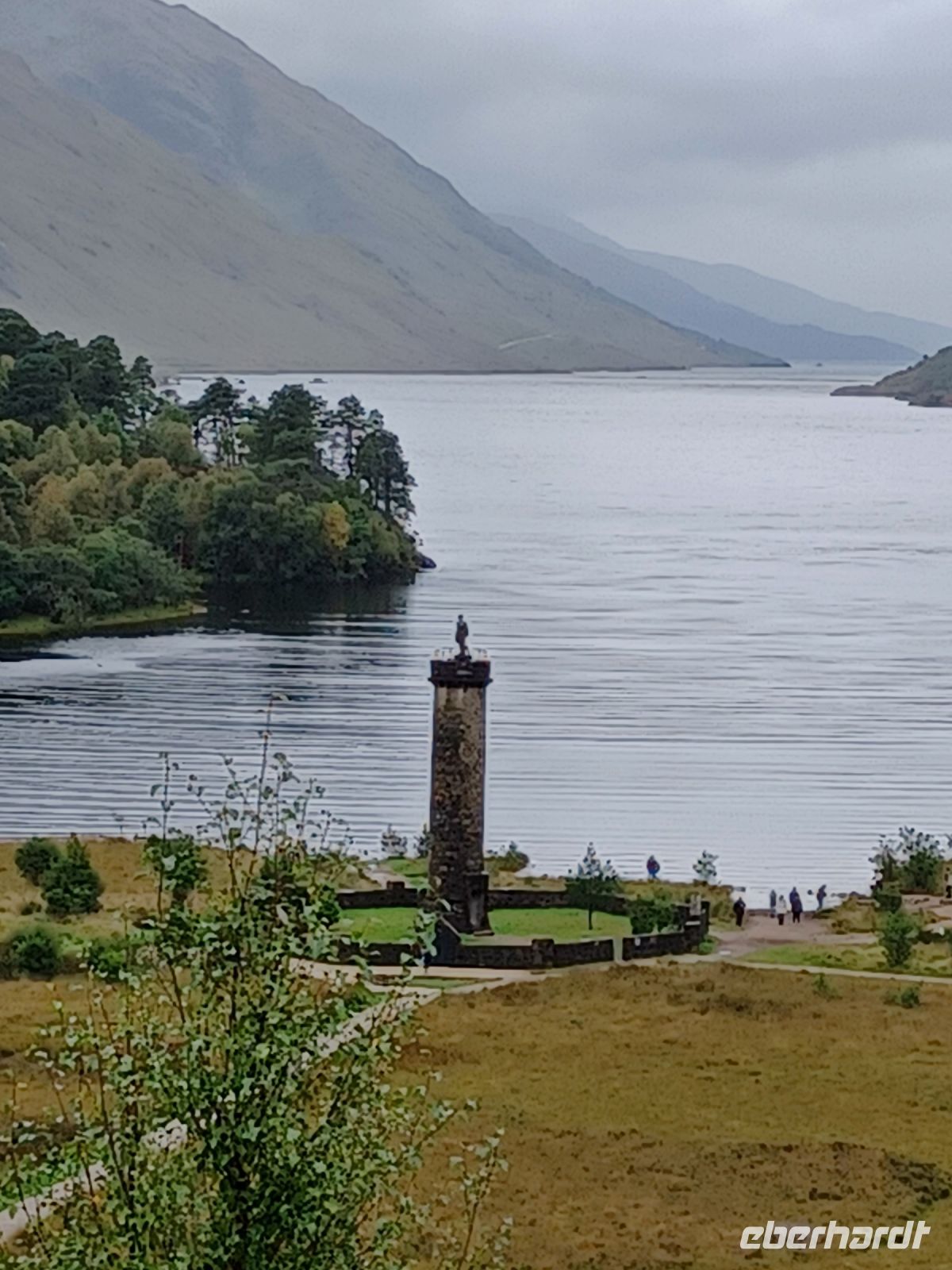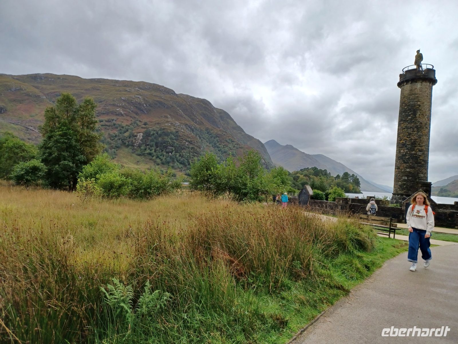Leider lässt sich die Sonne heute nicht blicken. Wir wollen mit der Seilbahn auf die Ben Nevis Range fahren und starten voller Neugier in den neuen Tag. An der Basisstation der Seilbahnstation müssen wir etwas warten bevor die Kabinen für die Auffahrt zur Verfügung stehen. Starke Windböen verhindern eine pünktliche Abfahrt. Endlich geht es los und wir erreichen die Bergstation. Trotz Regen machen sich einige Gäste auf einen kleinen Spaziergang zum nahegelegenen Aussichtspunkt. Nachher nehmen wir wieder die Gondeln bergab und haben doch noch einen Blick auf das Tal, wo sich der Nebel langsam lichtet. Unser Fahrer Robert bringt uns zurück nach Fort William, wo wir die Mittagszeit ver-bringen. Nachher können wir den Nachmittag individuell gestalten. Doch gern nehmen die meisten Gäste das Angebot an, nach Glenfinnan zu fahren. Hier laufen wir zum Monument am Loch Shiel, das an Charles Edward Stuart (bekannt als „Bonnie Prince Charlie“) erinnern soll, der an dieser Stelle 1746 von Frankreich aus dem Exil kommend, die Vertreter der Clans sammelte. Er wollte den Thron der Stuarts zurückerobern, den seine Vorfahren an die Engländer verloren hatten. Am nächsten Tag werden wir das Schlachtfeld dieses Kampfes bei Culloden besuchen. Heute stehen wir aber an dem Ort, wo er ankam und auch nach der Schlacht das Land wieder verließ. Das schottische Volkslied „My Bonnie is over the ocean“ singen wir gemeinsam an diesem historischen Ort. Gegenüber können wir ein Eisenbahnviaduct von einem kleinen Aussichtspunkt sehen. Dieses Viaduct mit seinen 21 Bögen wurde durch die Filme über Harry Potter weltberühmt. Der Jacobite Dampfzug, der Harry zur Zauber-schule nach Hogwarts bringt, überquert dieses Viaduct bei Glenfinnan. Nach so schönen Momenten an diesem Tag, versuchen wir nun auch noch in Mallaig, dem Ausgangsbahnhof des Zuges, Tickets für die Fahrt nach Fort William zu bekommen. Wir haben großes Glück und die meisten Gäste nehmen den Zug, fahren über das vorher fotografierte Viaduct. Robert bringt die anderen Gäste sicher zurück zum Hotel, wo wir uns alle beim Dinner wiedersehen und über die Erlebnisse des Tages austauschen.