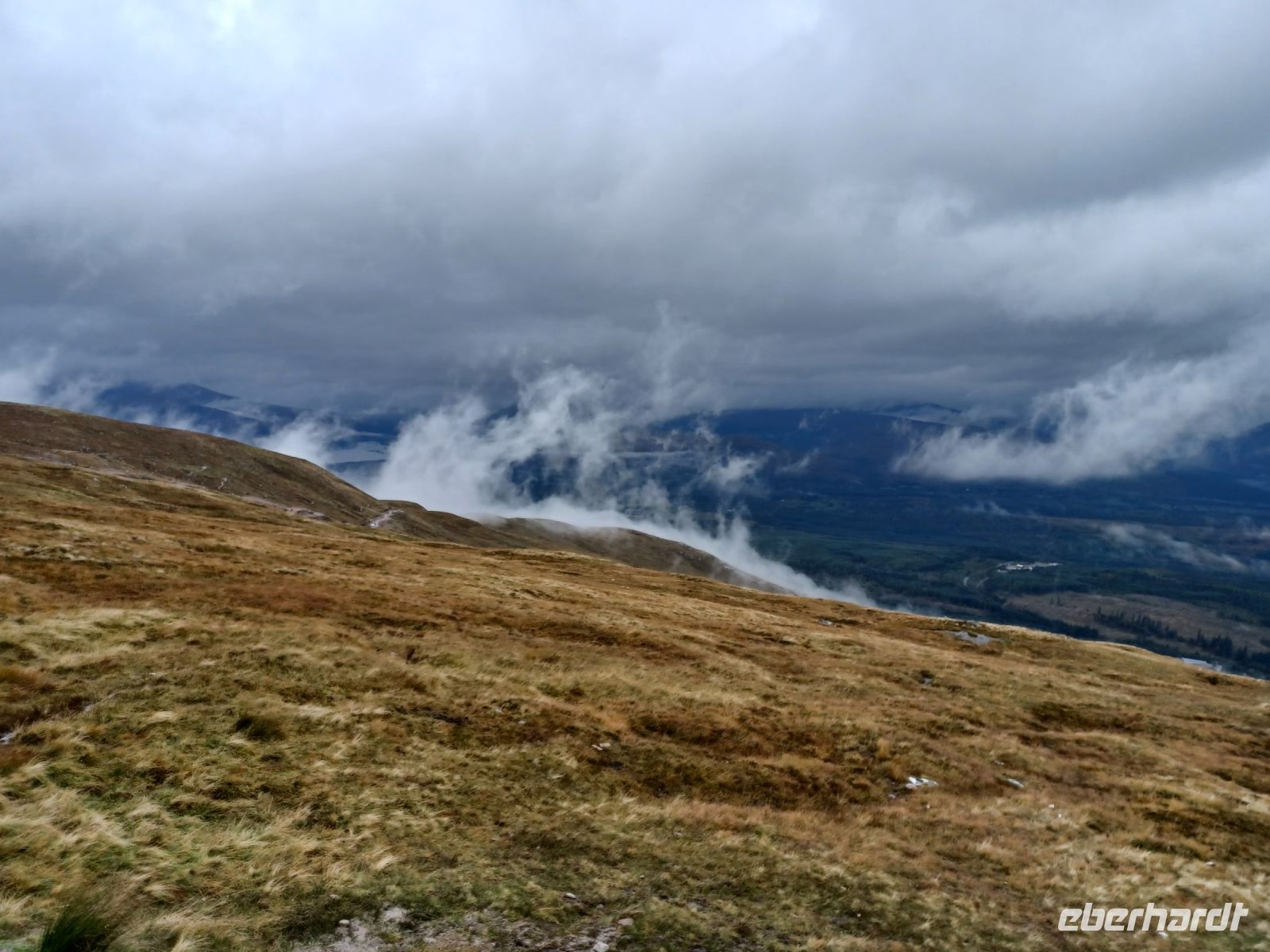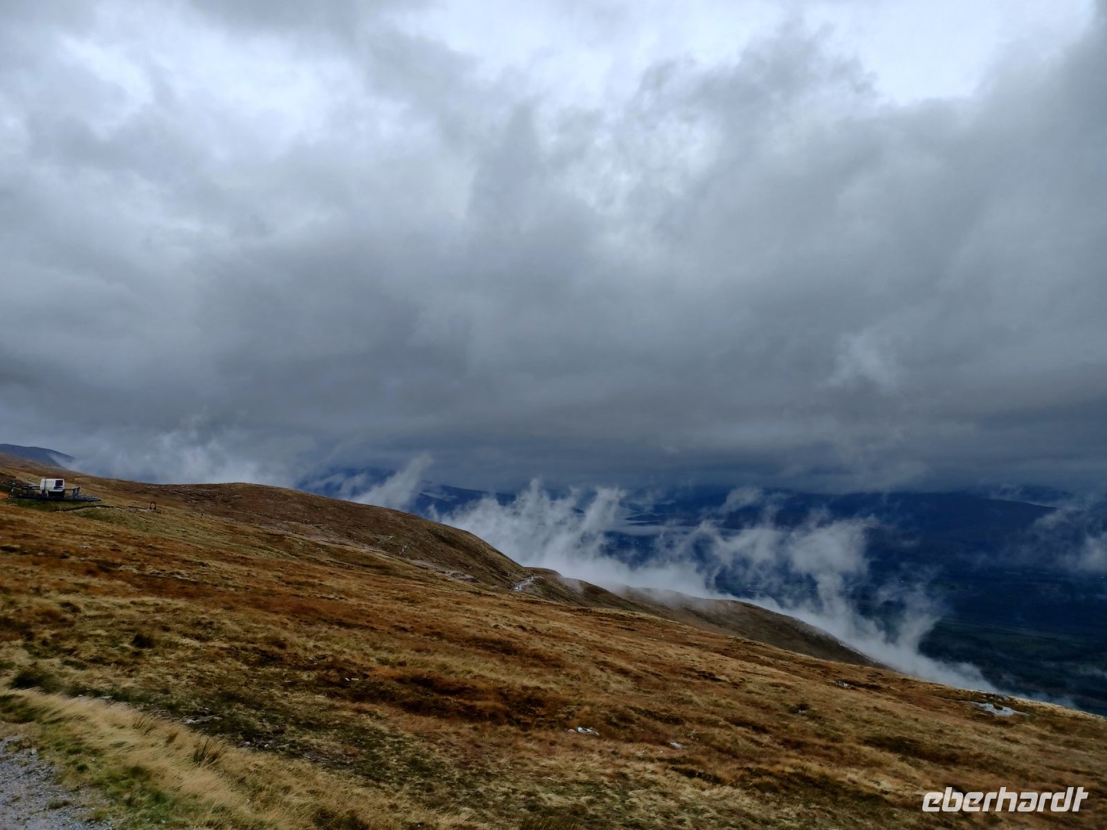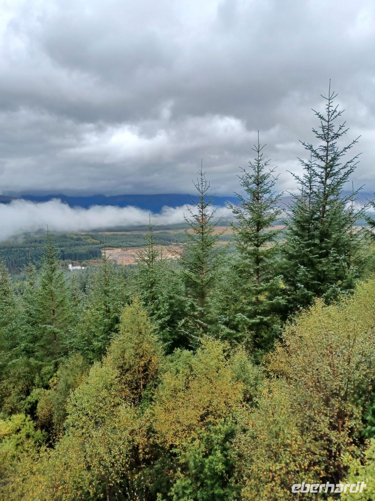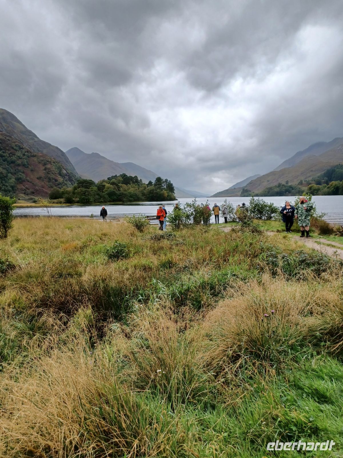 Leider lässt sich die Sonne heute nicht blicken. Wir wollen mit der Seilbahn auf die Ben Nevis Range fahren und starten voller Neugier in den neuen Tag. An der Basisstation der Seilbahnstation müssen wir etwas warten bevor die Kabinen für die Auffahrt zur Verfügung stehen. Starke Windböen verhindern eine pünktliche Abfahrt. Endlich geht es los und wir erreichen die Bergstation. Trotz Regen machen sich einige Gäste auf einen kleinen Spaziergang zum nahegelegenen Aussichtspunkt. Nachher nehmen wir wieder die Gondeln bergab und haben doch noch einen Blick auf das Tal, wo sich der Nebel langsam lichtet. Unser Fahrer Robert bringt uns zurück nach Fort William, wo wir die Mittagszeit ver-bringen. Nachher können wir den Nachmittag individuell gestalten. Doch gern nehmen die meisten Gäste das Angebot an, nach Glenfinnan zu fahren. Hier laufen wir zum Monument am Loch Shiel, das an Charles Edward Stuart (bekannt als „Bonnie Prince Charlie“) erinnern soll, der an dieser Stelle 1746 von Frankreich aus dem Exil kommend, die Vertreter der Clans sammelte. Er wollte den Thron der Stuarts zurückerobern, den seine Vorfahren an die Engländer verloren hatten. Am nächsten Tag werden wir das Schlachtfeld dieses Kampfes bei Culloden besuchen. Heute stehen wir aber an dem Ort, wo er ankam und auch nach der Schlacht das Land wieder verließ. Das schottische Volkslied „My Bonnie is over the ocean“ singen wir gemeinsam an diesem historischen Ort. Gegenüber können wir ein Eisenbahnviaduct von einem kleinen Aussichtspunkt sehen. Dieses Viaduct mit seinen 21 Bögen wurde durch die Filme über Harry Potter weltberühmt. Der Jacobite Dampfzug, der Harry zur Zauber-schule nach Hogwarts bringt, überquert dieses Viaduct bei Glenfinnan. Nach so schönen Momenten an diesem Tag, versuchen wir nun auch noch in Mallaig, dem Ausgangsbahnhof des Zuges, Tickets für die Fahrt nach Fort William zu bekommen. Wir haben großes Glück und die meisten Gäste nehmen den Zug, fahren über das vorher fotografierte Viaduct. Robert bringt die anderen Gäste sicher zurück zum Hotel, wo wir uns alle beim Dinner wiedersehen und über die Erlebnisse des Tages austauschen.