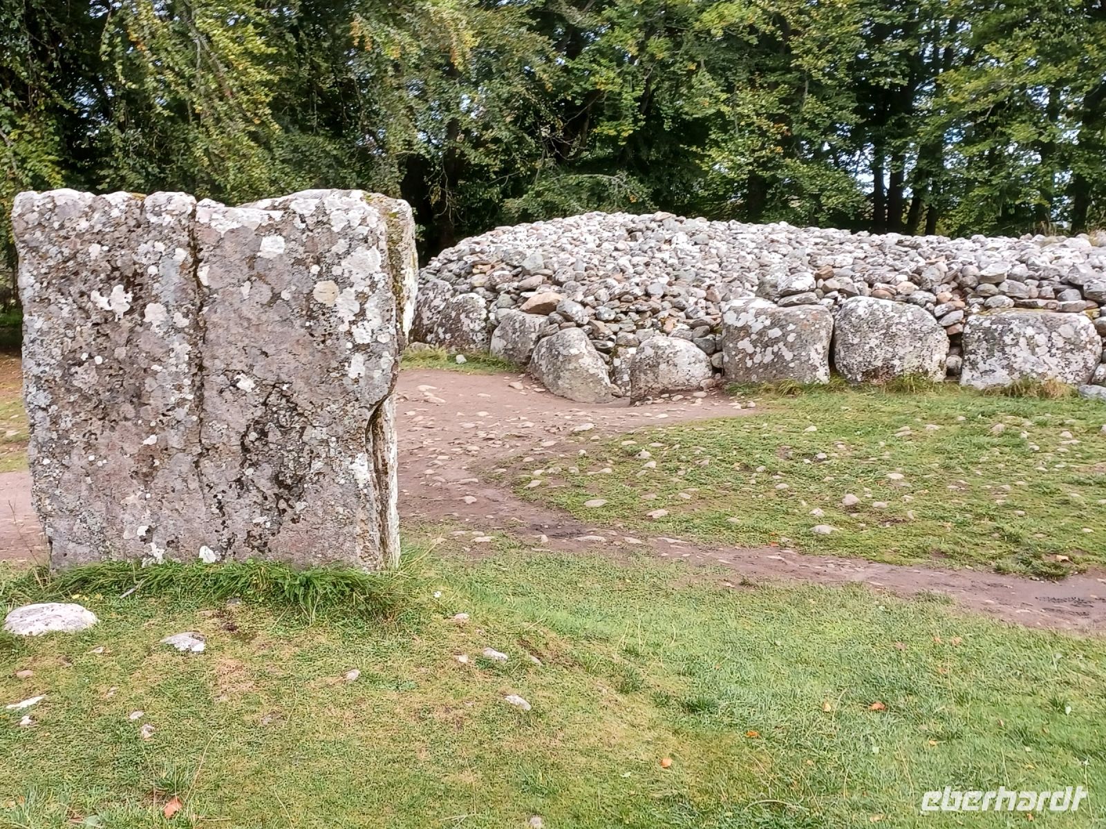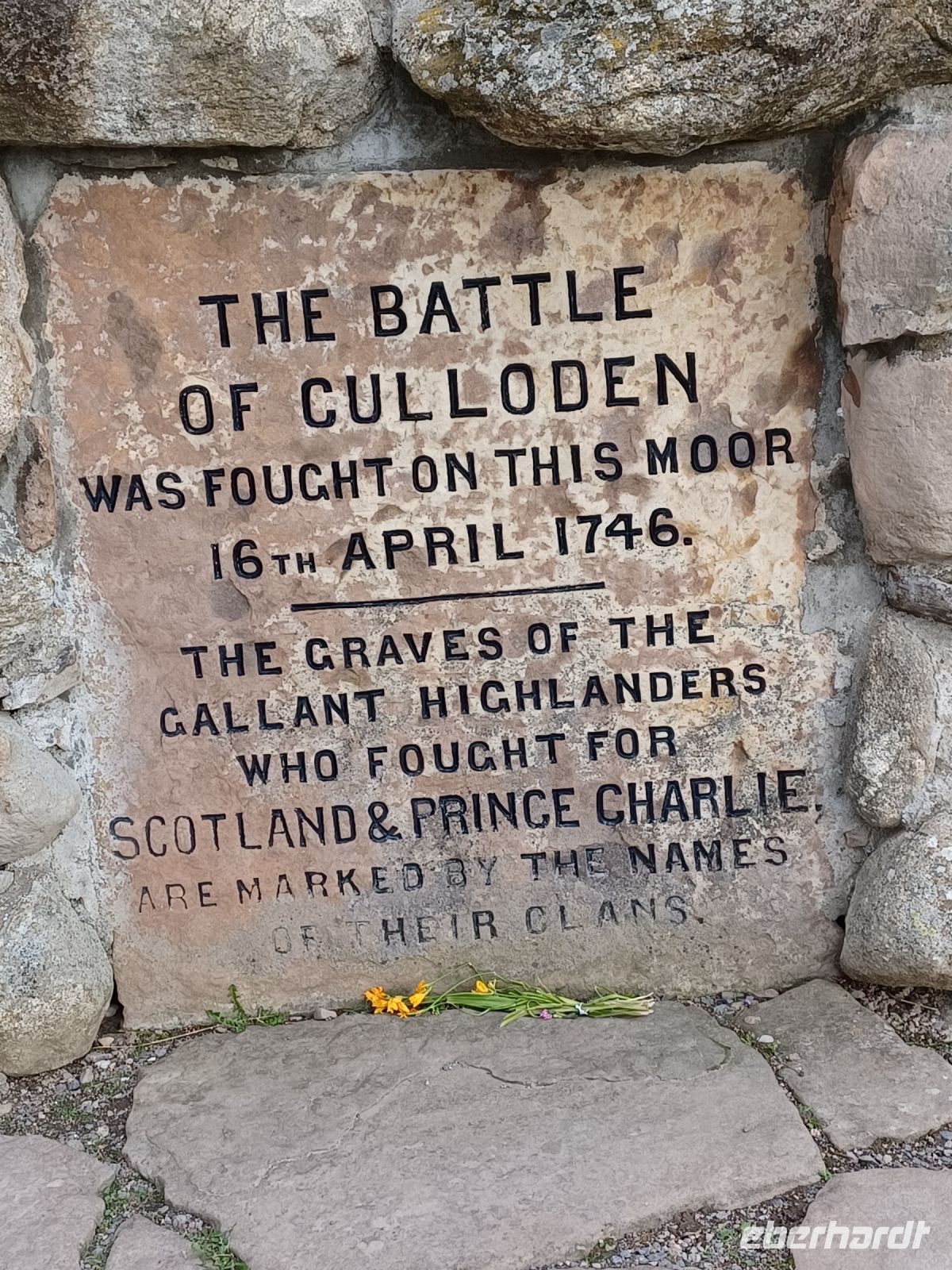 Bevor wir heute das Schlachtfeld des Jacobitenaufstandes besuchen, machen wir einen Abstecher zur 4000 Jahre alten Grabanlage, bestehend aus Hügelgräbern und Steinkreisen aus der Bronzezeit. Gleich „um die Ecke“ befindet sich das Culloden Battlefield mit seinem Besucherzentrum und Museum. Weite Felder umgeben das Zentrum, markiert sind die Frontlinien zwischen den Engländern mit roten und den Jacobiten mit blauen Fahnen. Wir sehen wie nah sich die Feinde gegenüberstanden. Beeindruckend ist der Film im Besucherzentrum, wobei sich der Besucher mitten in der Schlacht von 1746 wiederfindet. Man bekommt ein Gefühl dafür, wie erbittert die Männer für ihren König kämpften. Die Jacobiten für ihren „Bonnie Prince Charlie“, der seinen Thronanspruch mit deren Hilfe durchsetzen wollte. Auf der anderen Seite kämpften die Engländer unter dem Befehl des Herzogs von Cumberland. Es war die letzte entscheidende Schlacht, in der die Schotten durch ihre Niederlage nun end-gültig an England angegliedert wurden. Bei einer Wanderung über das Schlachtfeld entdecken wir viele große Feldsteine mit eingravierten Namen der Clans, die hier ihre Angehörigen verloren. Es gibt auch größere Steine für die namenlosen Toten, die in Massengräbern beigesetzt wurden. Bonnie Prince Charlie musste fliehen, wurde von Flora Mac Donald versteckt und ihre Statue vor dem Inverness Castle erinnert an diese traurige, aber auch romantische Geschichte. Nach dem Einblick in die schottische Geschichte fahren wir nun weiter über den Moray Firth zur Black Isle bis zum Leuchtturm, wo sich der beliebte Aussichtspunkt Chanonry Point befindet. Es ist windig und regnerisch, deshalb bringt uns Robert direkt zum Leuchtturm. Wir sind darüber sehr froh und laufen gleich zum Wasser, um die angekündigten Delphine zu sehen. Leider