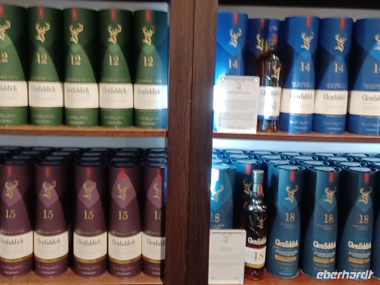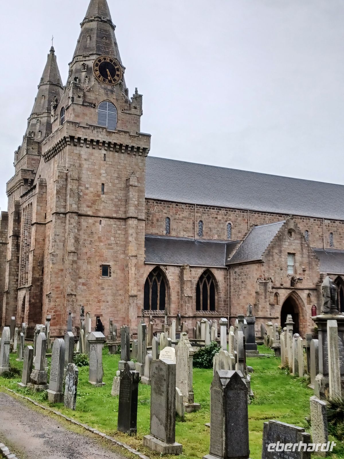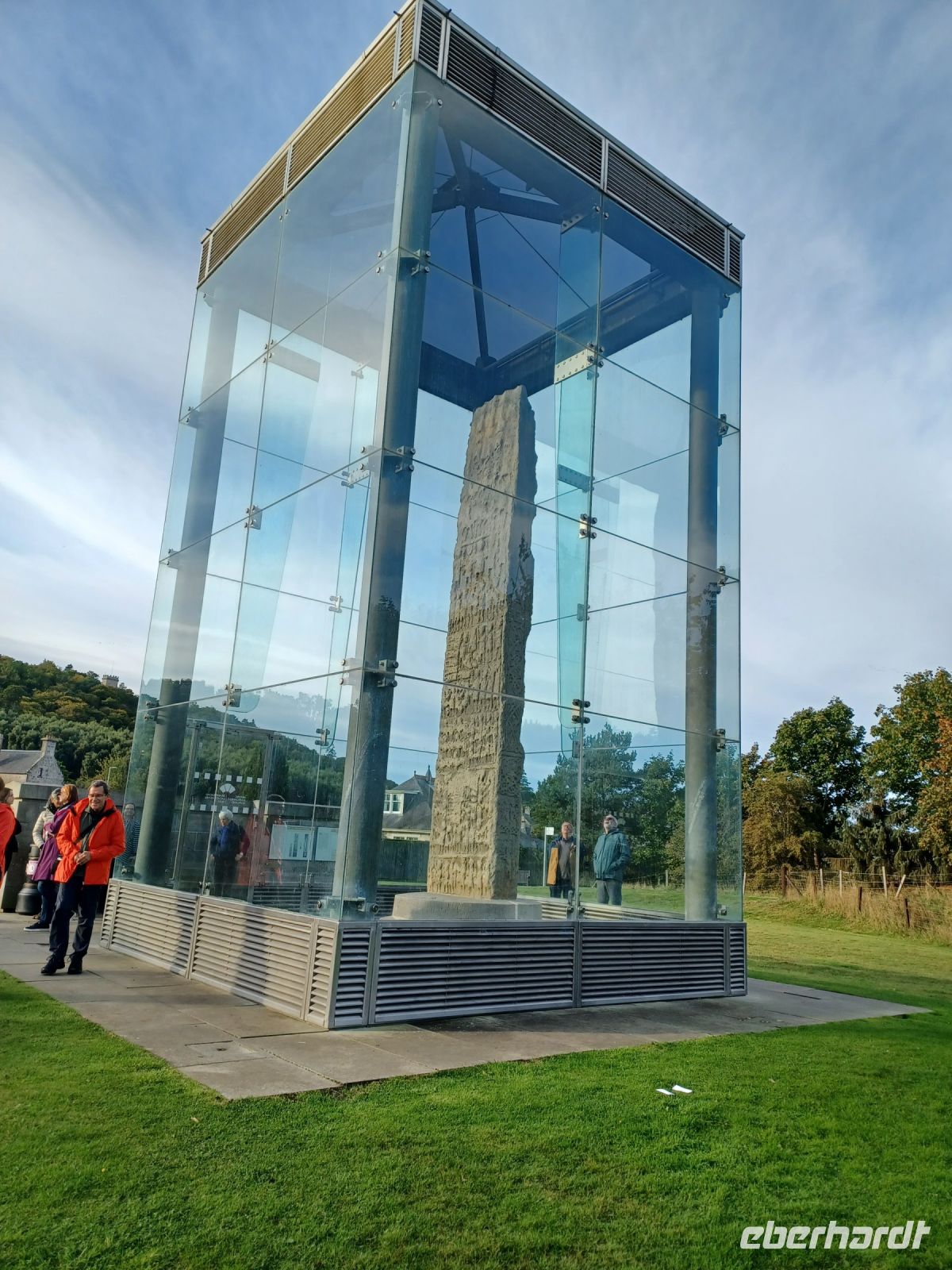 Heute geht es auf den Whisky – Trail. Aber zuerst machen wir einen Fotostopp im kleinen Ort Forres, um den Sueno`s Stone abzulichten. Es ist eine 7 m hohe Steinsäule aus Sandstein aus der Zeit der Pikten, der zum Schutz in einem Panzerglasgehäuse steht. Die Gravuren auf jeder Seite des Steins sind Zeugnisse der Kriege und Siege der Pikten. Nun geht es auf den schottischen Malt Whisky Trail, der einzige Trail dieser Art weltweit. Dieser Weg durch das wunderschöne Speyside, wo sich die weltgrößte Anzahl an Whisky – Distillen konzentriert, führt uns an sieben aktiven und einer historischen Brennerei sowie an der Speyside Cooperage vorbei. In St. Elgin gehen wir auf einen kleinen Spaziergang. Diese Stadt ist der Verwaltungssitz von Moray. Dieser Ort ist eng mit der Geschichte um den königlichen Heerführer Macbeth verbunden. 1040 tötete er hier in der Nähe den schottischen König Duncan I., erhob sich selbst danach für 17 Jahre zum König der Schotten und wurde selbst durch einen Nachfahren von Duncan Malcolm III. getötet. Diese Geschichte war Grundlage für Shakespeare`s Macbeth. Im Unterschied zur