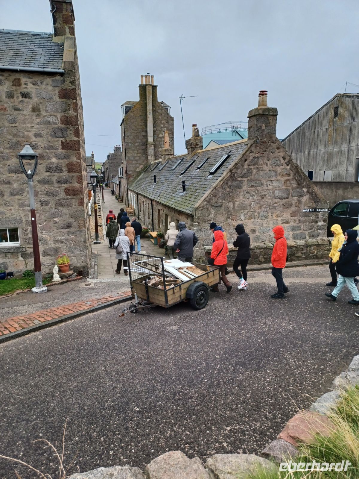 literarischen Gestalt war der wahre Macbeth für den Wohlstand des Landes, Frieden und Ruhe im Land, Vereinigung der streitbaren schottischen Landesteile und sicherte Gesetz und Ordnung. Auch weitere schottische Heerführer und Könige hinterließen ihre Fußspuren in Elgin. Nach dem Besuch dieses historischen Städtchens fahren wir nur wenige Kilometer weiter – zur Moray Distillery. Diese Brennerei wurde bereits 1897 gegründet und im Laufe der Jahre umgebaut und erweitert. Diese Distillery liegt auf moorigem Gelände nahe dem Fluss Lossie. Ihr Whisky ist für seine traubige Note bekannt und ist Bestandteil des Hausstils der Distillery. Natürlich machen wir nicht nur einen Rundgang, sondern können auch das „Wasser des Lebens“ testen. Auf unserer Weiterfahrt kommen wir noch an weiteren Whisky – Brennereien vorbei und stoppen gleich für einen Fotostopp und Besuch im Geschäft von der berühmten Glenfiddich Distillery. Danach fahren wir zur Speyside Cooerage. Hier sehen wir, wie die Arbeiter Whiskyfässer reparieren und auch neue Fässer herstellen. Wir schauen von einer Galerie auf die Lehrlingswerk-statt, wo die jungen Männer innerhalb von 4 Jahren ihr Handwerk erlernen und schließlich täglich 20 - 30 Fässer fertigstellen müssen. Die erreichte Anzahl ist Grundlage für die Bezahlung. In einem Wettbewerb beim Zusammenbau eines neuen Fasses wurden 3 Minuten und 12 Sekunden erreicht. Beeindruckt vom Gesehenen fahren wir nach Aberdeen, wo uns schon die örtliche Reiseleiterin erwartet. Sie zeigt uns zuerst das „Fittie“ – ein früheres Zentrum der Fischer mit hübschen kleinen Häusern. Heute sind diese begehrte Domizile für Künstler, die hier ihre Ateliers eingerichtet haben. Dann machen wir eine Stadtrundfahrt, steigen an der Universität, bei der Kathedrale St. Macher und beim Marischall College aus. Aberdeen ist die drittgrößte Stadt Schottlands und bekannt als „Flower- City“ (Blumenstadt). Im Sonnenschein sollen die vielen grauen, aus Granit gebauten Häuser hell leuchten. Heute sehen wir jedoch nur das Grau im strömenden Regen. Deshalb sind wir auch froh, in unserem Hotel einzuchecken und die Zimmer zu beziehen. Den erlebnisreichen Tag beschließen wir gemeinsam beim köstlichen Dinner.