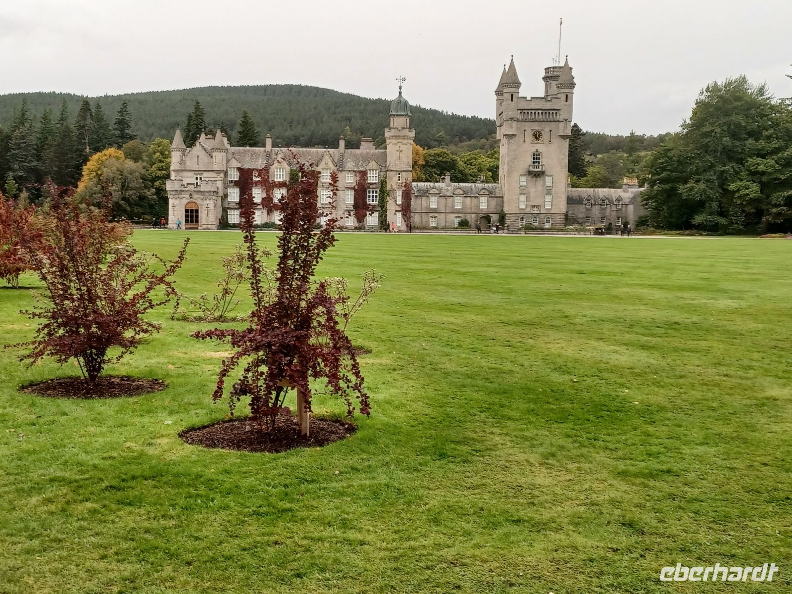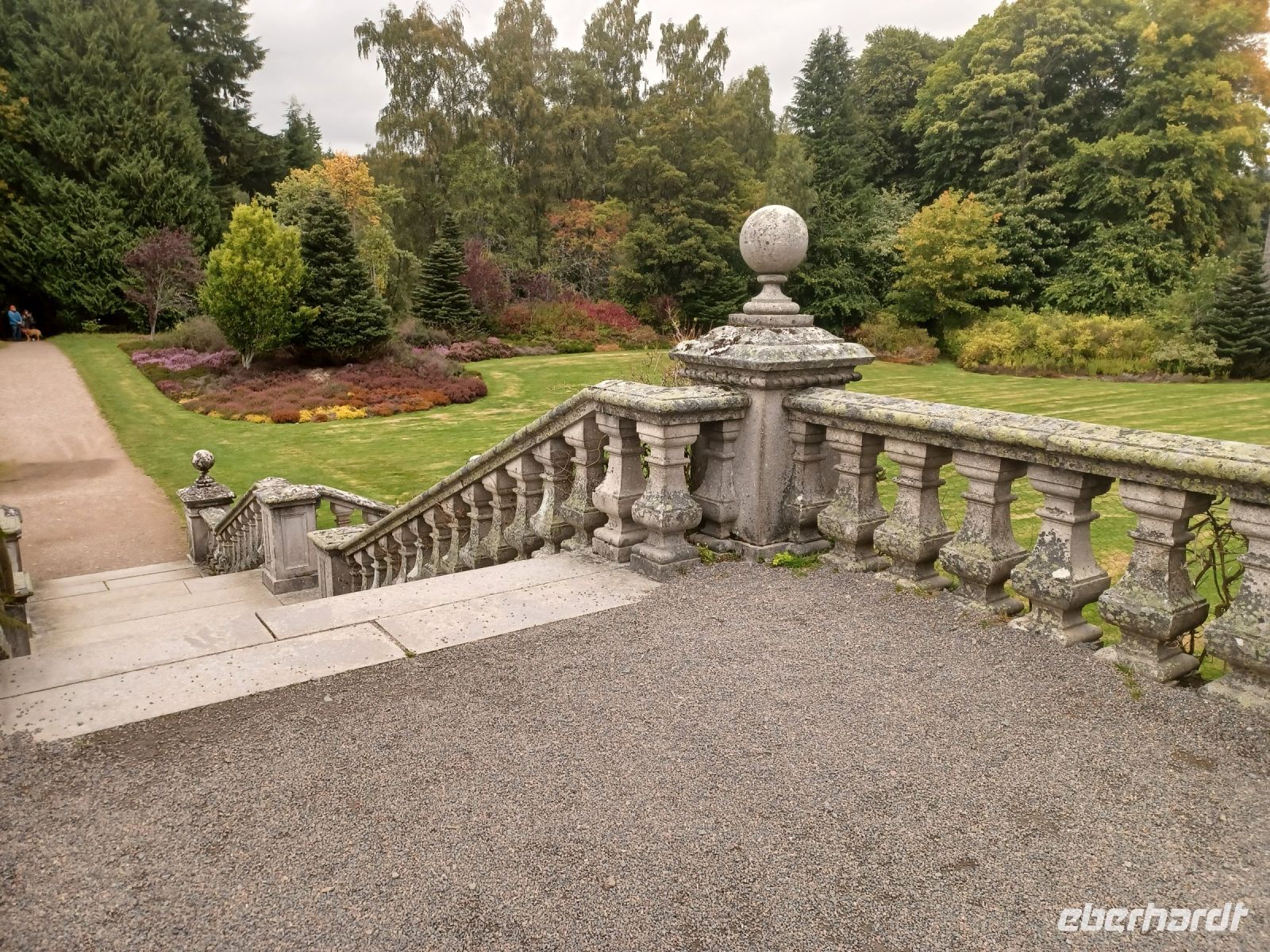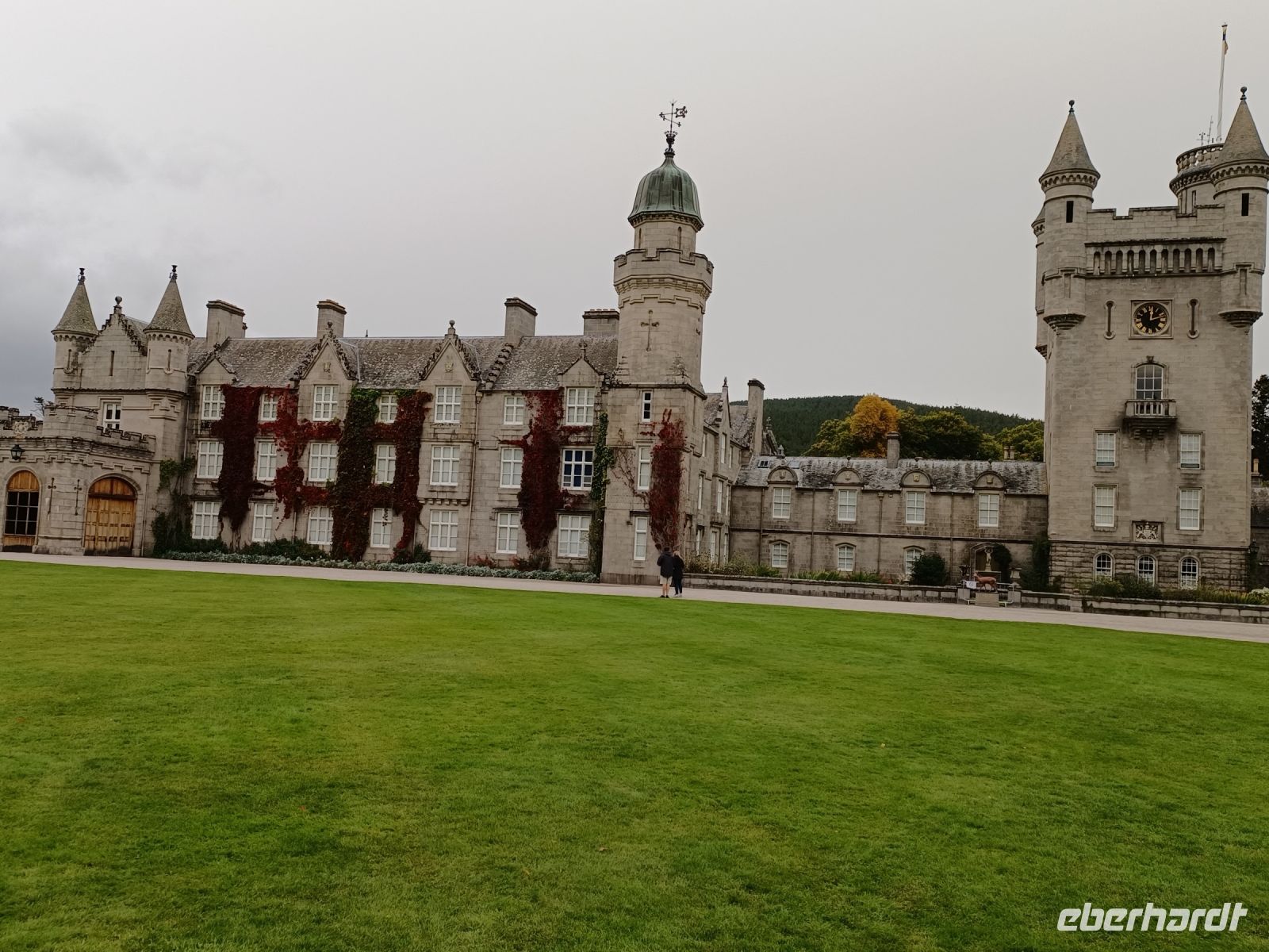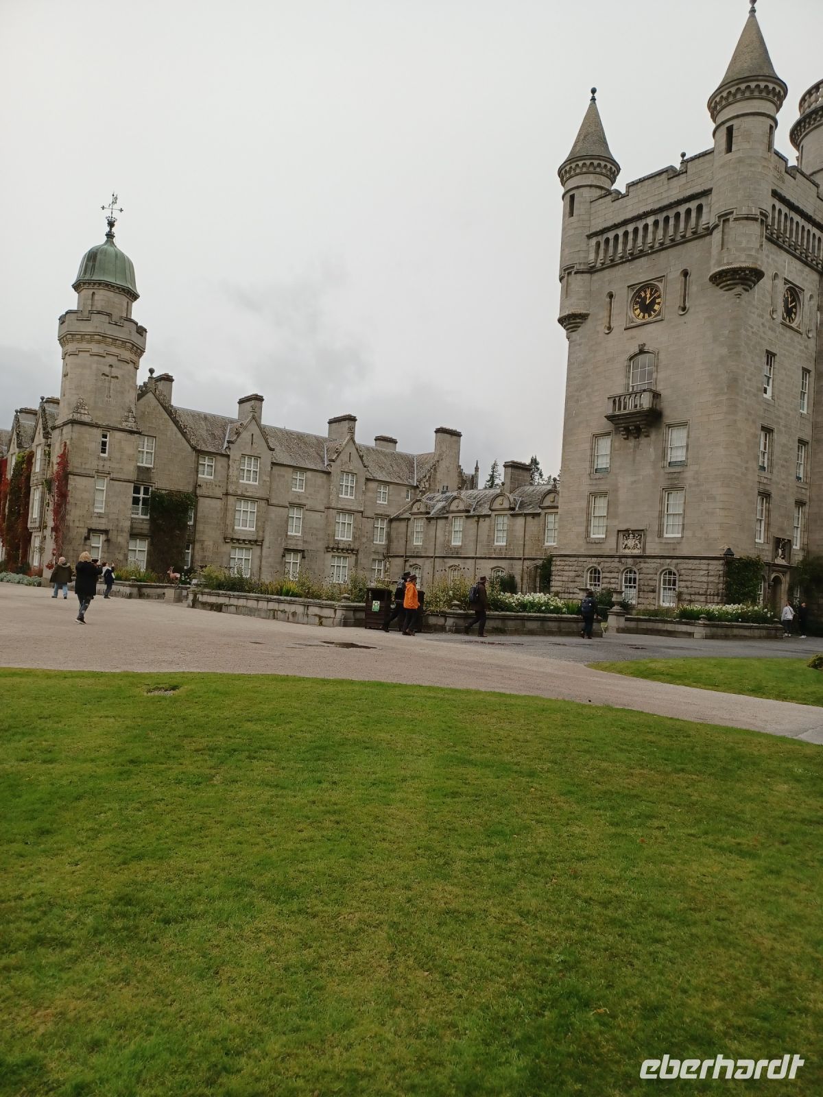 Eine typische Viehfarm in Schottland ist heute unser erstes Reiseziel. Bei Clare können wir endlich richtige Highland Cows hautnah sehen und sogar berühren. Die Farmerin erklärt uns die Aufzucht, Haltung und Vermarktung ihrer wunderschönen cattles. Besonders stolz erzählt sie von der ersten Begegnung mit dem jetzigen König Charles III. und seiner Ehefrau Camilla, die von Clare`s Tieren so begeistert waren, dass sie seit-dem auch Tiere ihrer Herde bei Clare unterstellen oder Fleisch von der Farm käuflich erwerben. Clare zeigt uns eine sehr schöne Highland Kuh, die wir sogar kämmen durften. Diese ist auf jeglichem Werbematerial oder Abbildungen auf typischen schottischen Produkten zu sehen. Die Sonne scheint jetzt als wir uns auf den Weg Richtung Edinburgh machen. Aber wir werden noch weitere Überraschungen auf der Fahrt zu unserem letzten Hotel erleben. Zuerst machen wir Halt in Balatar, wo wir im Gebäude der Touristeninformation den historischen Bahnhof des Ortes besuchen. Hier kam Königin Victoria im 19. Jahrhundert an, wenn sie ihre Sommerresidenz in Balmoral aufsuchen wollte. Der schöne Warteraum mit dem historischen Reisewagen davor, der herrlich vorbereitete Speiseraum im Gebäude, der Waschraum und sogar das WC – alles ist so hergerichtet, als ob die Queen jeden Augenblick selbst erscheinen wird. Wir freuen uns nun auf die nächste Überraschung. Diese ist ein nicht vorher planbarer Besuch von Balmoral. Das Tor zum Schlosspark öffnet sich extra für uns, sodass wir direkt am Schloss parken können. Beim Spaziergang durch die herrliche Anlage, die königlichen Gärten und entlang des Flusses Dee machen wir viele Fotos, die uns an den besonderen Höhepunkt dieser Reise erinnern werden. Entlang des Flusses fahren wir auf der 670 Meter höchstgelegenen asphaltierten Passstraße Schottlands, die östlich der Grampian Mountains liegt und die südliche Grenze zum Cairngorm National Park bildet - dem „Cairnwell Pass. Am Devil`s Elbow stoppen wir für ein Foto. Hier war früher eine Doppelkehre mit einer Steigerung von 30 % (entsprechend sagen die Schotten: „one in three“) Weiter geht es nun Richtung Perth, wo wir in unmittelbarer Nähe der Stadt, rechts abbiegen. Hier befindet sich Scone Palace. Hier fand seit Kenneth Mac Alpin (843) die Krönung der schottischen Könige statt. Bit 1296 wurde der Krönungsstein – der Schicksals-stein („Stone of Destiny“) aufbewahrt, bis er von Edward I. an sich genommen und bis 1996 in der Westminster Abbey in London in den