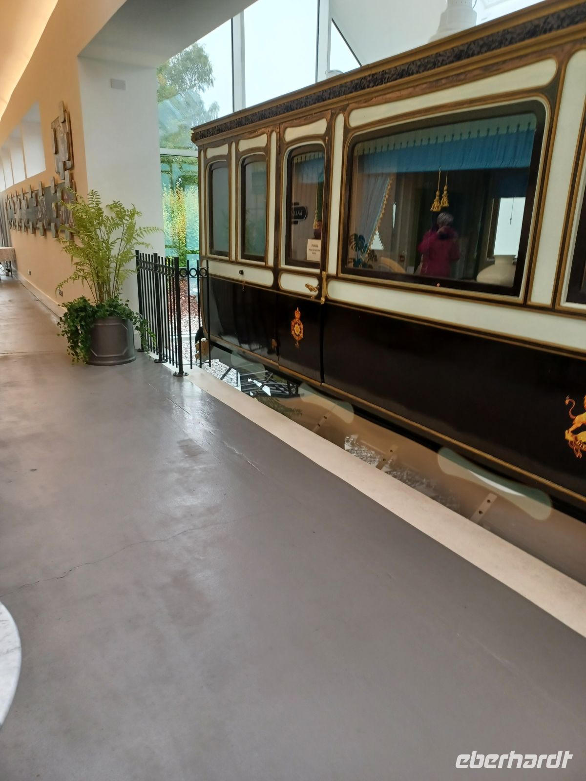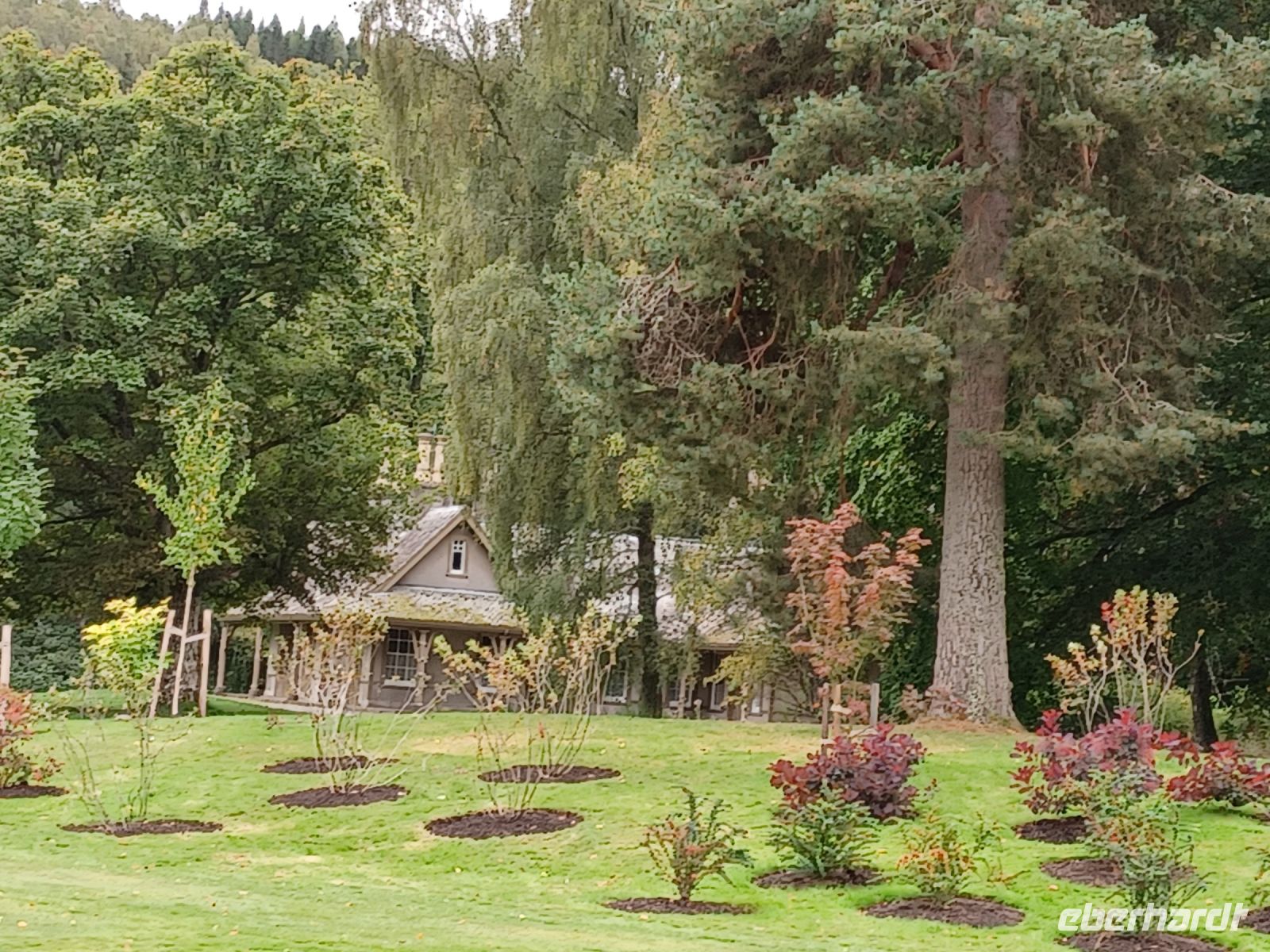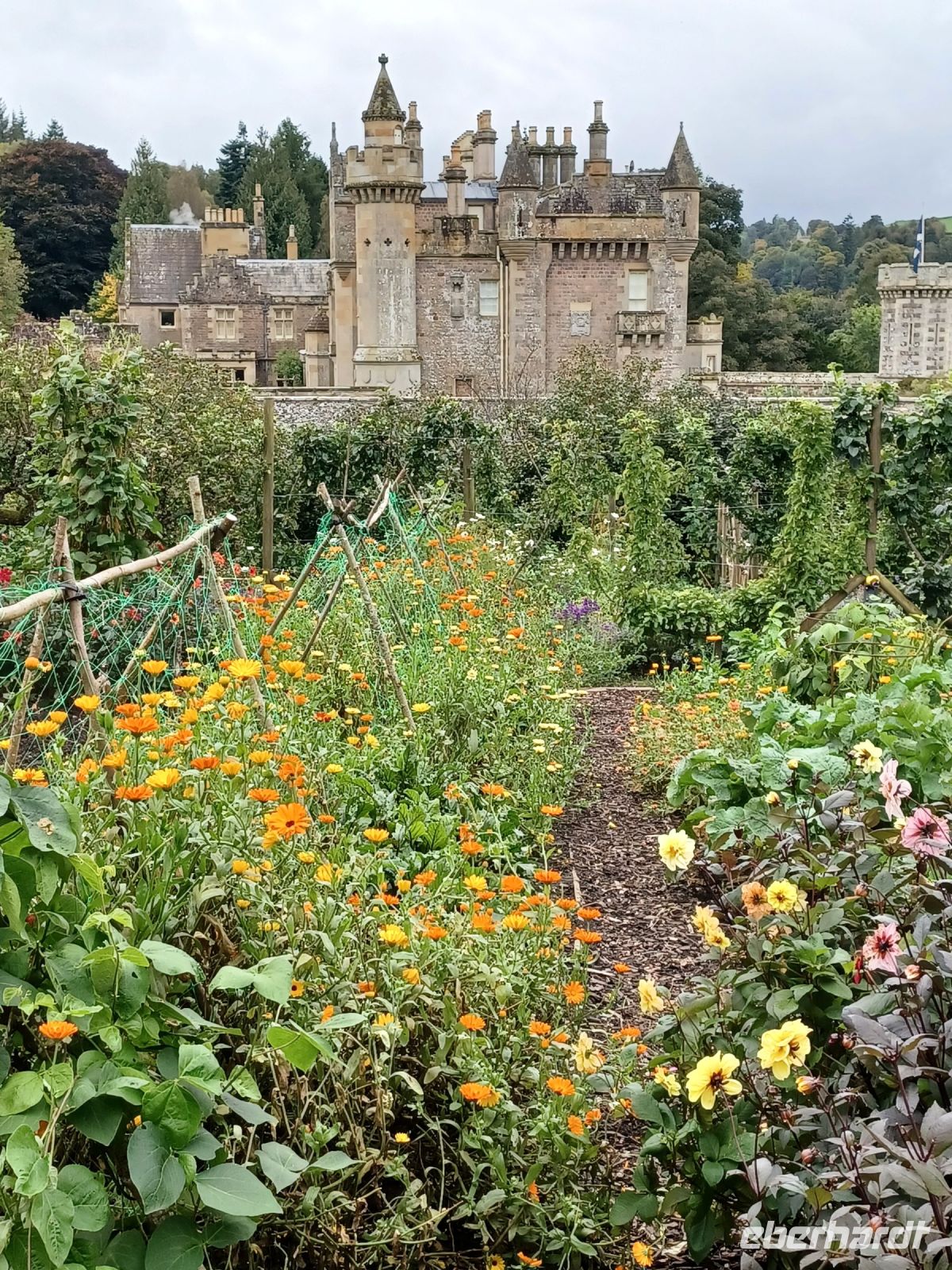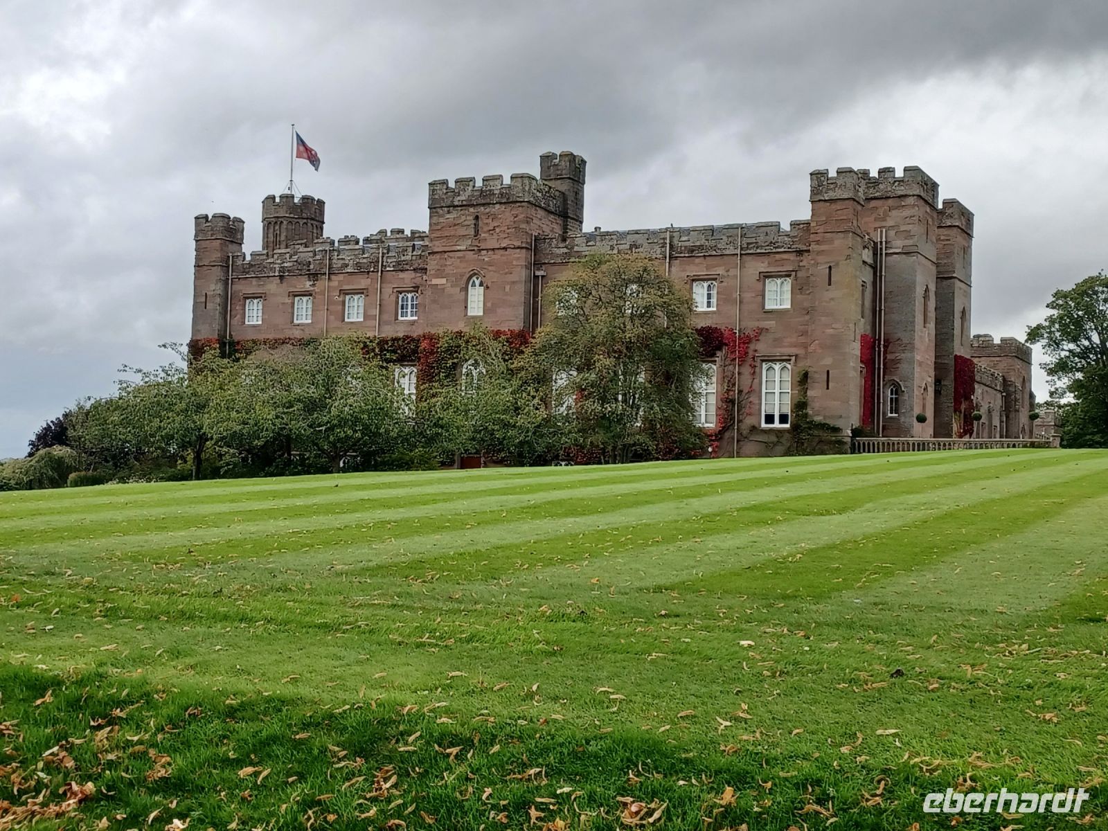 Eine typische Viehfarm in Schottland ist heute unser erstes Reiseziel. Bei Clare können wir endlich richtige Highland Cows hautnah sehen und sogar berühren. Die Farmerin erklärt uns die Aufzucht, Haltung und Vermarktung ihrer wunderschönen cattles. Besonders stolz erzählt sie von der ersten Begegnung mit dem jetzigen König Charles III. und seiner Ehefrau Camilla, die von Clare`s Tieren so begeistert waren, dass sie seit-dem auch Tiere ihrer Herde bei Clare unterstellen oder Fleisch von der Farm käuflich erwerben. Clare zeigt uns eine sehr schöne Highland Kuh, die wir sogar kämmen durften. Diese ist auf jeglichem Werbematerial oder Abbildungen auf typischen schottischen Produkten zu sehen. Die Sonne scheint jetzt als wir uns auf den Weg Richtung Edinburgh machen. Aber wir werden noch weitere Überraschungen auf der Fahrt zu unserem letzten Hotel erleben. Zuerst machen wir Halt in Balatar, wo wir im Gebäude der Touristeninformation den historischen Bahnhof des Ortes besuchen. Hier kam Königin Victoria im 19. Jahrhundert an, wenn sie ihre Sommerresidenz in Balmoral aufsuchen wollte. Der schöne Warteraum mit dem historischen Reisewagen davor, der herrlich vorbereitete Speiseraum im Gebäude, der Waschraum und sogar das WC – alles ist so hergerichtet, als ob die Queen jeden Augenblick selbst erscheinen wird. Wir freuen uns nun auf die nächste Überraschung. Diese ist ein nicht vorher planbarer Besuch von Balmoral. Das Tor zum Schlosspark öffnet sich extra für uns, sodass wir direkt am Schloss parken können. Beim Spaziergang durch die herrliche Anlage, die königlichen Gärten und entlang des Flusses Dee machen wir viele Fotos, die uns an den besonderen Höhepunkt dieser Reise erinnern werden. Entlang des Flusses fahren wir auf der 670 Meter höchstgelegenen asphaltierten Passstraße Schottlands, die östlich der Grampian Mountains liegt und die südliche Grenze zum Cairngorm National Park bildet - dem „Cairnwell Pass. Am Devil`s Elbow stoppen wir für ein Foto. Hier war früher eine Doppelkehre mit einer Steigerung von 30 % (entsprechend sagen die Schotten: „one in three“) Weiter geht es nun Richtung Perth, wo wir in unmittelbarer Nähe der Stadt, rechts abbiegen. Hier befindet sich Scone Palace. Hier fand seit Kenneth Mac Alpin (843) die Krönung der schottischen Könige statt. Bit 1296 wurde der Krönungsstein – der Schicksals-stein („Stone of Destiny“) aufbewahrt, bis er von Edward I. an sich genommen und bis 1996 in der Westminster Abbey in London in den
