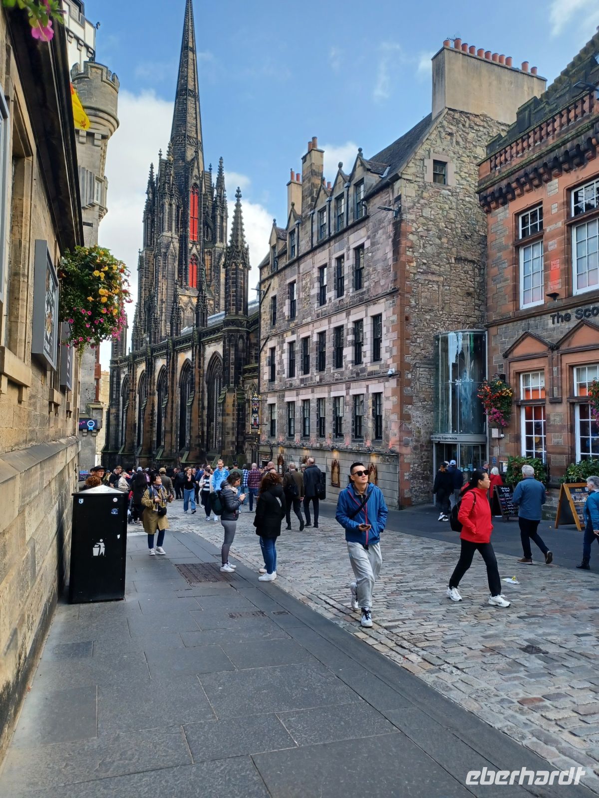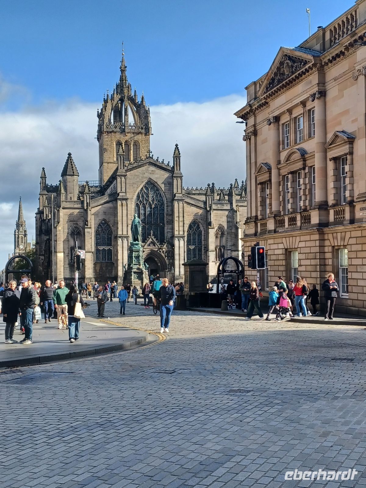 Ian der örtliche Reiseleiter wartet schon in der Lobby des Hotels. Er wird uns heute während einer Stadtrundfahrt Edinburgh – seit dem 15. Jahrhundert Hauptstadt Schottlands - näherbringen. Auf der Fahrt durch die zwei Stadtteile scheint die Sonne und die gesamte Stadt wirkt wunderschön. Die Altstadt weist eine zentrale Straße auf, begrenzt durch die Burg auf einer Seite und dem Holyrood Palace auf der anderen Seite. Im wahrsten Sinne eine königliche Straße, die aufgrund ihrer Länge auch den entsprechenden Namen trägt: „Royal Mile“. Ian zeigt uns die schönen alten Häuser in der Altstadt die die Royal Mile säumen. Hier laden viele kleine Geschäfte und einige Dudelsackspieler zum Bummeln und Verweilen ein. Am Nachmittag, wenn wir Freizeit haben, gehen wir sicherlich hierher. Schon jetzt erkennen wir, dass sich das historische Edinburgh wesentlich von dem industriell geprägten Glasgow unterscheidet. In der Neustadt ist die zentrale Straße die Princess Street, wo wir das riesige Denkmal für den schottischen Nationaldichter, Walter Scott, sehen. Dessen Wohnhaus und Garten werden wir am nächsten Tag besuchen. Mit Ian laufen wir nach der Rundfahrt zum Eingang des Edinburgh Castle und sehen, dass gerade die Zuschauertribünen abgebaut werden, die während des Military Tattoo im August tausenden Touristen Sitzgelegenheiten bieten, während sie der Dudelsackmusik von Orchestern aus dem Vereinigten Königreiches und dem Ausland begeistert lauschen und am Ende gemeinsam das schottische Volkslied „Auld Lang Syne“ singen. Wir überqueren den Vorplatz der Burg und Ian führt uns noch eine Weile und erklärt die wichtigsten Sehenswürdigkeit innerhalb des Burggeländes. Dort sehen wir auch die lange Warteschlange der Menschen, die unbedingt einen Blick auf den Krönungsstein werfen wollen. Er wurde im Mai 2023 zur Krönungsfeier von Charles III. ausgeliehen und ist jetzt wieder an seinem seit 1996 angestammten Platz im Edinburgh Castle. Darüber hinaus können auch die schottischen Krönungsinsignien hier besichtigt werden. Nachdem sich Ian von unserer Gruppe verabschiedet hat, haben wir nun Freizeit und gestalten den Nachmittag und Abend ganz unterschiedlich. Einige Gäste warten noch auf den traditionellen Kanonenschuss um 13 Uhr, andere laufen gleich noch einmal zurück zum Holyrood Palace oder zum Gebäude des Parlaments. Andere Gäste hören den Dudelsackspielern in der Royal Mile zu und gehen in einen der vielen traditionellen Pubs, wie „Greyfriars Bobby“, der nach dem Hund benannt wurde, der 14 Jahre lang immer wieder zum Grab seines Herrn kam. Es ist schön, einmal allein die sehenswerte Metropole Schottlands zu erkunden. Morgen ist unser letzter Tag unserer Rundreise bevor es dann wieder nach Hause geht.