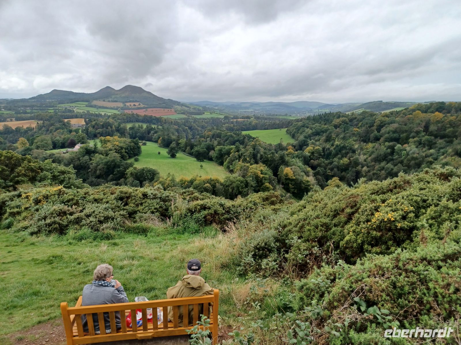 Nun ist unser Besuch in Schottland fast zu Ende, jedoch wollen wir noch einen weiteren Ausflug machen. Wir fahren in das ehemalige Grenz-gebiet zwischen England und Schottland – in den Süden in das Borderland, wo sich noch einige große Burgen befinden. Jedburgh Castle, Dryburgh Abbey, Rosslyn Chapel und Melrose Abbey werden wir heute nicht alle besuchen. Aber Melrose Abbey wollen wir unbedingt sehen, da dort das Herz von Robert de Bruce begraben ist. Er war von 1306 - 1329 König von Schottland, beerdigt wurde sein Körper in Dunfermiline. Es ist unklar in der Geschichte, ob er William Wallace (bekannt als „Braveheart“) in der Schlacht von Falkirk an die Engländer verraten hat und diese ihn dann nach London schleppten, bestialisch ermordeten und dessen Gliedmaßen zur Abschreckung nach Schottland schickten. Bevor wir Melrose erreichen, entdecken wir drei Brücken bei Leaderfoot, die den ehemaligen Grenzfluss zwischen England und Schottland, den Tweed, über-spannen. Beeindruckend ist die größte Brücke mit ihren 19 Rundbögen. Nach zahlreichen Fotos fahren wir weiter nach Melrose, einem hübschen kleinen Städtchen mit der berühmten Abtei. Von dieser ist nur noch eine Ruine zu sehen, die irgendwann einmal wieder als Abtei aufgebaut werden soll. Wir gehen zur Ruine und sehen in deren Nähe die kleine unscheinbare Stelle, wo das Herz von Robert de Bruce begraben ist. Einige Gäste besichtigen noch die Räume des Museums, das sich auf dem Gelände der Abtei befindet. Nach der Mittagspause in Melrose besuchen wir den Garten am Wohnhaus, eher einem Schloss ähnlich, vom schottischen Nationaldichter Walter Scott in Abbodsford. Durch den Bau des prächtigen Hauses verschuldete sich der Dichter derart, dass das Haus nach seinem Tod 1832 zwangsversteigert werden musste. Durch den Verkauf seiner Werke konnte das Anwesen Jahre später ohne Schulden der Familie zurückgegeben werden. Auf den Spuren von Walter Scott können wir noch kurz das gleichnamige Besucherzentrum betreten bevor es zum Aussichtspunkt auf dem Bemersyde Hill in die Berge weitergeht. Von hier hatte Walter Scott einen wunderschönen Blick auf das Tal des Flusses Tweed. Dieser Aussichtspunkt ist als „Scott´s View“ bekannt. Abschließend besuchen wir Rosslyn Chapel, die William Sinclair im 15. Jahrhundert erbauen ließ. Er galt als einer der einflussreich-sten Tempelritter, dem es gelang, nach Schottland zu fliehen und als Dank diese Kapelle stiftete. Der Legende zufolge sollen hier die Templer den Heiligen Gral versteckt haben. Ausgerüstet mit dem Prospekt der Kirche suchen wir alle von den zahlreichen Steinmetzarbeiten, die wir auch nacheinander entdecken. Die Lehrlingssäule ist natürlich die Attraktion. Über die wird berichtet, dass ein Lehrling in der Nacht eine Vision hatte und gleich diese in seiner Steinmetzarbeit an der Säule verwirklichte. Am Morgen sah der Meister diese und tötete aus Neid den Lehrling. Beim Rundgang durch die Kapelle hören wir noch der englischsprachigen Beschreibung zu und fahren danach zurück zum Hotel. Dort helfen wir uns gegenseitig beim Einchecken für den Rückflug. Später gehen wir zum Pub, wo unser Abschiedsessen bestellt ist und wir die schöne Reise Revue passieren lassen wollen. Eigentlich ist nicht viel darüber zu sagen, nur so viel, dass alle Gäste sehr vom Ambiente und der Lautstärke im Pub sowie dem Essen sehr enttäuscht sind. Wir verlassen nach dem Essen ganz schnell den Pub und laufen im Regen zurück. (dieser Pub wird künftig nicht mehr im Programm aufgeführt werden!) Mit einem Glas Wein in der schönen Lobby des Hotels beenden wir den Tag.