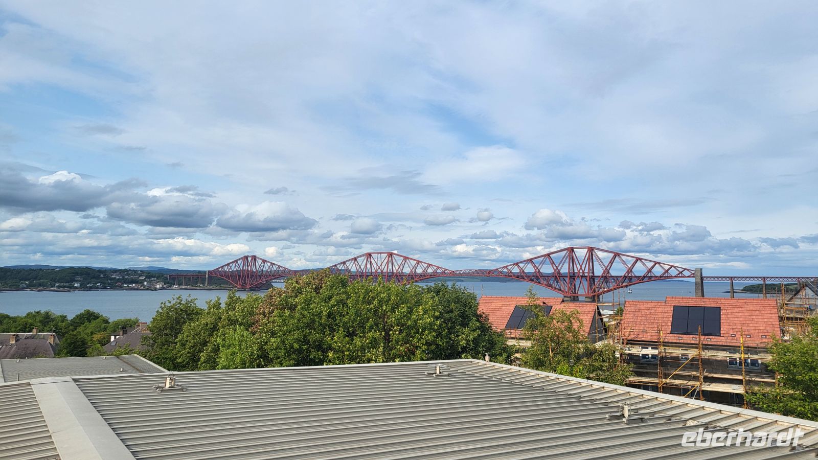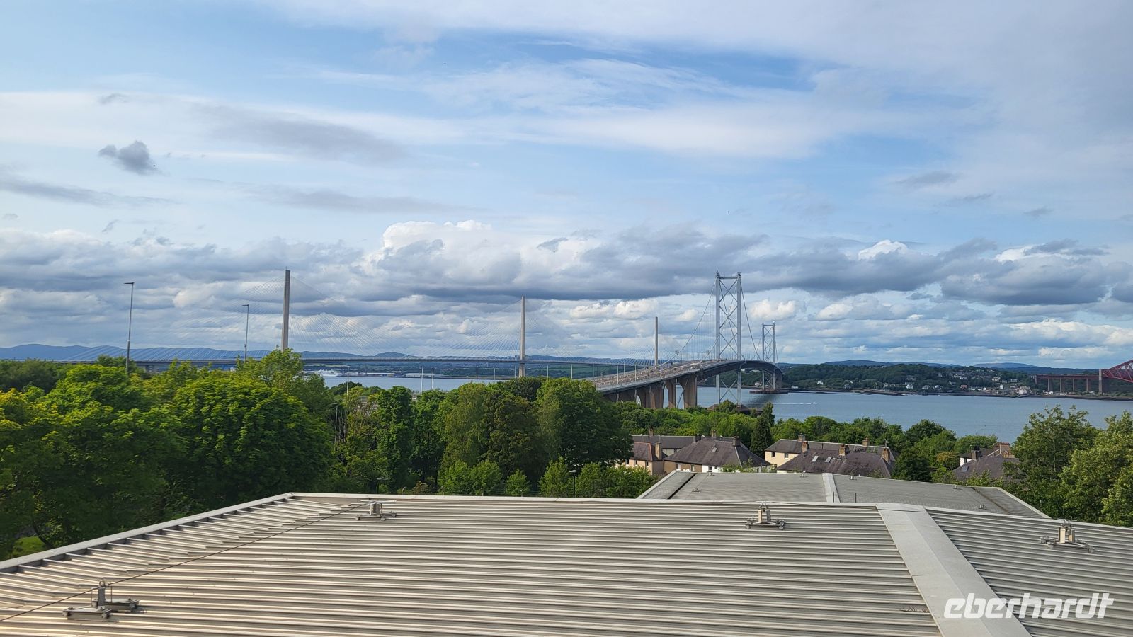 Schließlich machen wir uns auf den Weg in die Hauptstadt: Edinburgh. Auf dem Weg überqueren wir den Firth of Forth – ein unvergesslicher Moment. Direkt vor uns liegen drei Brücken, die aus drei unterschiedlichen Jahrhunderten stammen: die viktorianische Eisenbahnbrücke, die elegante Road Bridge und die futuristische Queensferry Crossing. Natürlich halten wir für einen kurzen Fotostopp – der Ausblick auf das Wasser und die Ingenieurskunst ist einfach zu besonders.