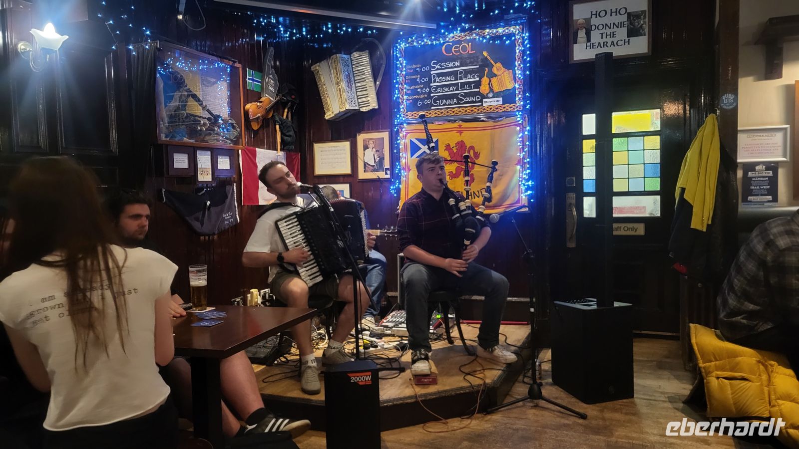 Nach dem Abendessen machen wir uns noch einmal auf den Weg – diesmal in einen typisch schottischen Pub. In gemütlicher Atmosphäre, bei einem Pint lokalen Biers, erleben wir ein kleines musikalisches Highlight: Einheimische Musiker spielen traditionelle schottische Lieder, begleitet von Gesang und – natürlich – dem Dudelsack. Die Stimmung ist herzlich, die Musik geht direkt ins Herz, und wir spüren: Unsere Schottlandreise hat gerade erst begonnen.