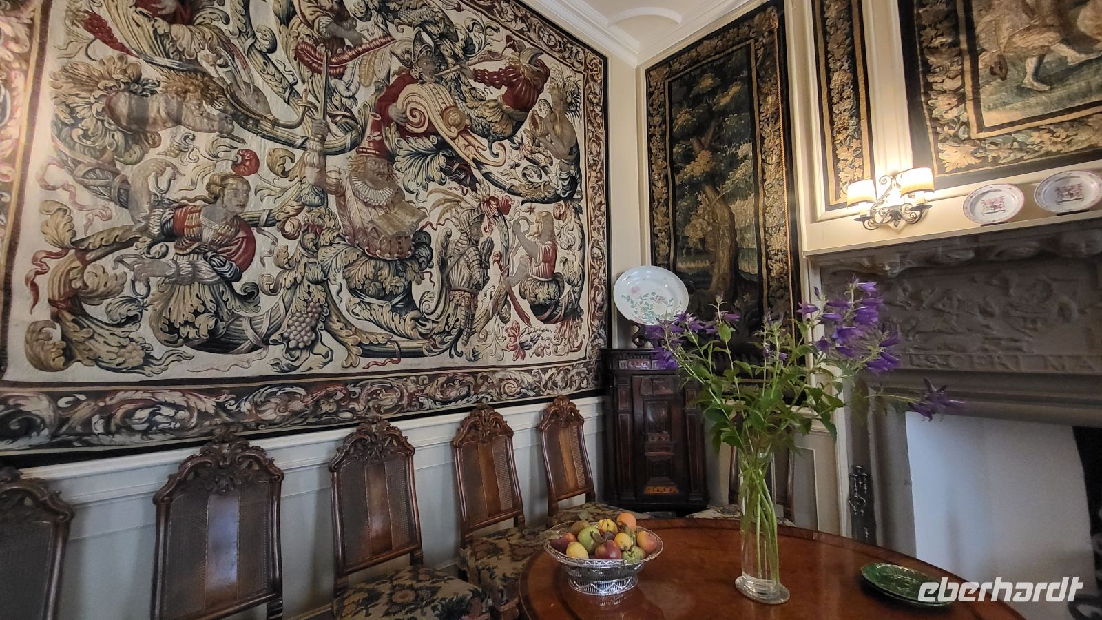 Nach diesem eindrucksvollen Vormittag geht es weiter zum Cawdor Castle – ein Kontrastprogramm in vielerlei Hinsicht. Zum ersten Mal auf unserer Reise betreten wir ein Schloss, das noch heute bewohnt ist. Cawdor Castle ist eng mit Shakespeares "Macbeth" verknüpft, auch wenn die historische Verbindung eher lose ist. Innen erwartet uns eine liebevoll erhaltene Einrichtung: antike Möbel, kunstvolle Wandteppiche und wertvolle Gemälde lassen die Geschichte lebendig werden. Die Räume sind elegant, aber nicht überladen – man spürt, dass hier noch echtes Leben stattfindet.