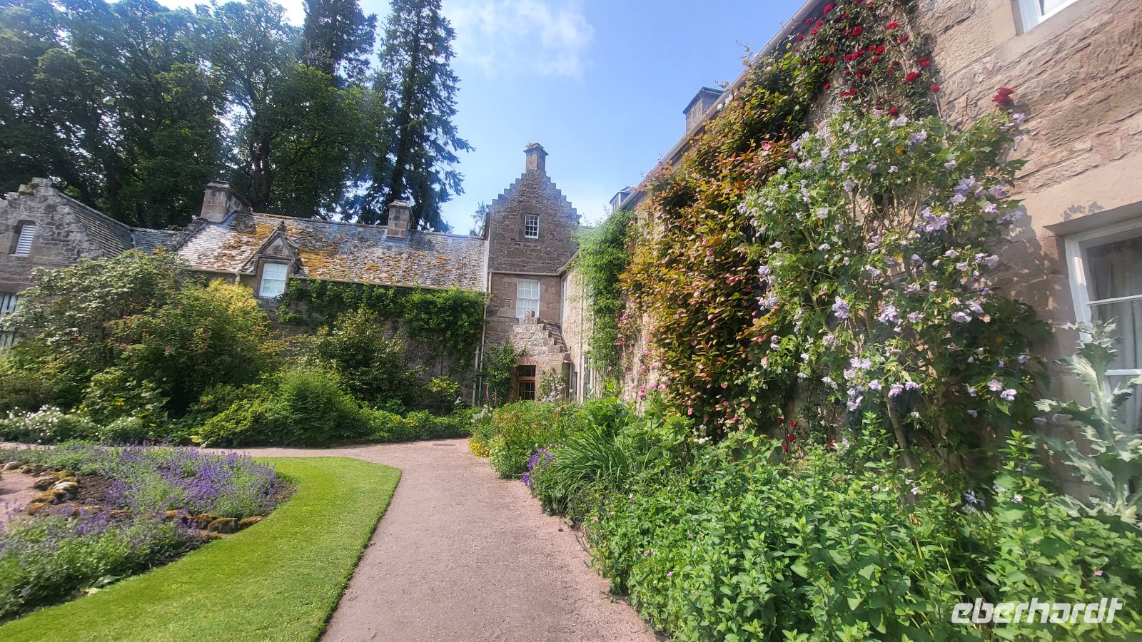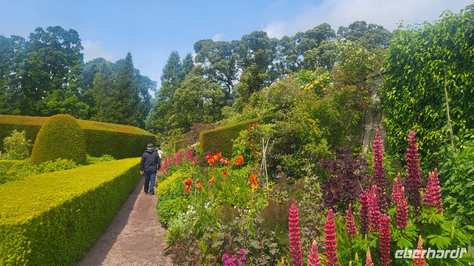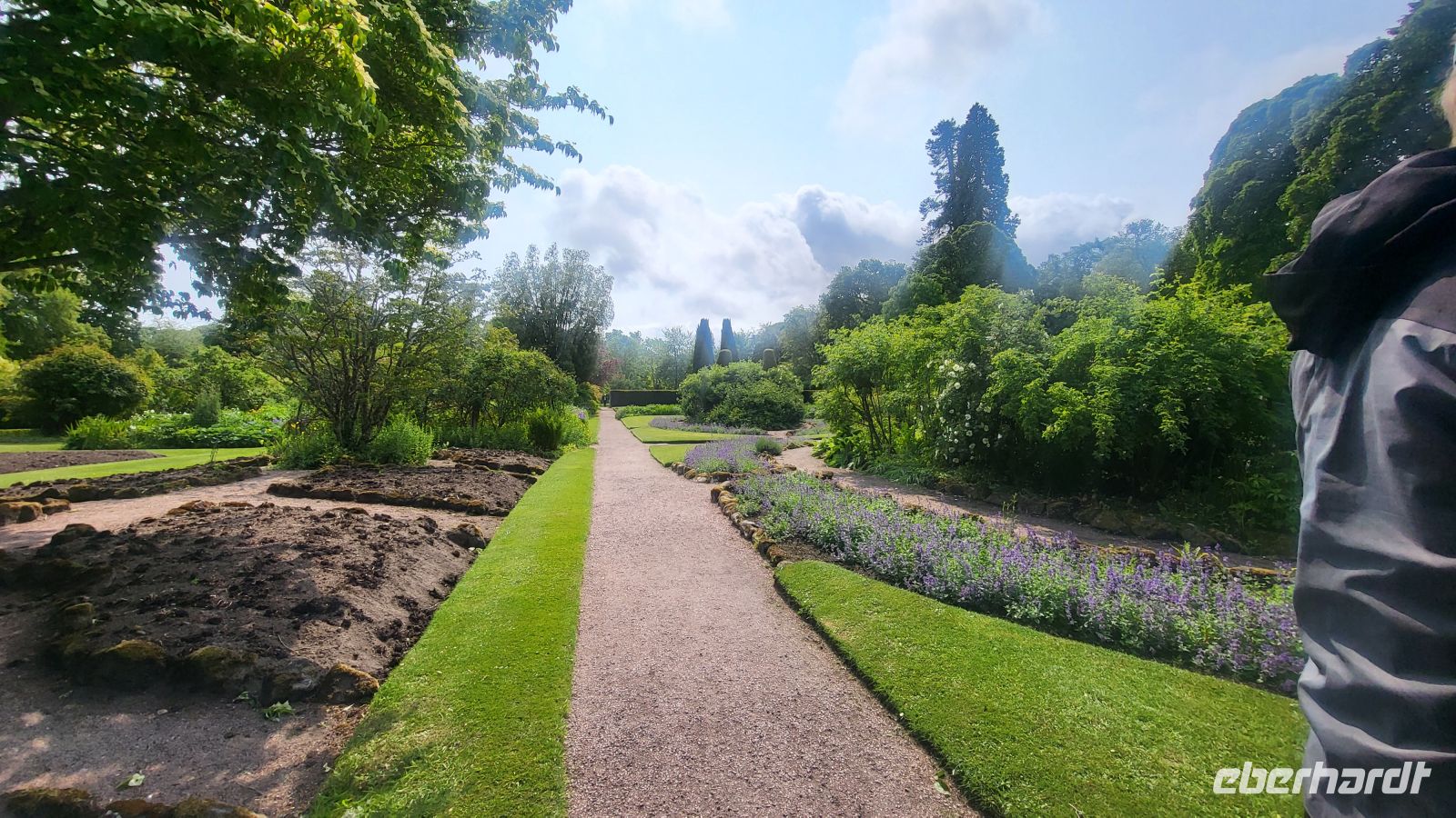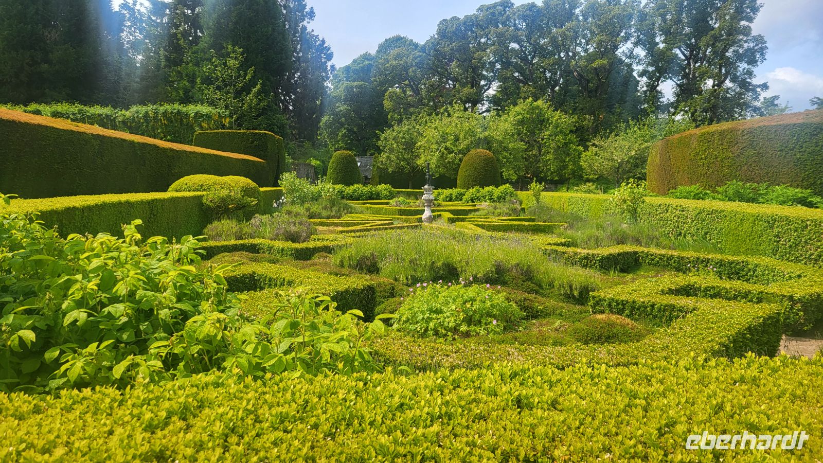 Besonders beeindruckend ist die Gartenanlage: großflächig, farbenfroh und perfekt gepflegt. Sechs Gärtner sind in den Sommermonaten damit beschäftigt, diese Pracht zu erhalten – und das sieht man. Wir schlendern durch duftende Blumenbeete, unter alten Bäumen und vorbei an geometrisch geschnittenen Hecken.