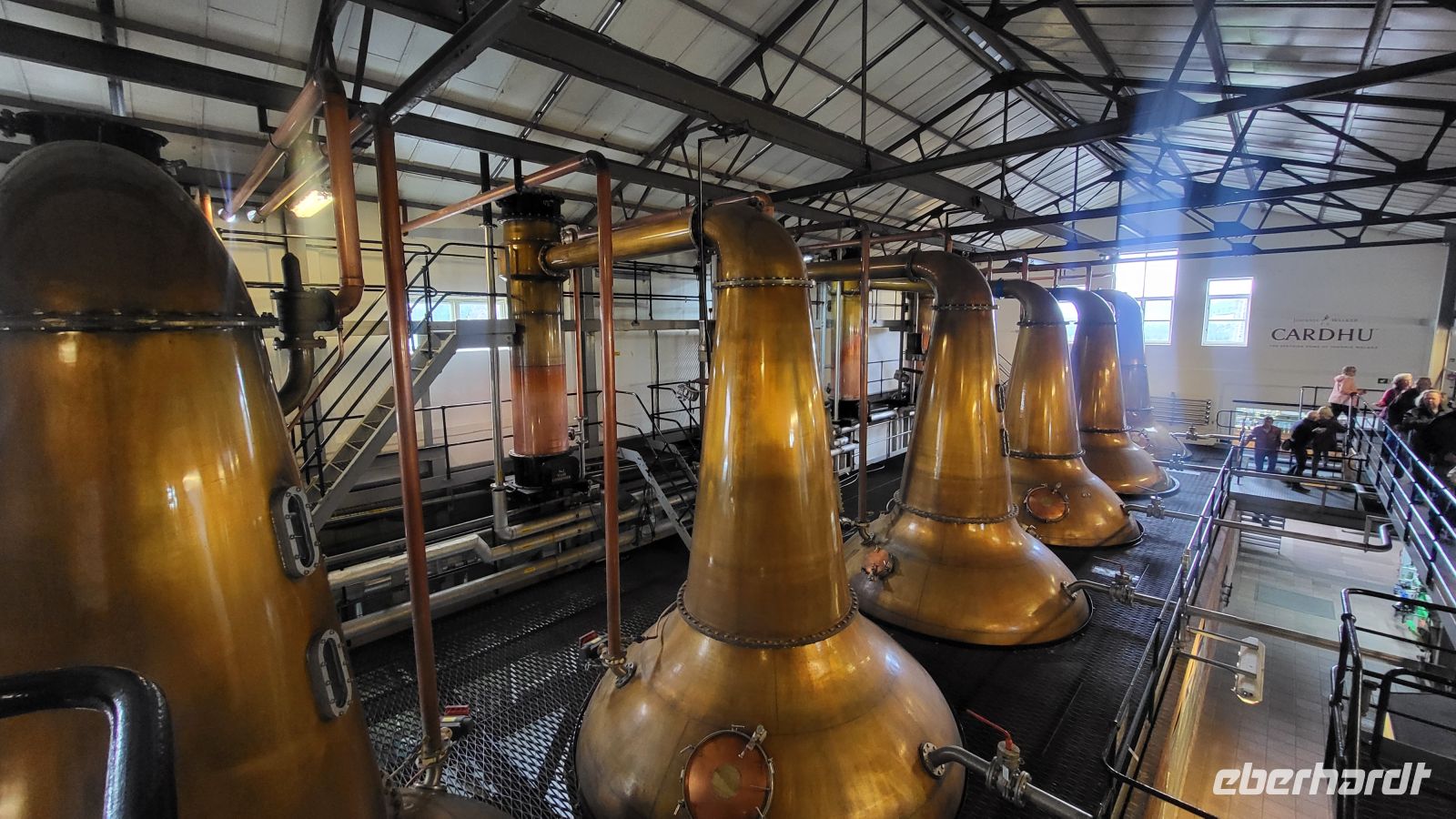 Am Vormittag besuchen wir eine der kleineren, aber bedeutenden Brennereien: Cardhu Distillery. Bereits bei der Ankunft liegt der Duft von Malz und Eiche in der Luft. In einer ausführlichen Führung erfahren wir, wie aus Wasser, Gerste und Hefe das „flüssige Gold Schottlands“ entsteht. Der Herstellungsprozess wird anschaulich erklärt – von der Maische über die Destillation bis zur Reifung in Eichenfässern. Besonders spannend ist die Verkostung am Ende: Wir probieren drei verschiedene Whiskys – 12, 15 und 11 Jahre alt. Obwohl sie aus der gleichen Brennerei stammen, schmecken sie erstaunlich unterschiedlich. Der Einfluss von Fass, Lagerdauer und Temperatur wird plötzlich ganz deutlich – und der eine oder andere entdeckt dabei sogar einen neuen Favoriten.